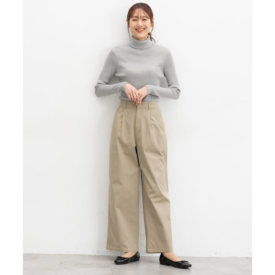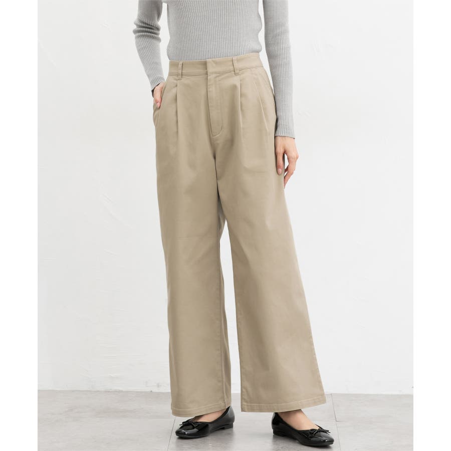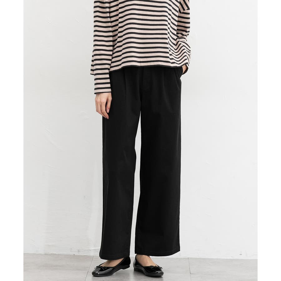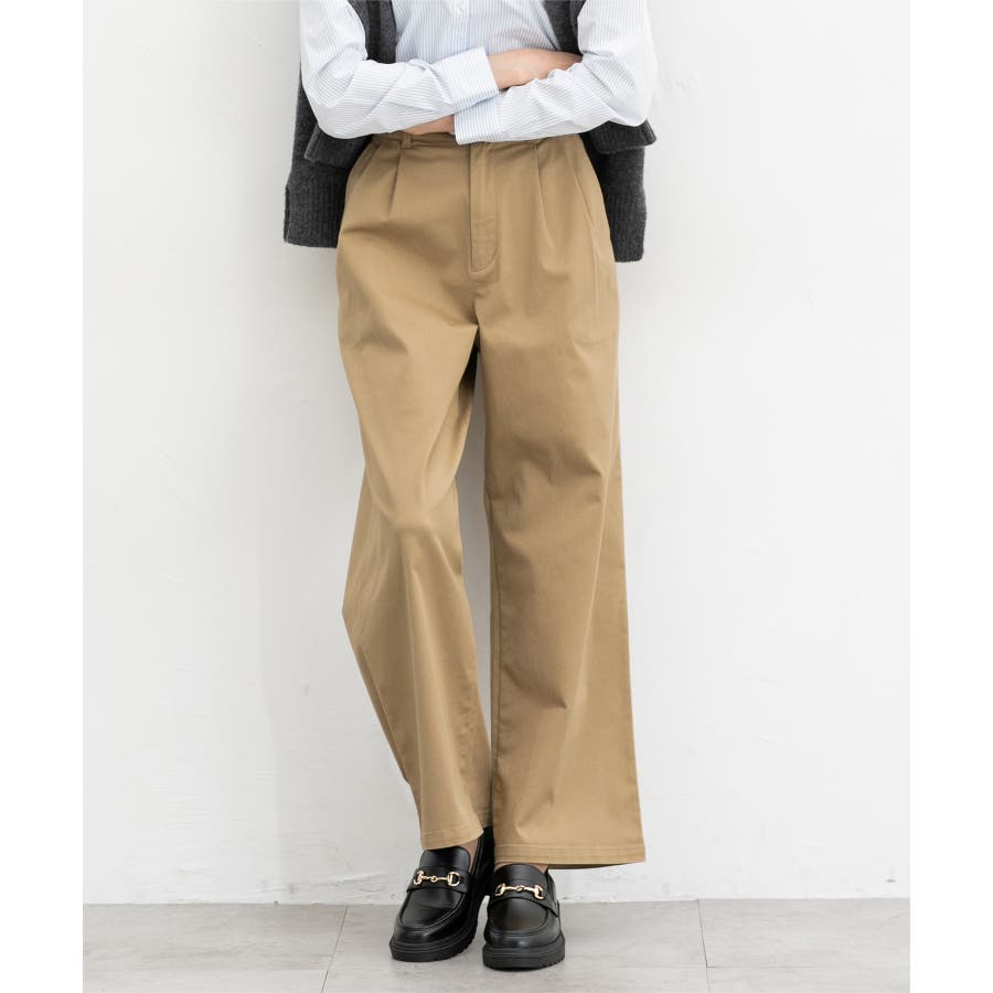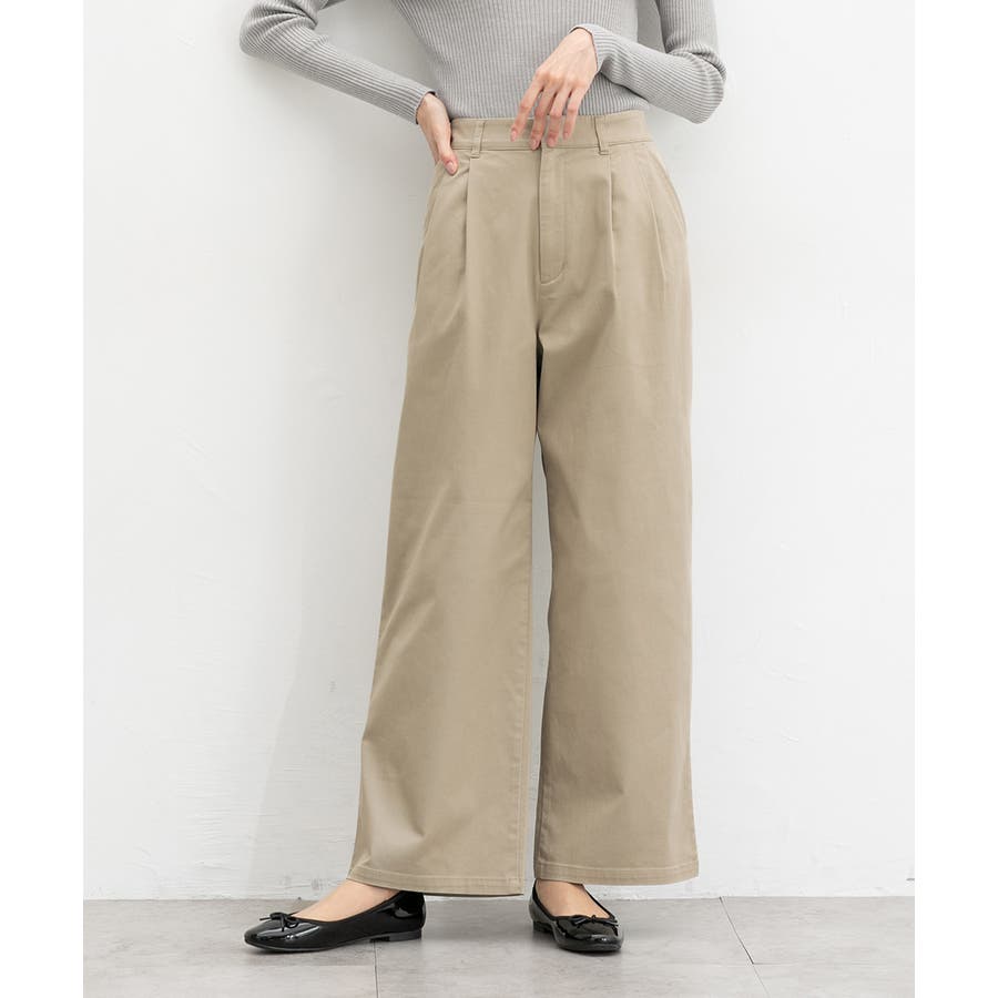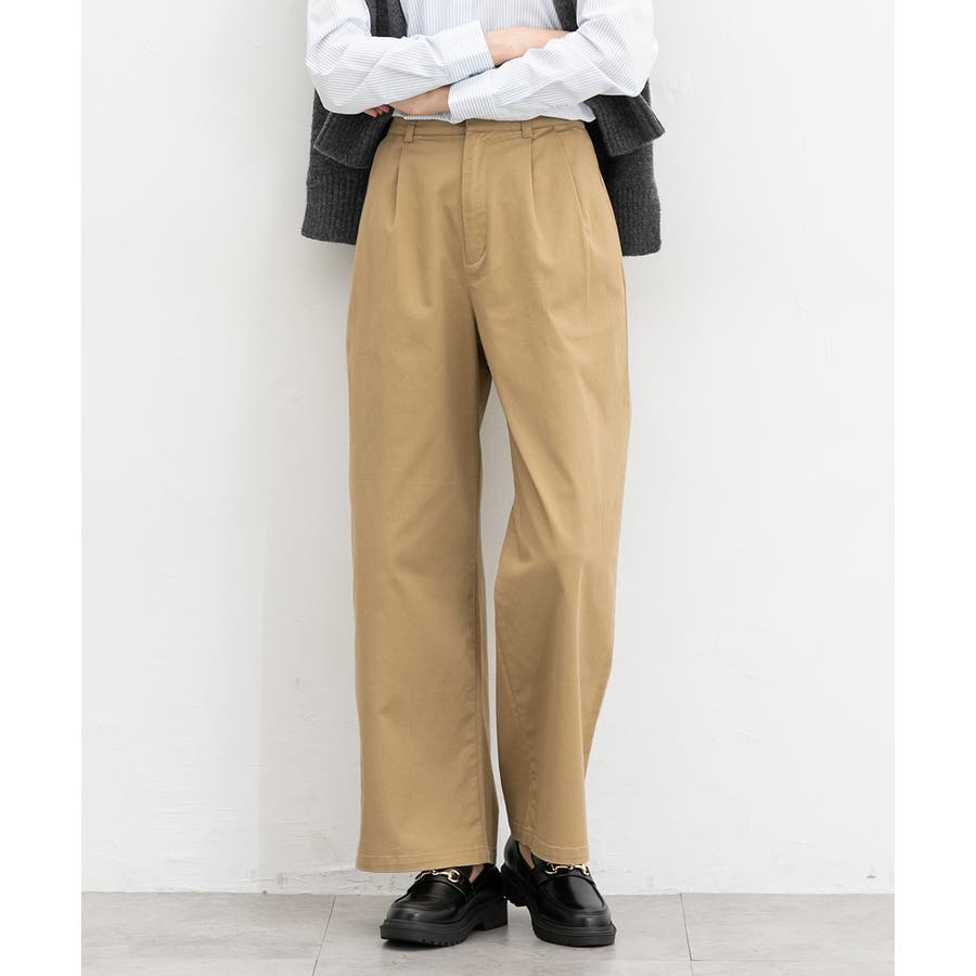 広がりすぎないワイドシルエットのチノストレート、股下68cmタイプ。