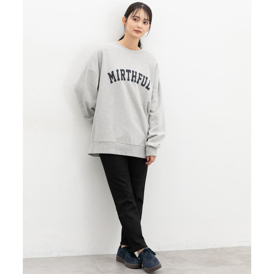 ゆるっとしたニットやスウェットと合わせてメリハリをつけるコーデがおすすめ。