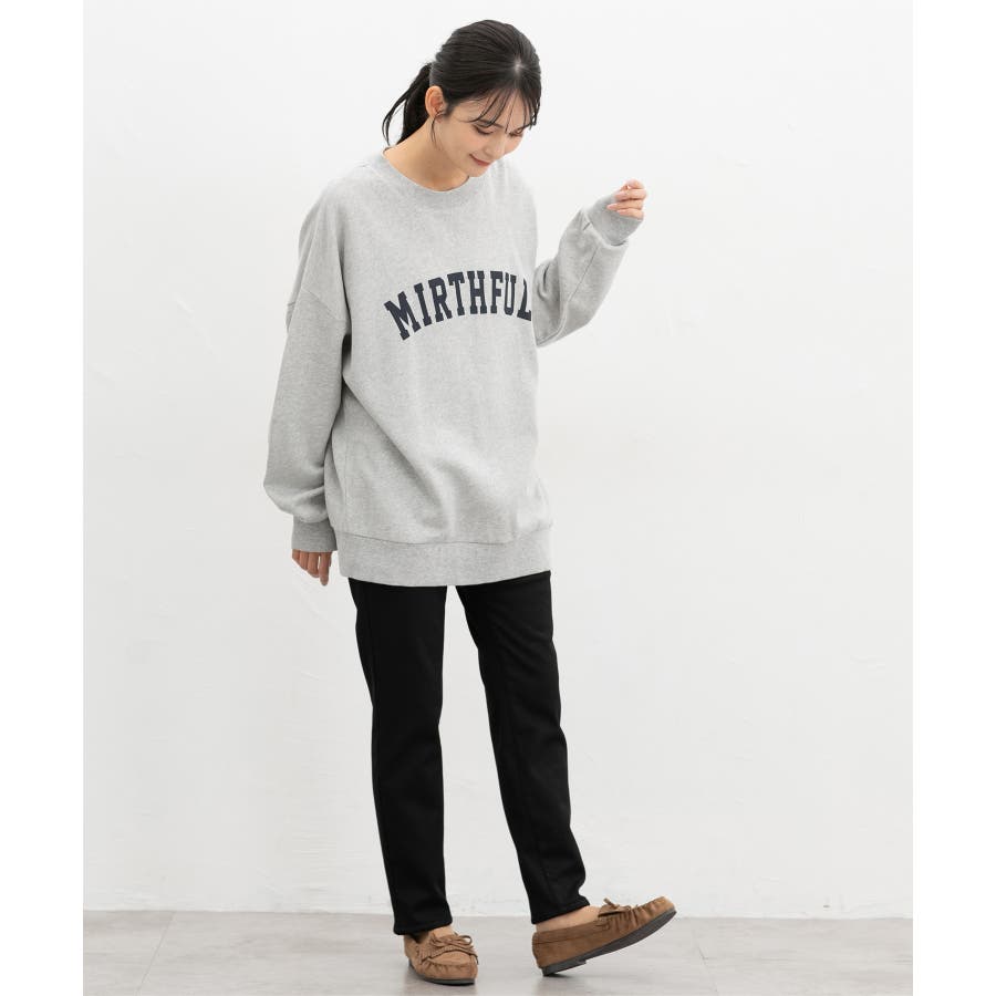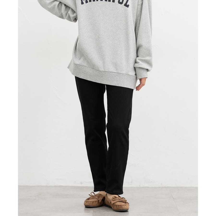 ゆるっとしたニットやスウェットと合わせてメリハリをつけるコーデがおすすめ。