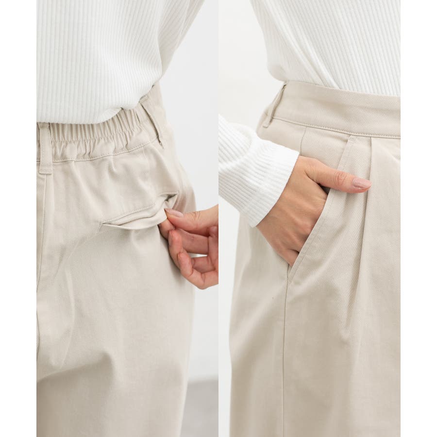 ストレッチ生地と後ろウエストゴムで、はき心地抜群。