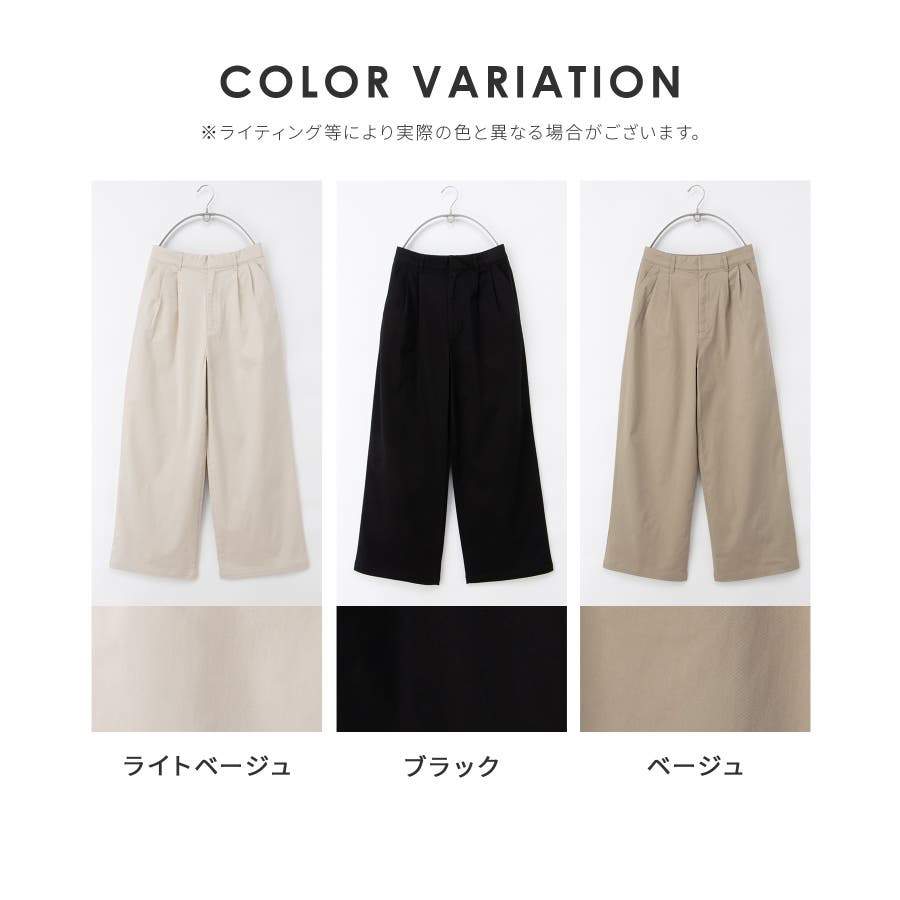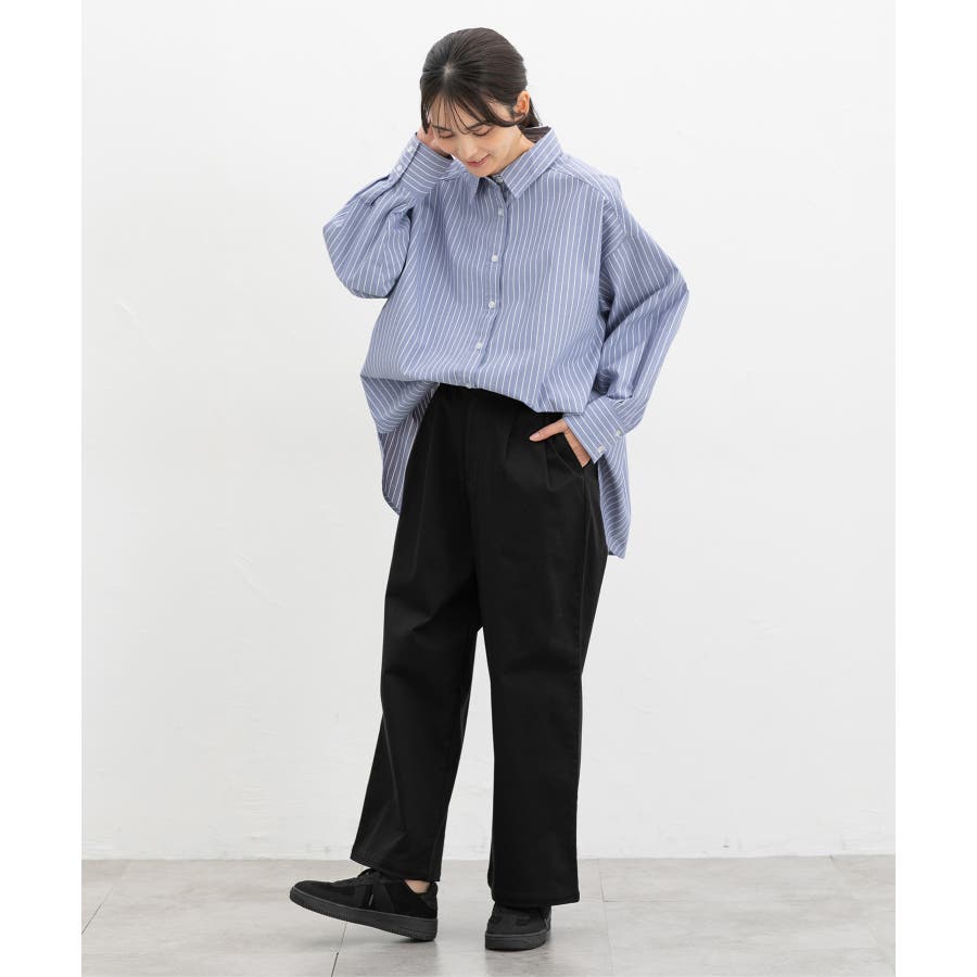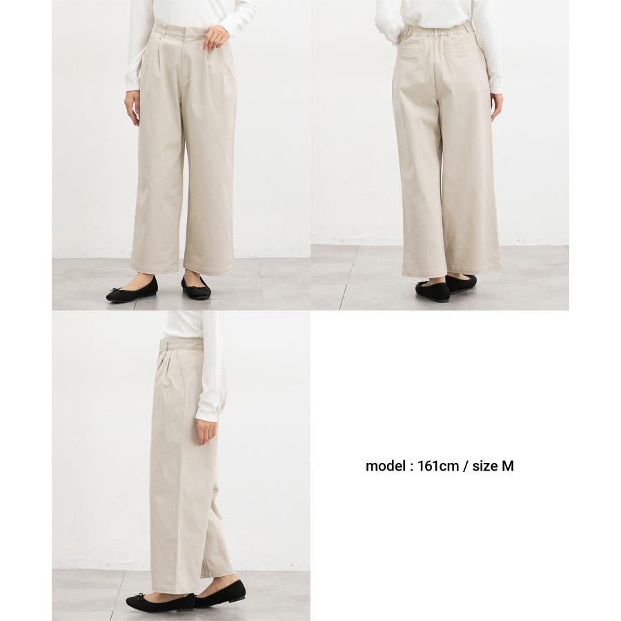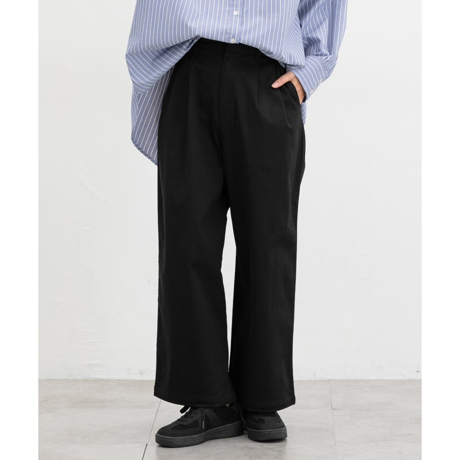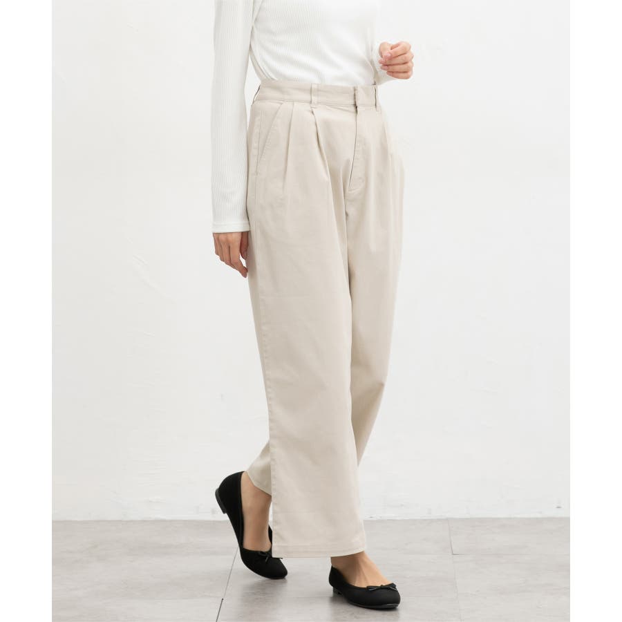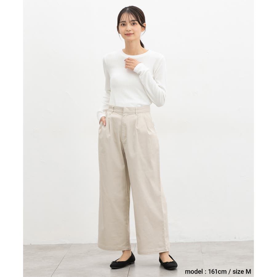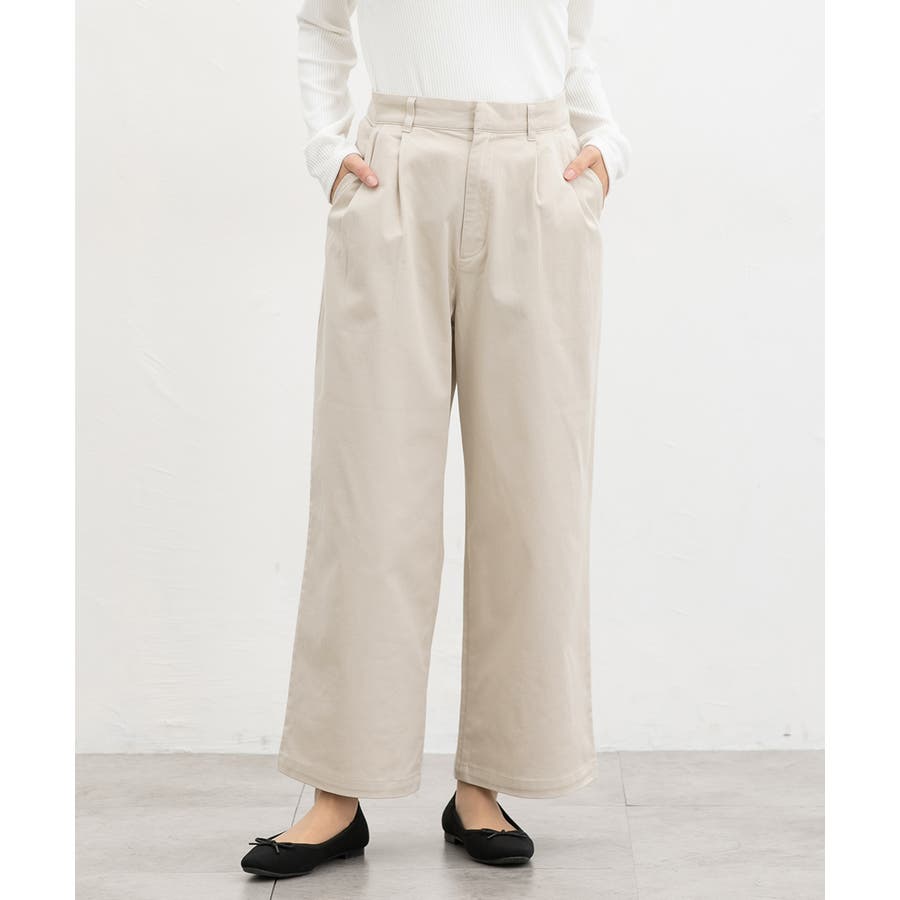 広がりすぎないワイドシルエットのチノストレート、股下63cmタイプ。