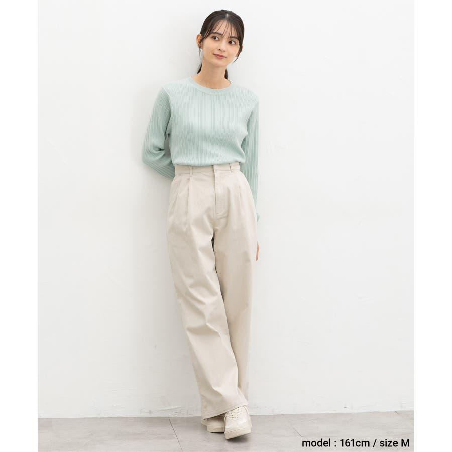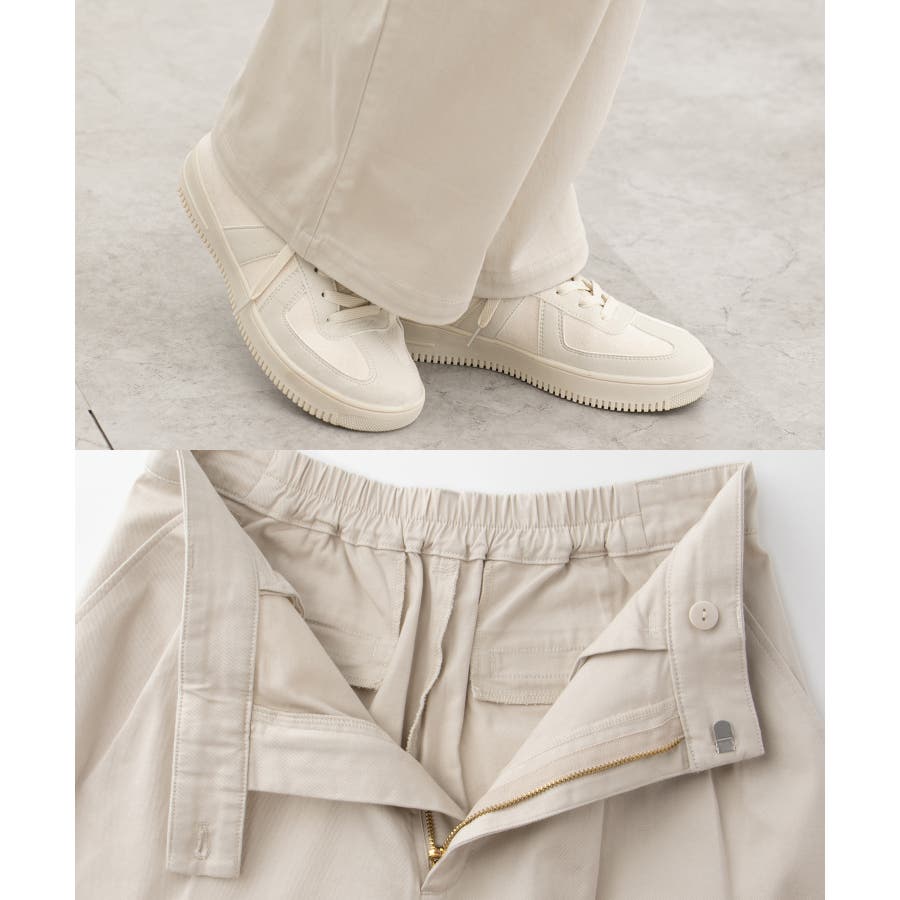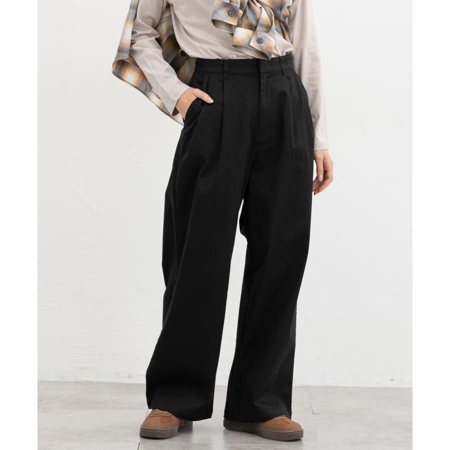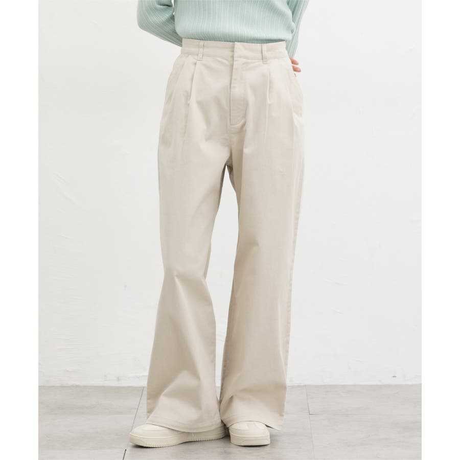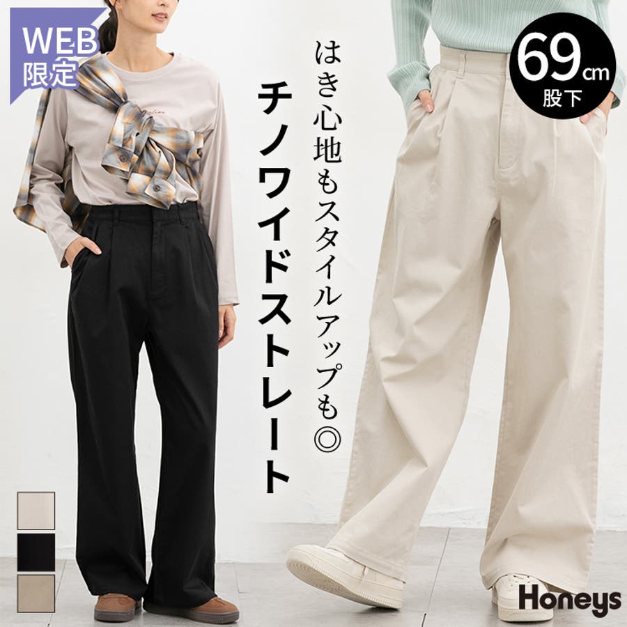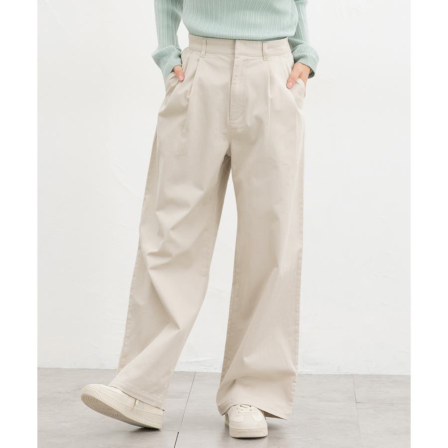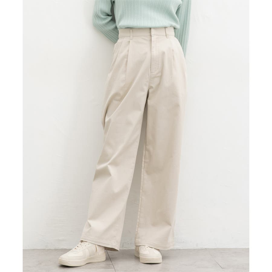 広がりすぎないワイドシルエットのチノストレート、股下69cmタイプ。