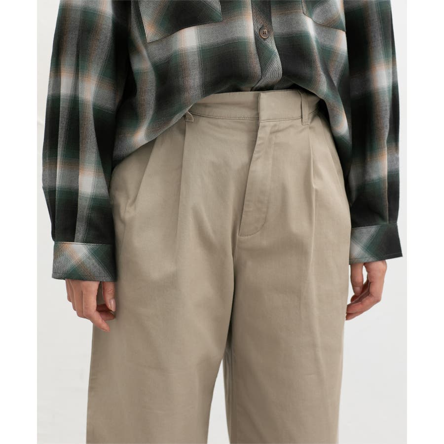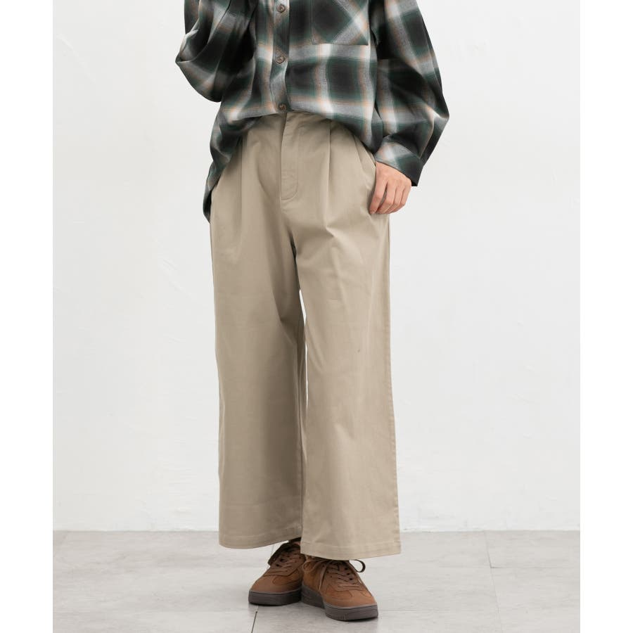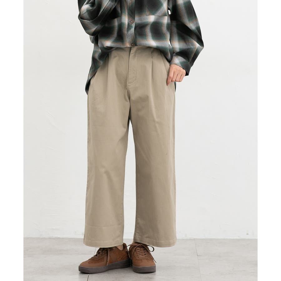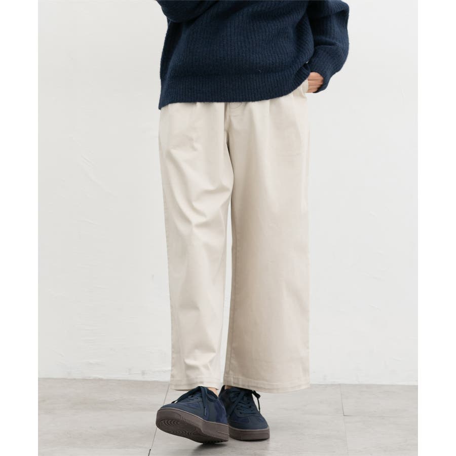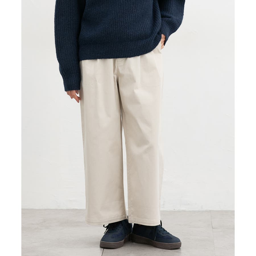 広がりすぎないワイドシルエットのチノストレート、股下60cmタイプ。