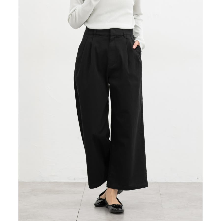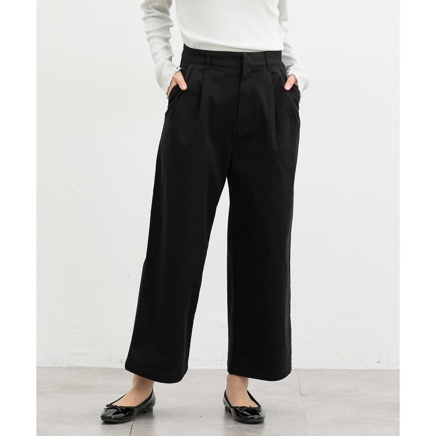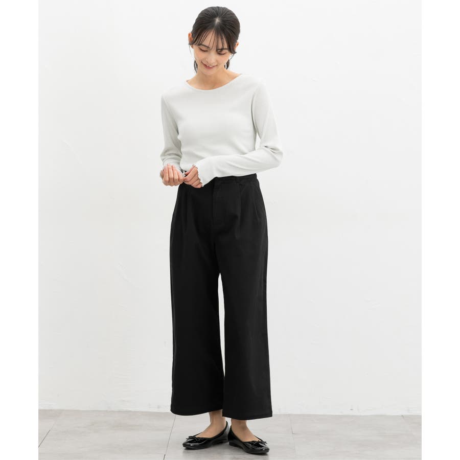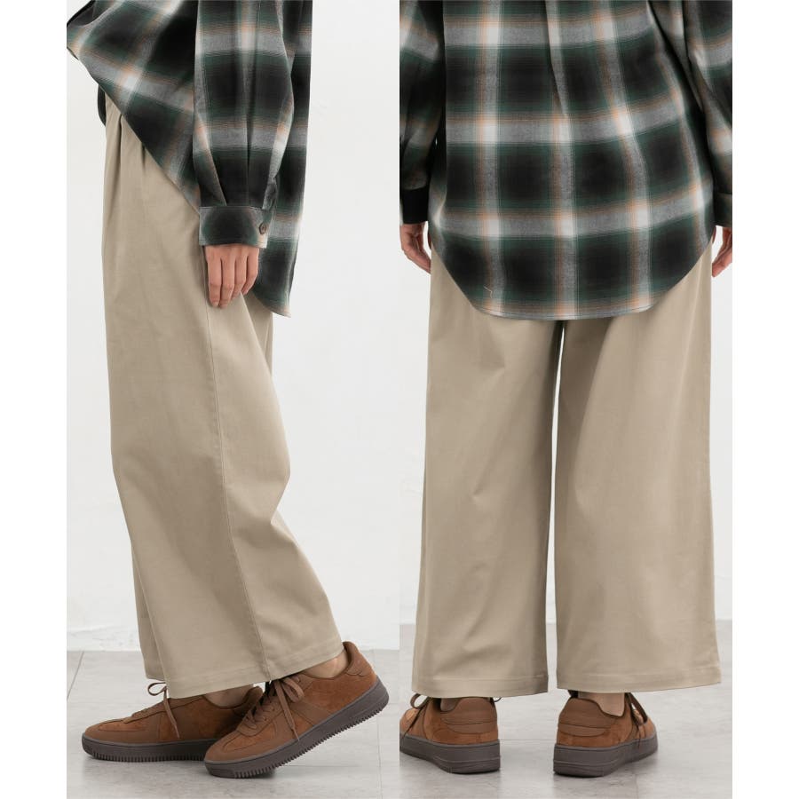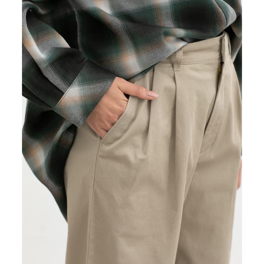広がりすぎないワイドシルエットのチノストレート、股下60cmタイプ。