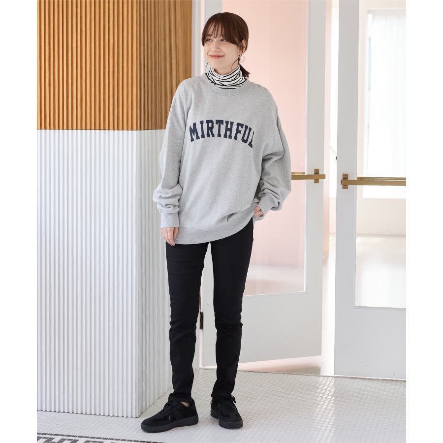 ゆるっとしたニットやスウェットと合わせてメリハリをつけるコーデがおすすめ。