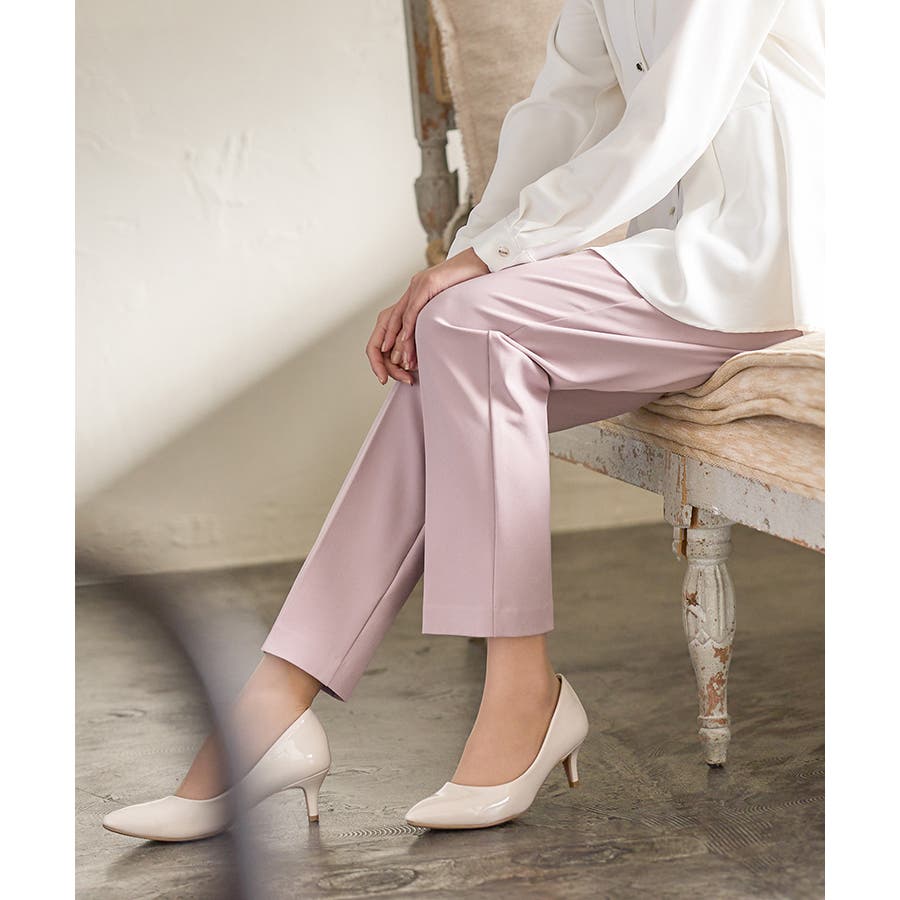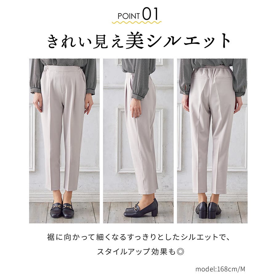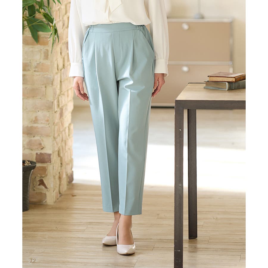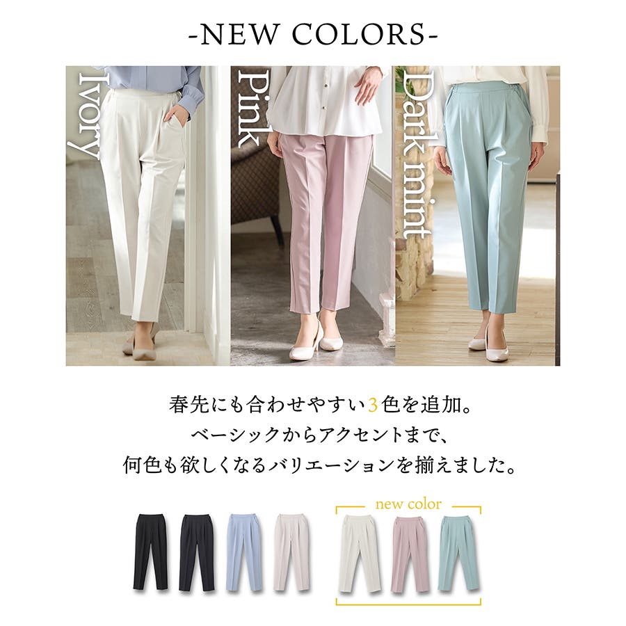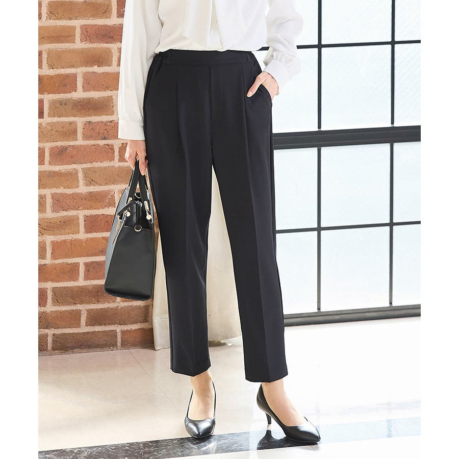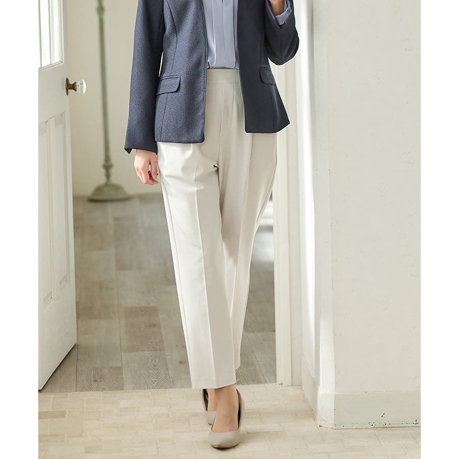 きちんと感のあるセンタープレスと腰回りのラインにこだわった裾に向かって細くなる美しいシルエットで美脚効果も抜群。