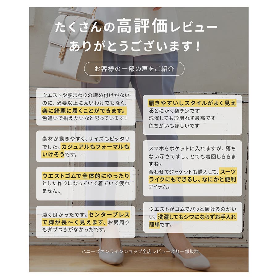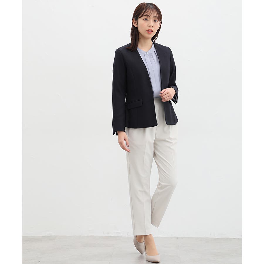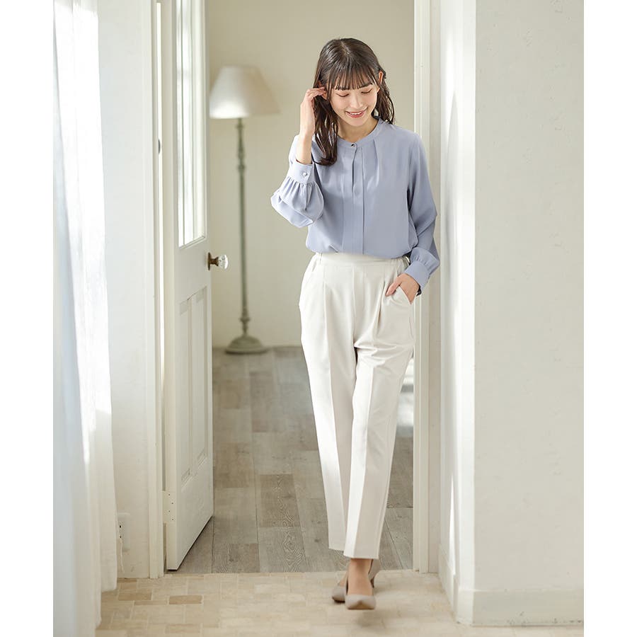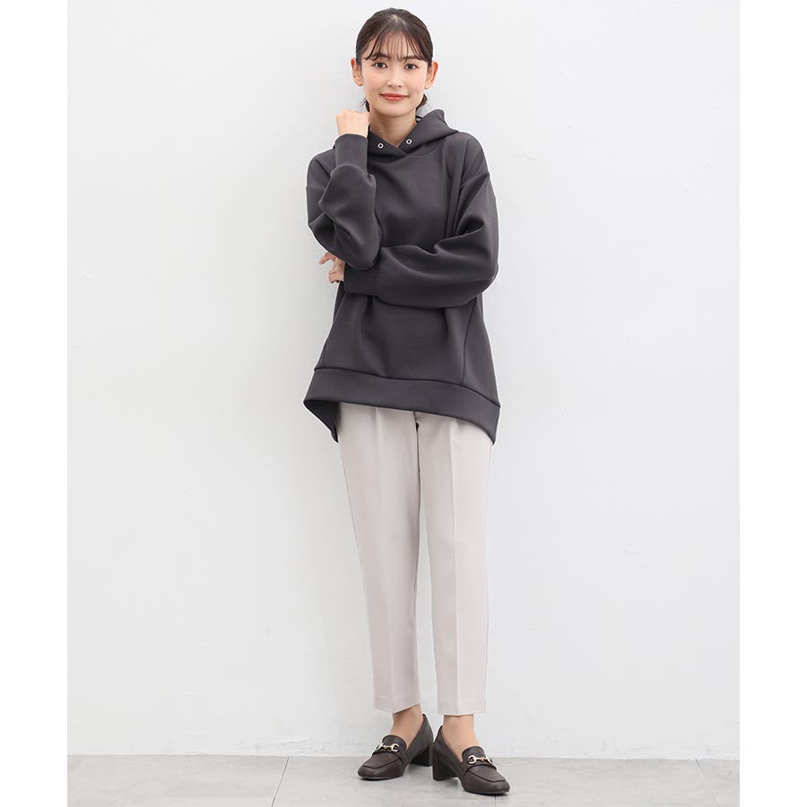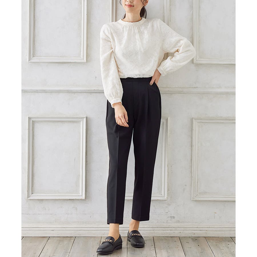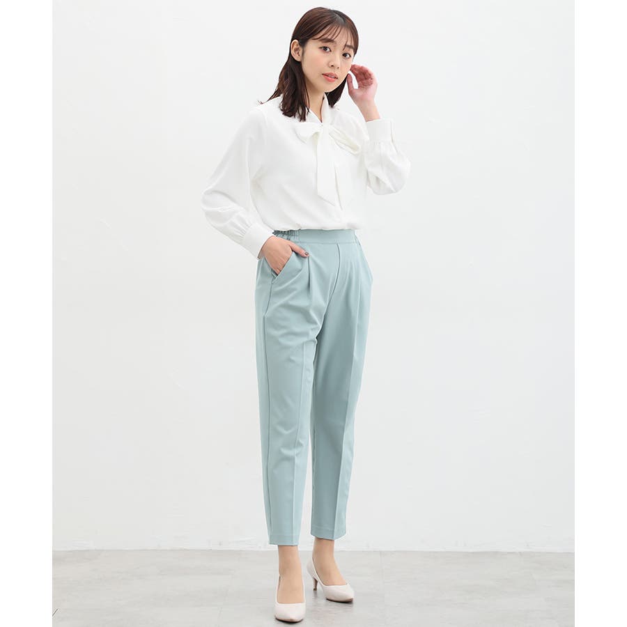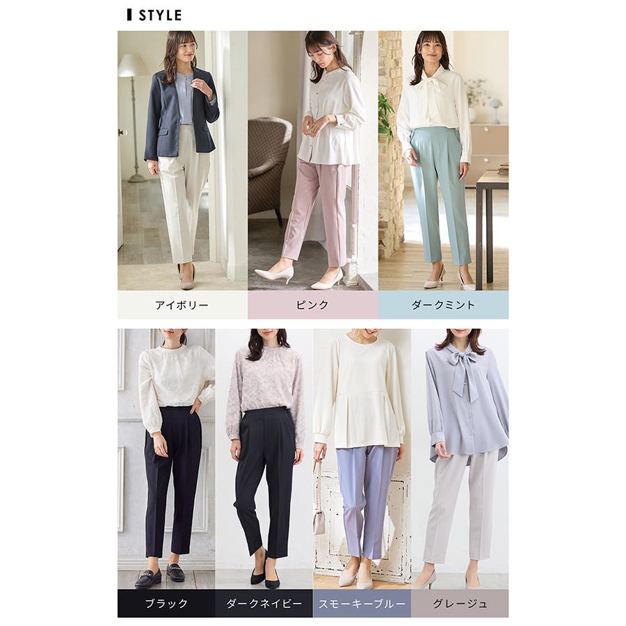きちんと感のあるセンタープレスと腰回りのラインにこだわった裾に向かって細くなる美しいシルエットで美脚効果も抜群。