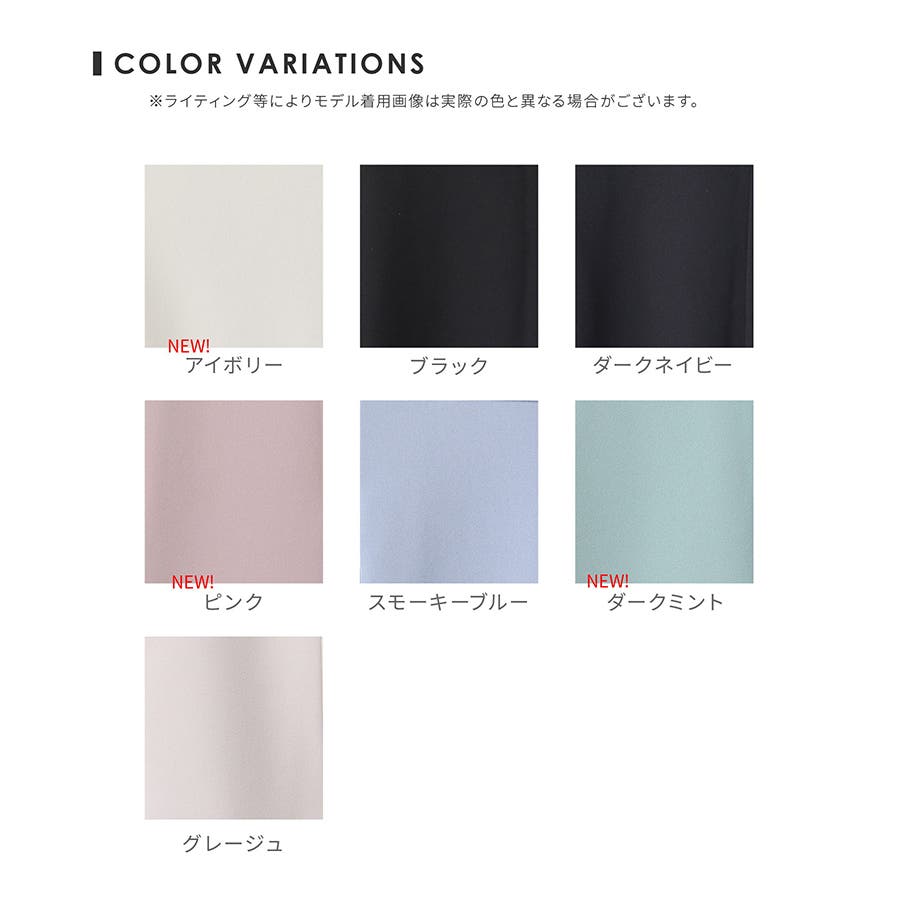 | カラー | ブラック / ダークネイビー / スモーキーブルー / グレージュ / アイボリー / ピンク / ダークミント |