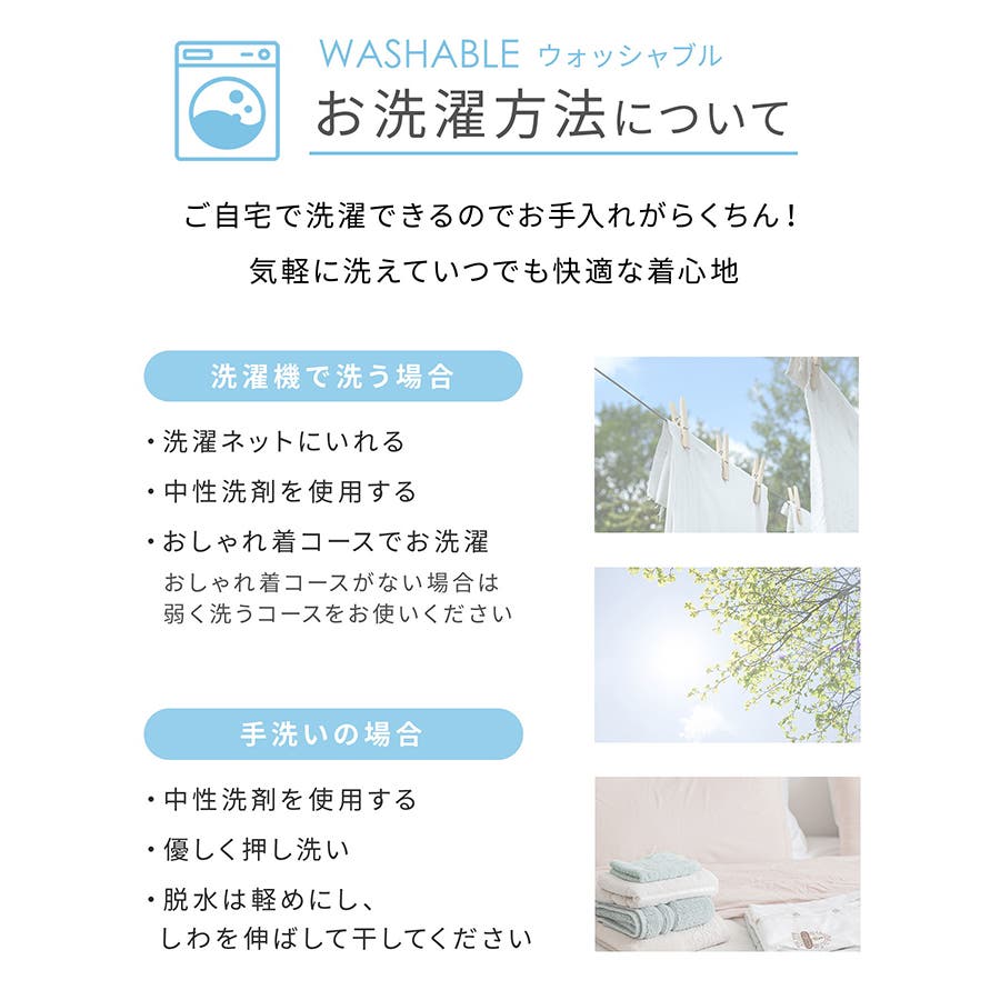 ご家庭用の洗濯機で洗える『ウォッシャブル』、洗濯後もシワになりにくい『イージーケア』機能付きで、お手入れもラクラク。