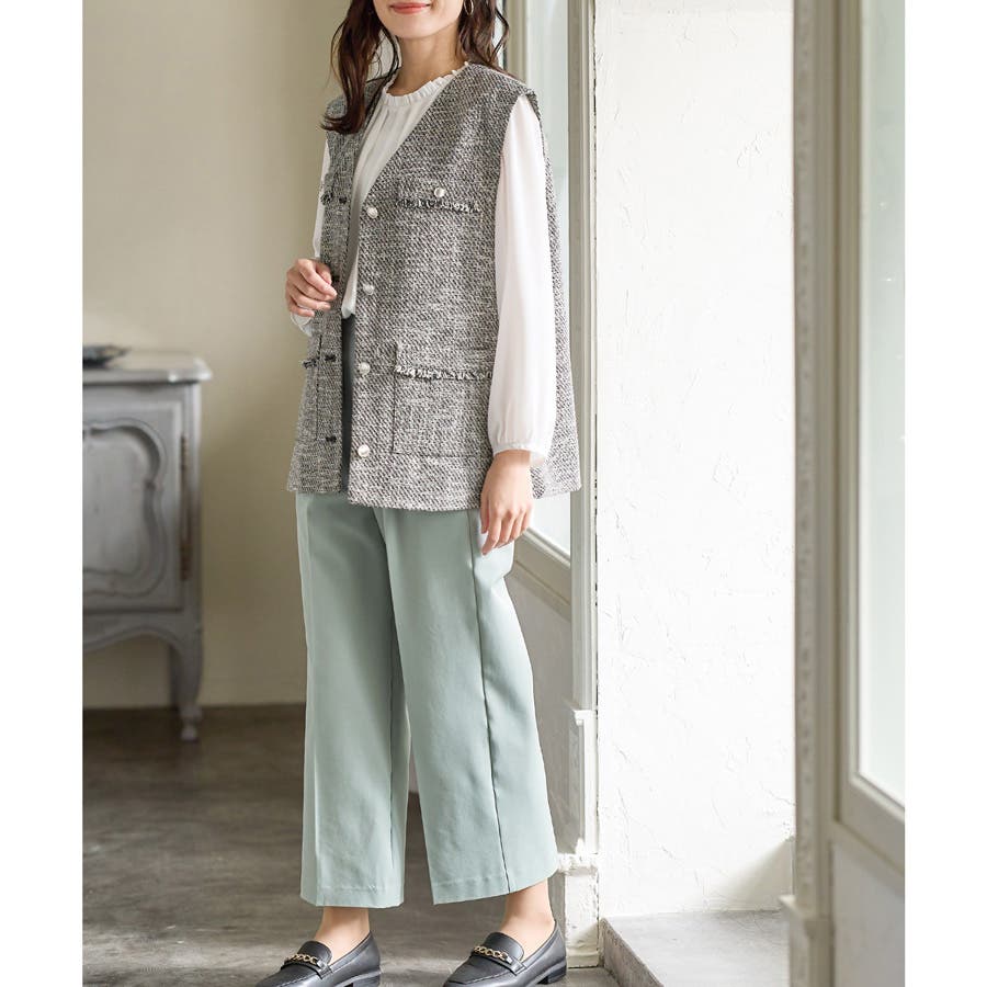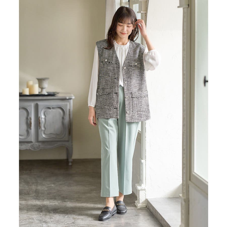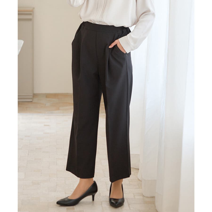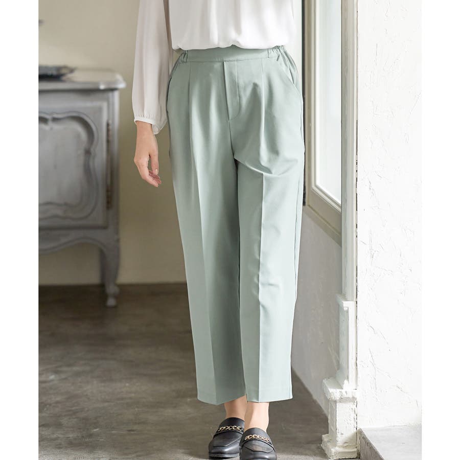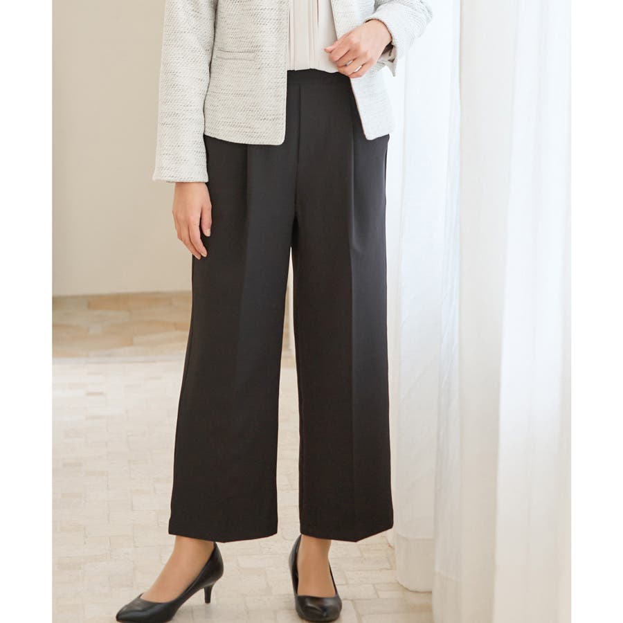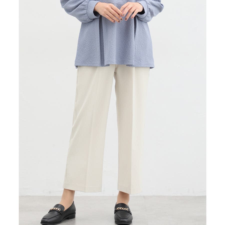 きちんと感のあるセンタープレスと腰回りのラインにこだわった美しいストレートシルエットで美脚効果も抜群。