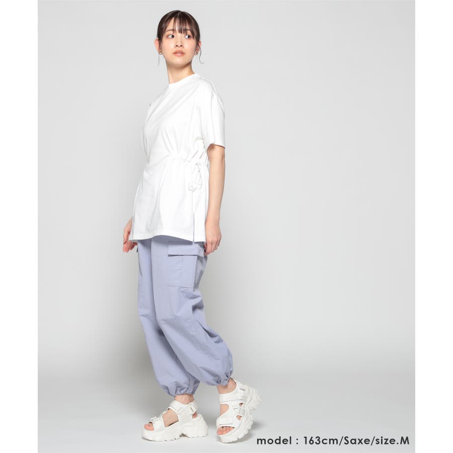 裾のドロストを緩めてストレートパンツとしても着用可能。