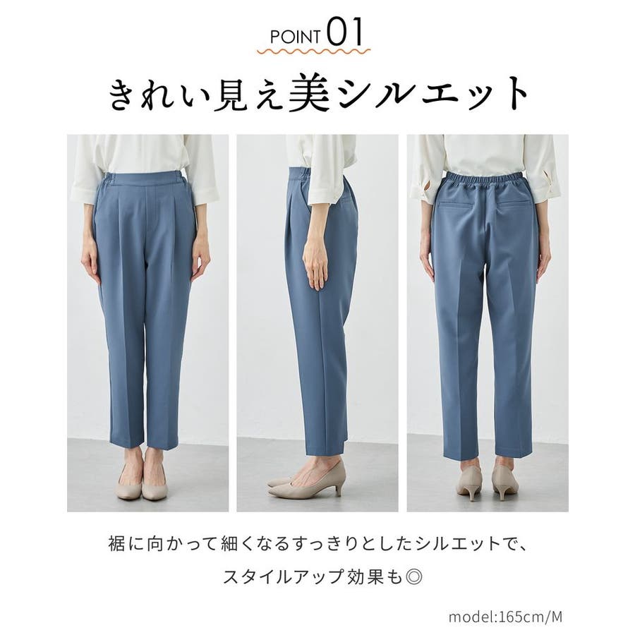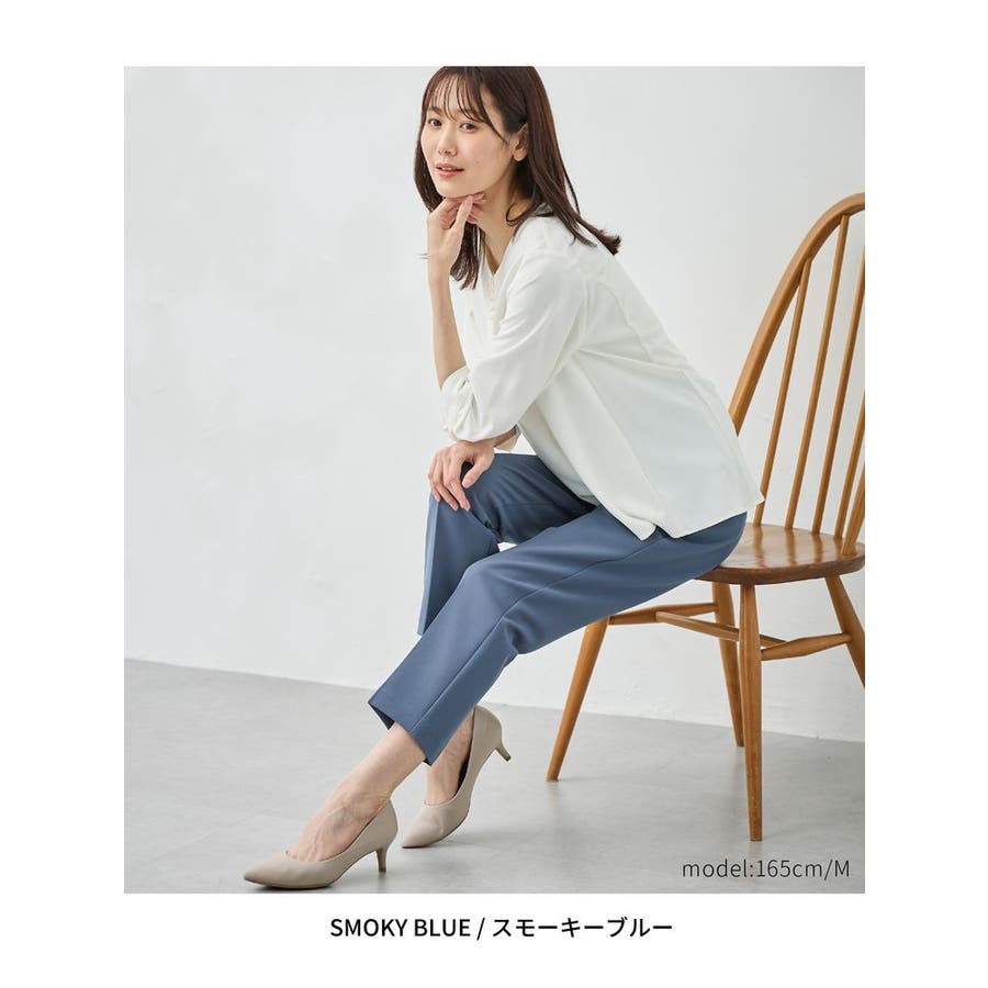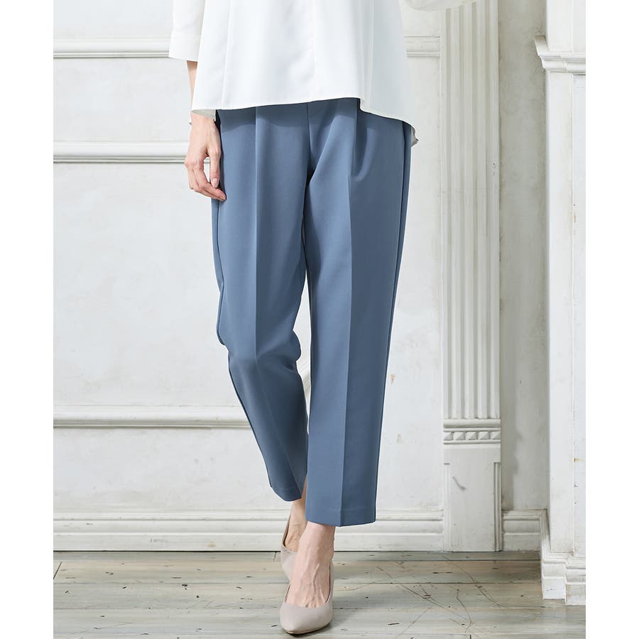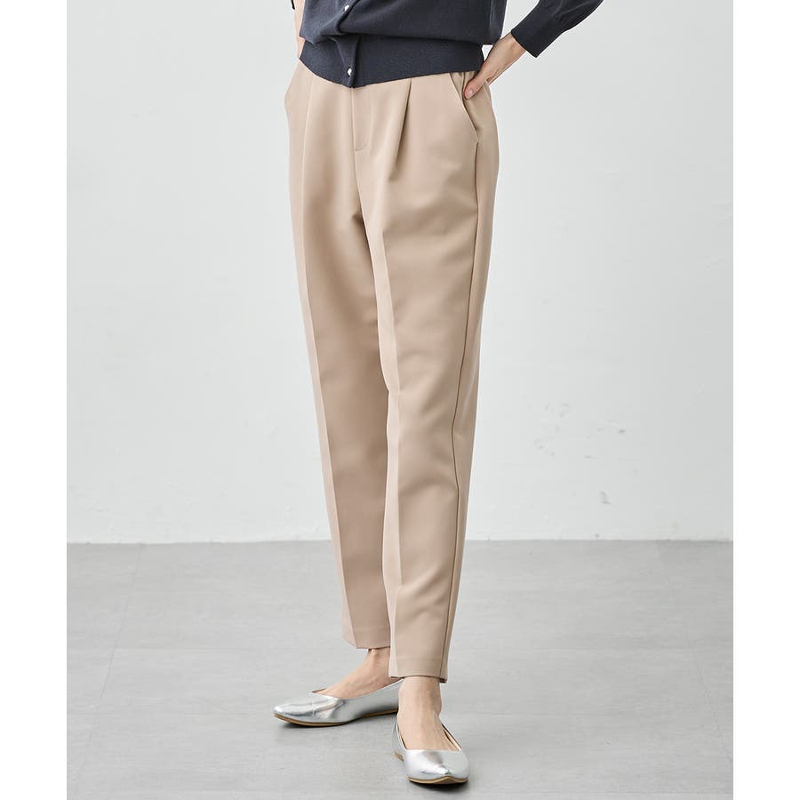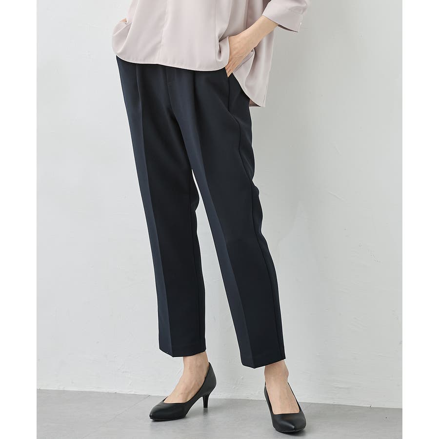 きちんと感のあるセンタープレスと、腰回りのラインにこだわった、裾に向かって細くなる美しいシルエットで美脚効果も抜群。