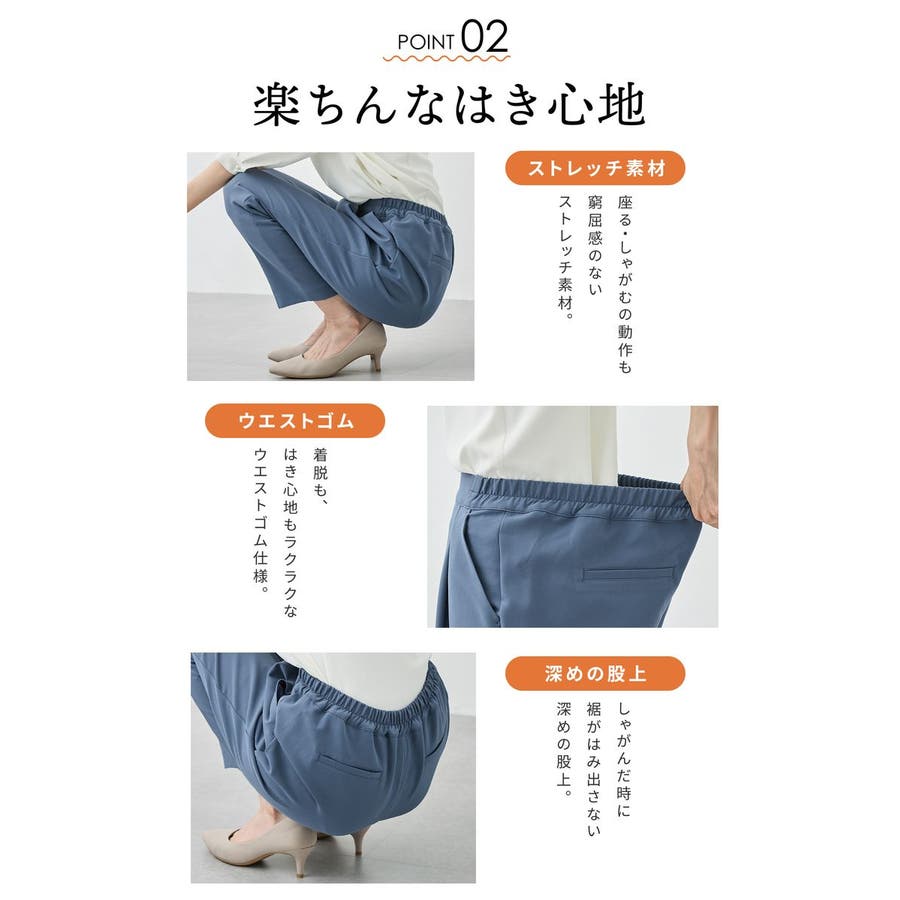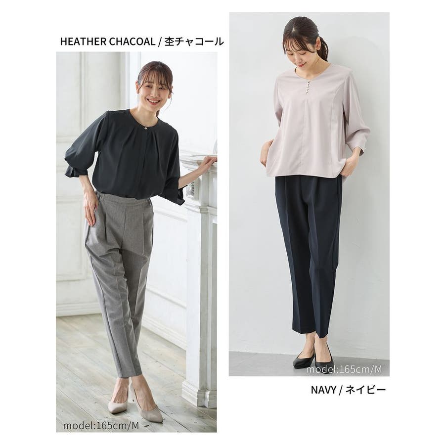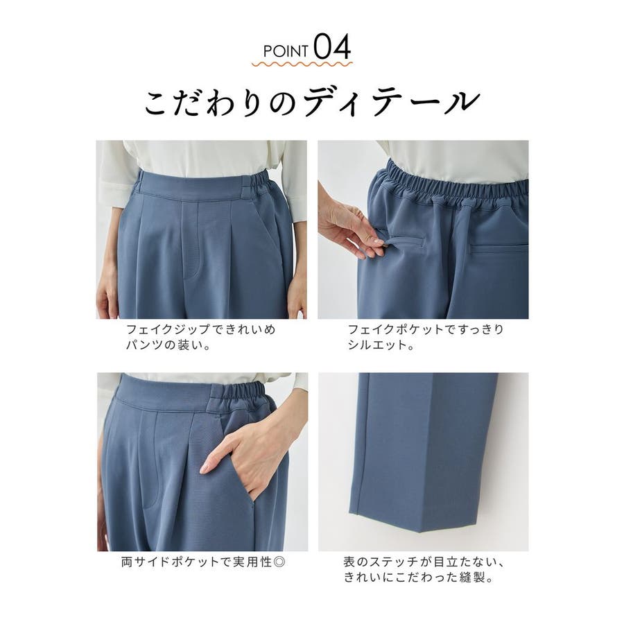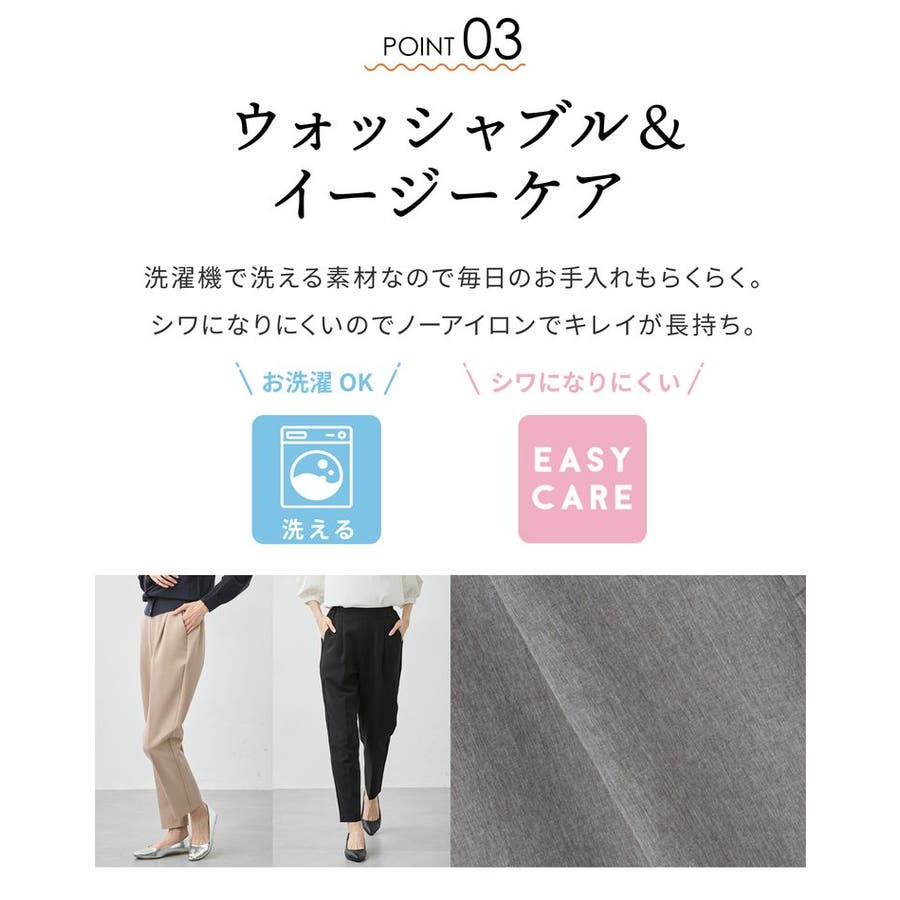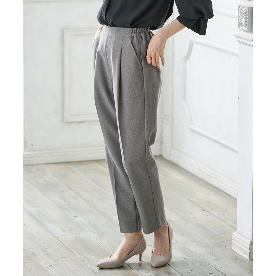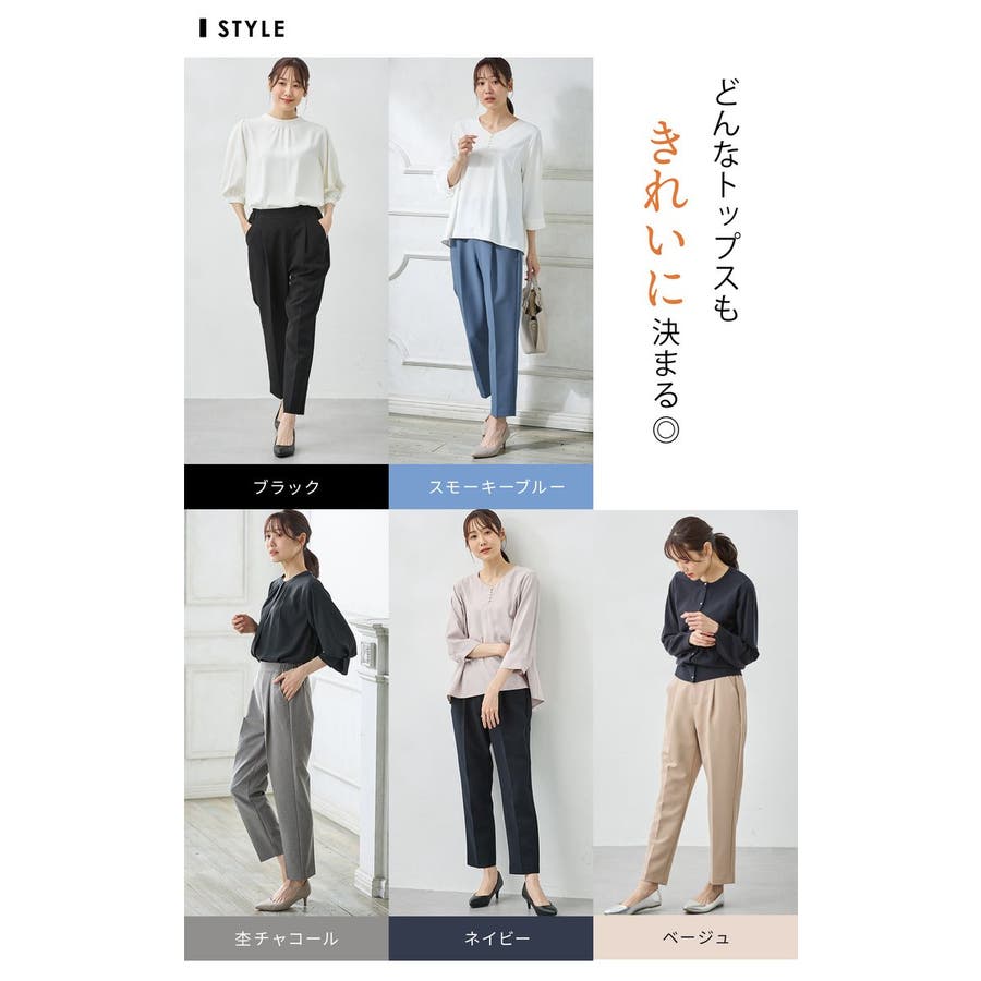 きちんと感のあるセンタープレスと、腰回りのラインにこだわった、裾に向かって細くなる美しいシルエットで美脚効果も抜群。