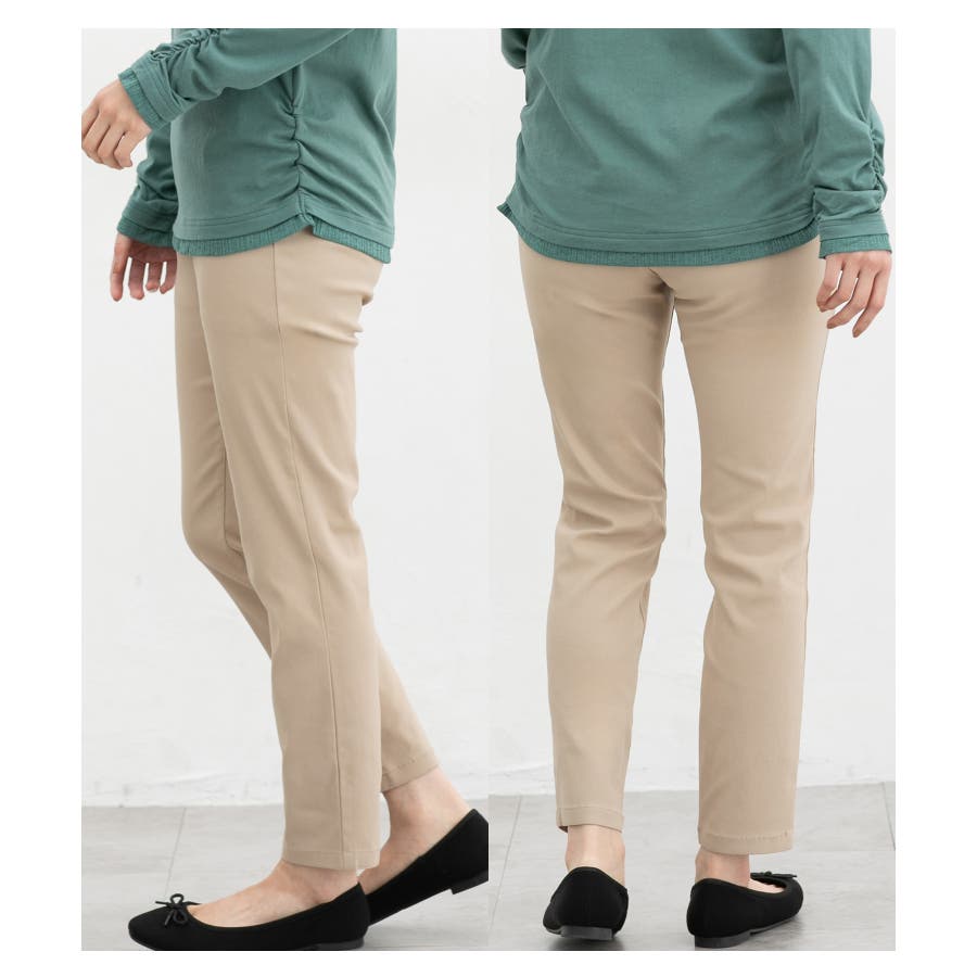 優れたストレッチ性のレーヨン混ツイル素材とウエストゴムで、一度はいたらやみつきになるはき心地。