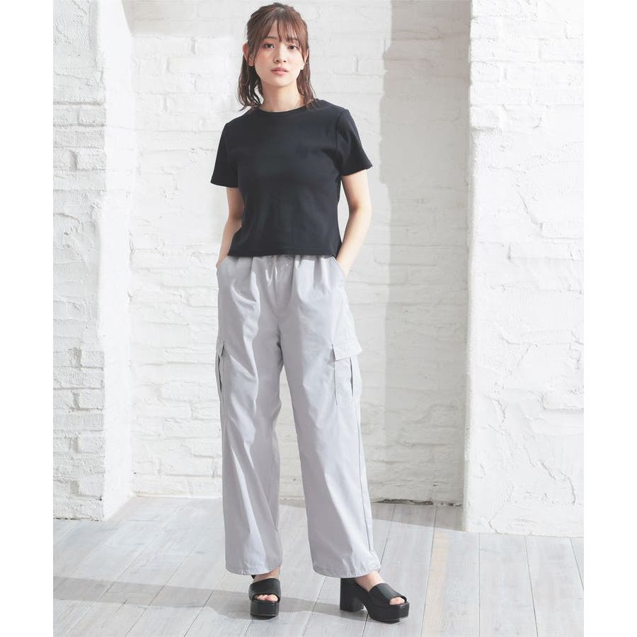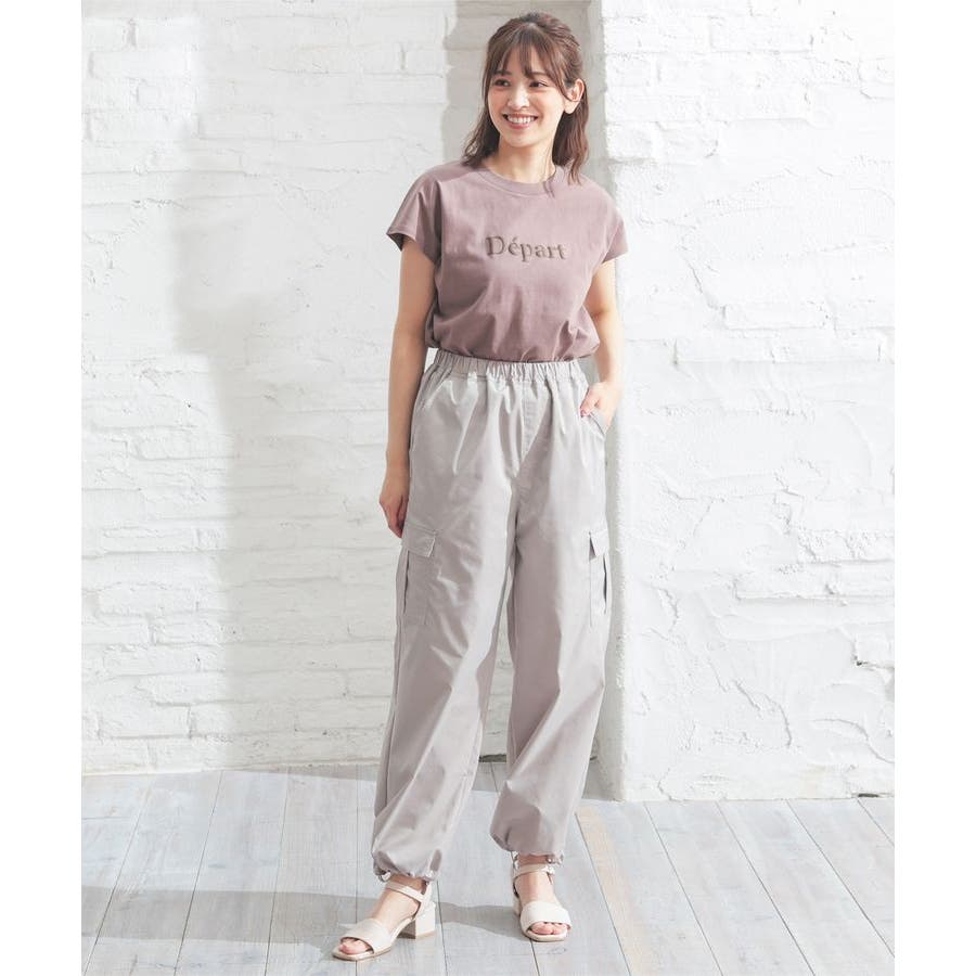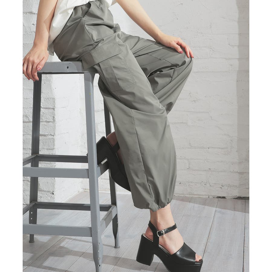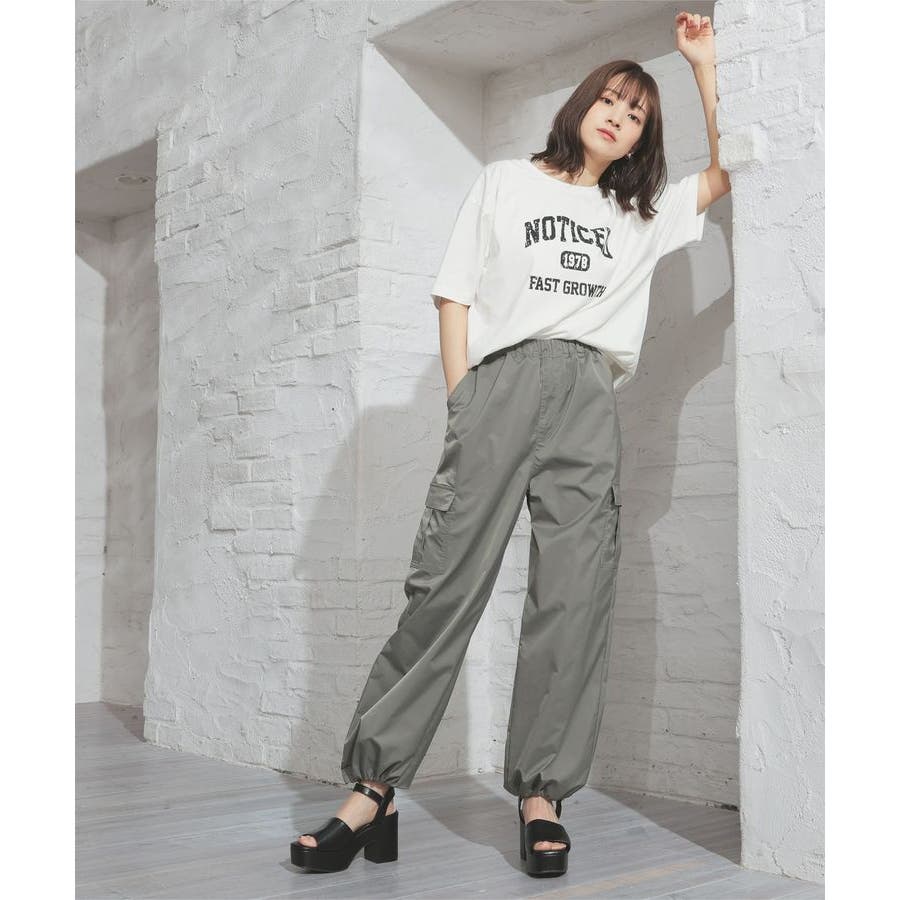 ハイウエスト&裾絞りのメリハリシルエットながら、ゆったり幅とウエストゴムでリラクシーなはき心地。