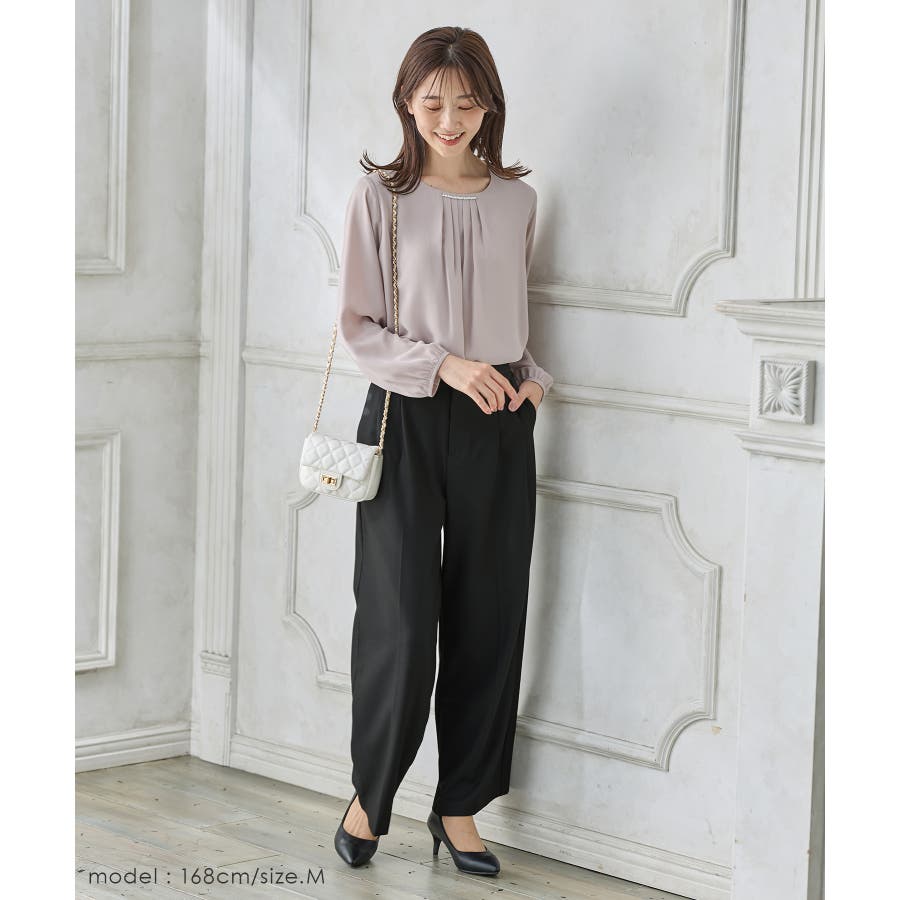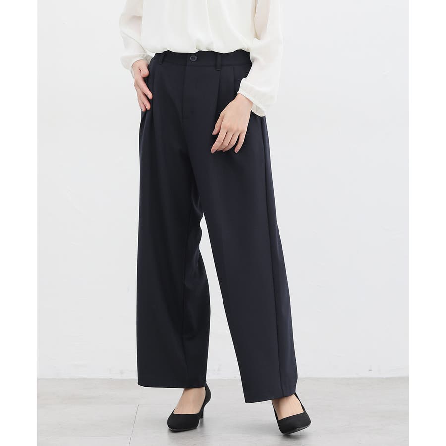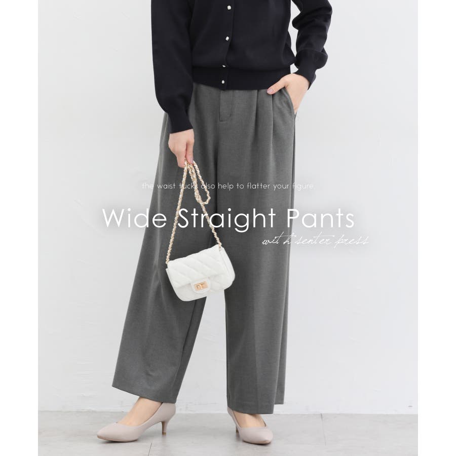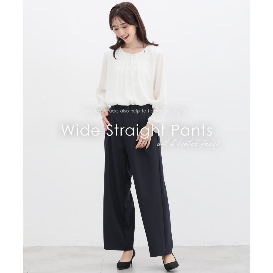 きちんと感のあるセンタープレス入りで、美脚効果も抜群のストレートパンツ、股下68cmタイプ。