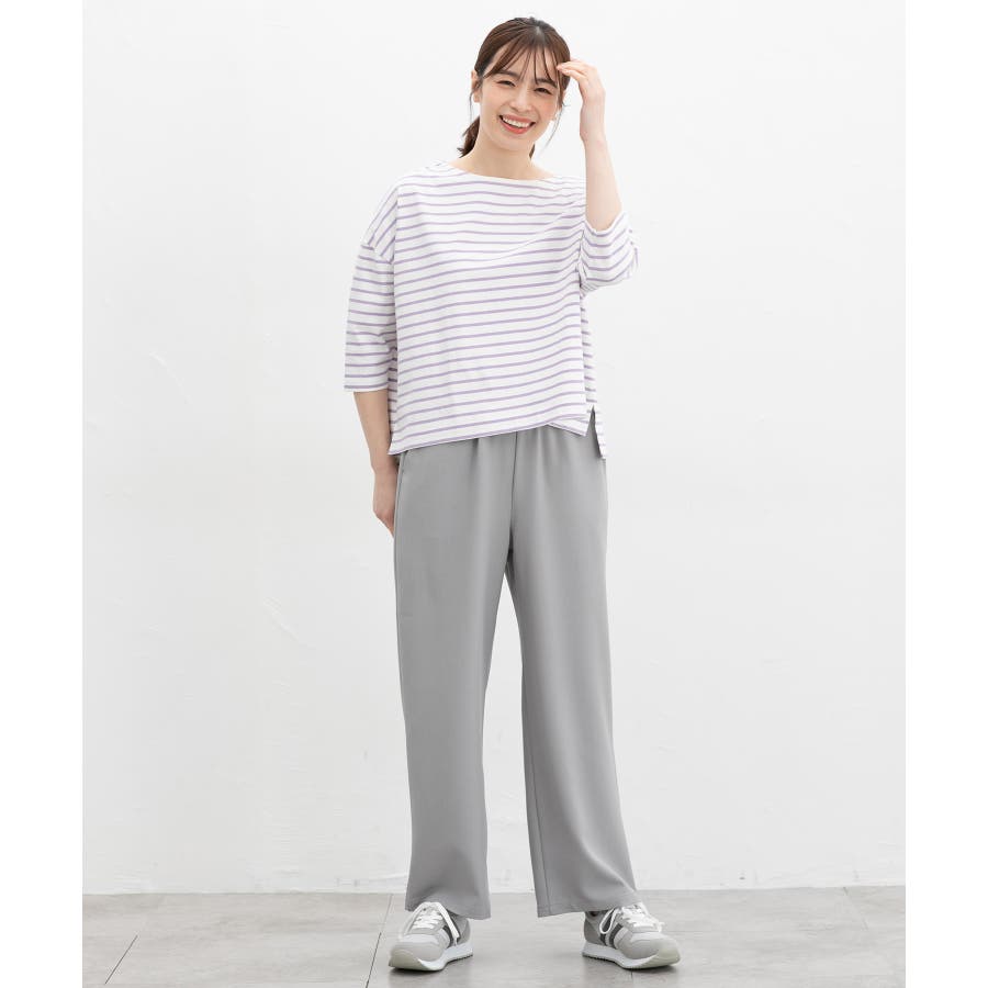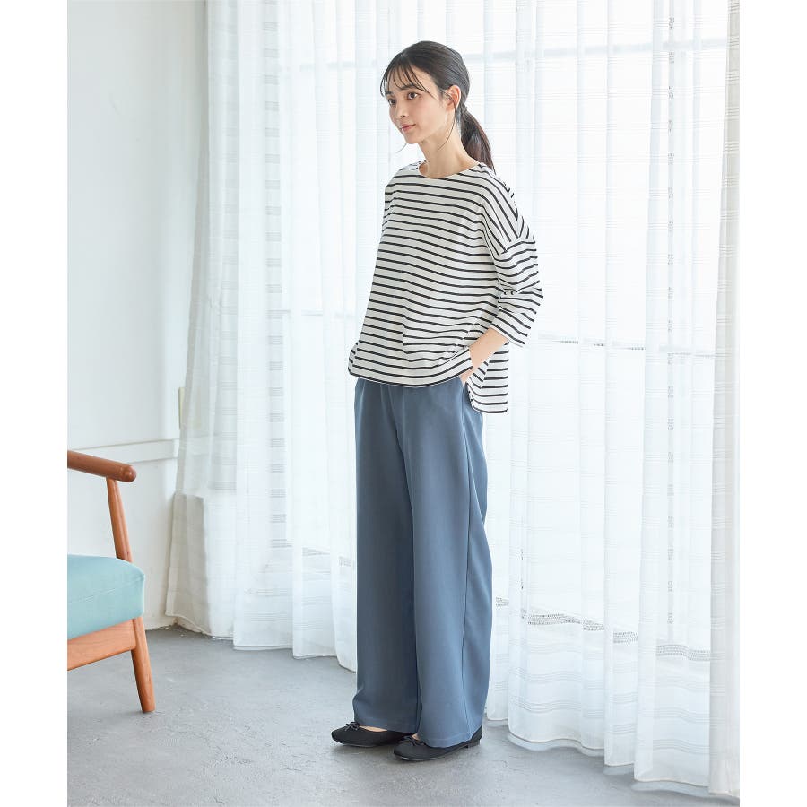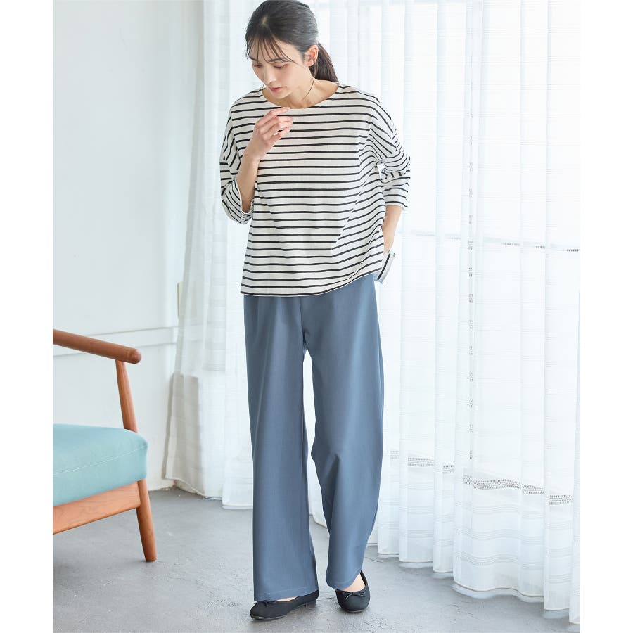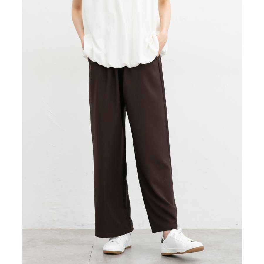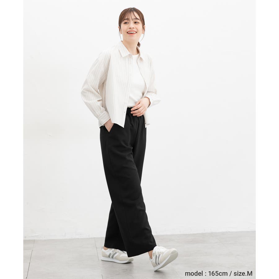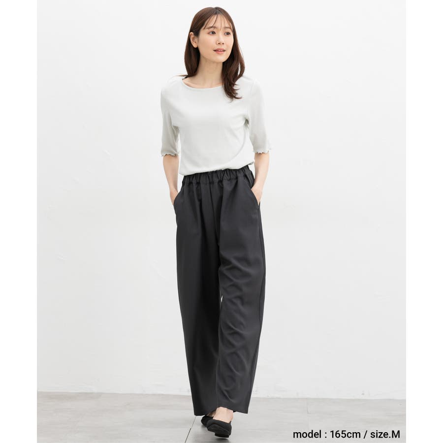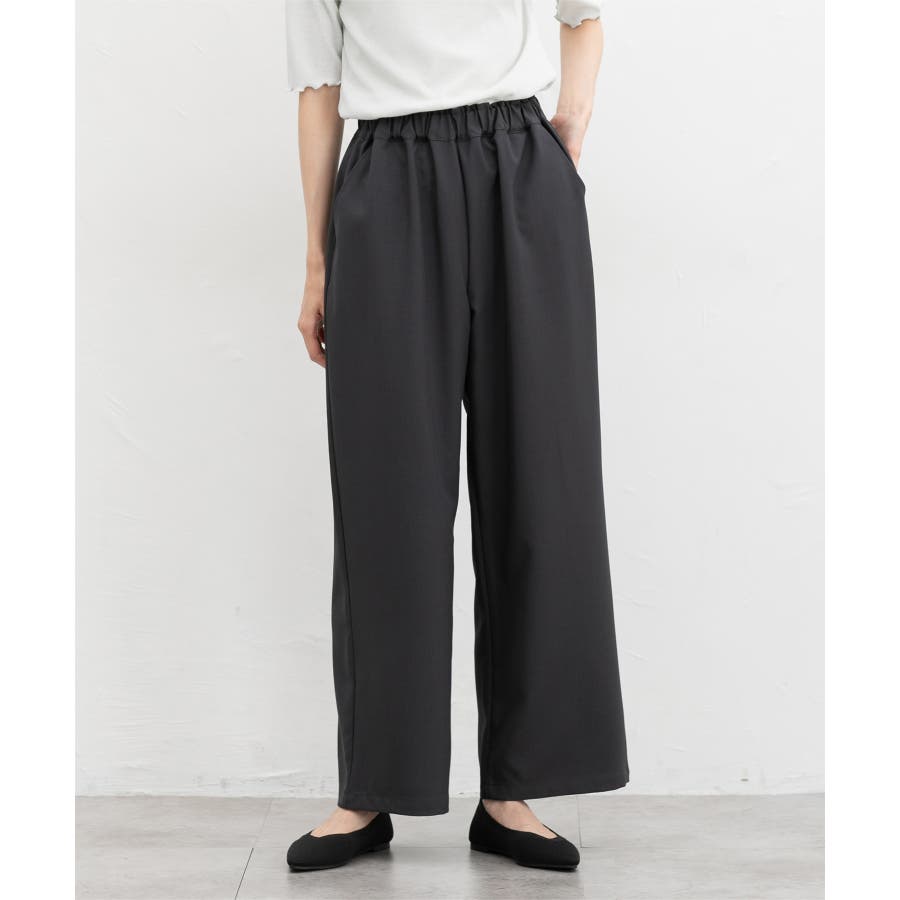 ウエストゴムでリラクシーながら、きれいな表面感でお出かけにもピッタリ。