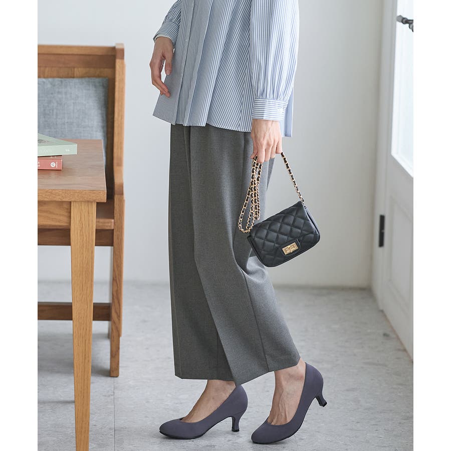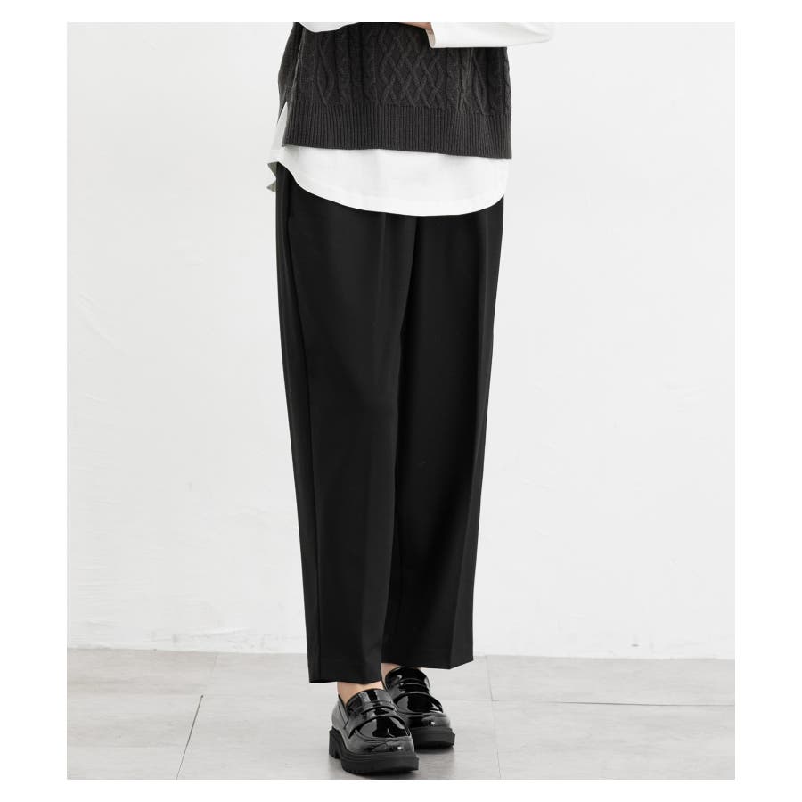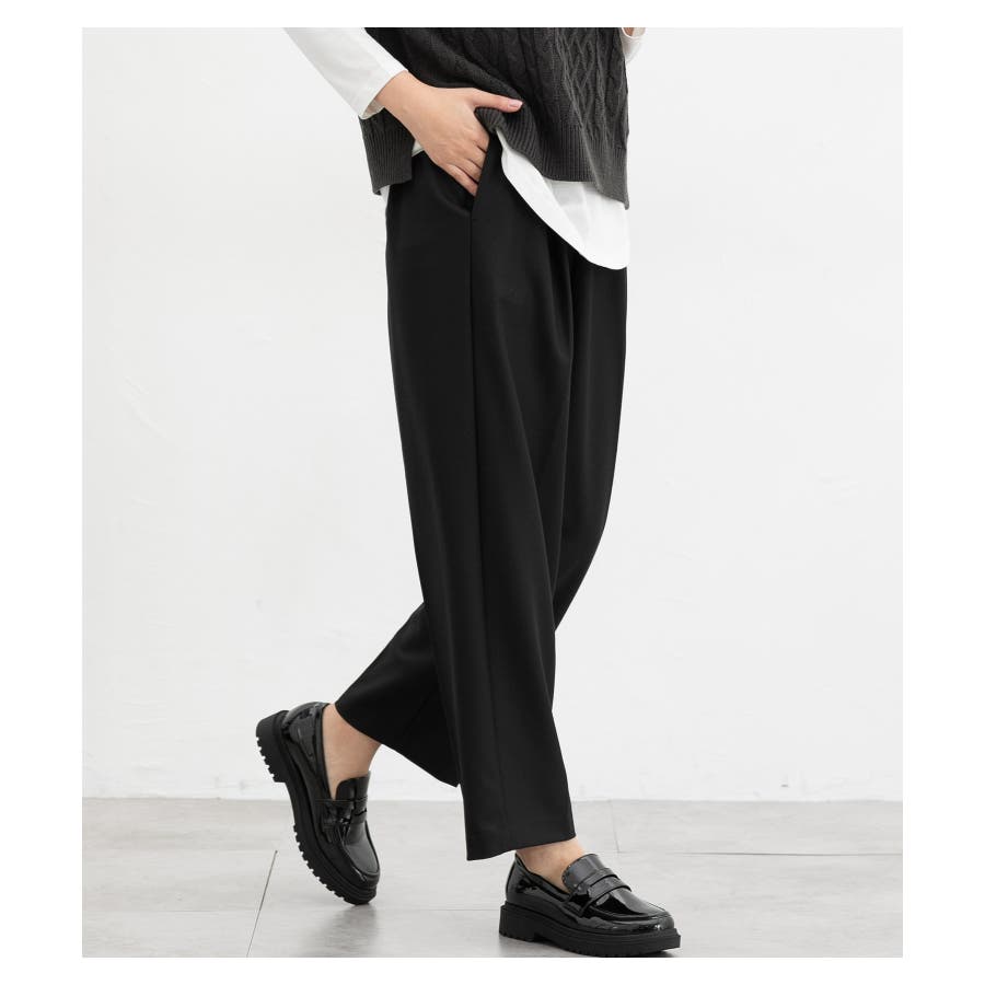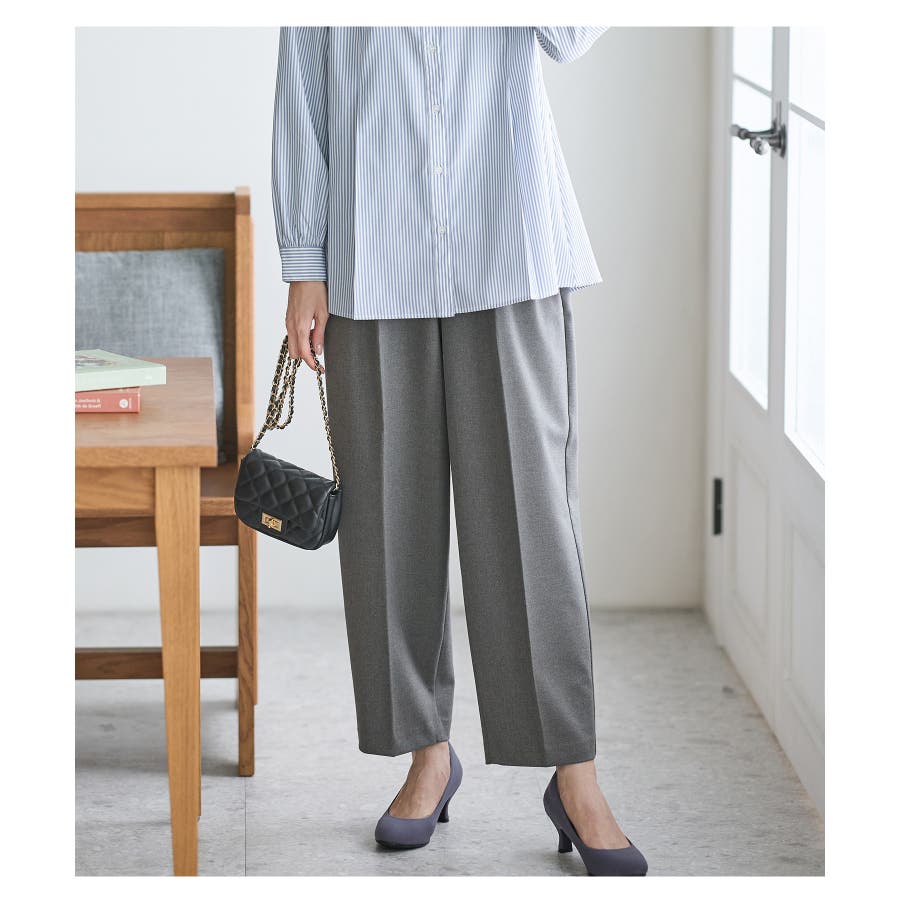 美脚見えする、程よくゆったりとした幅と、縦ラインを強調するセンタープレス。