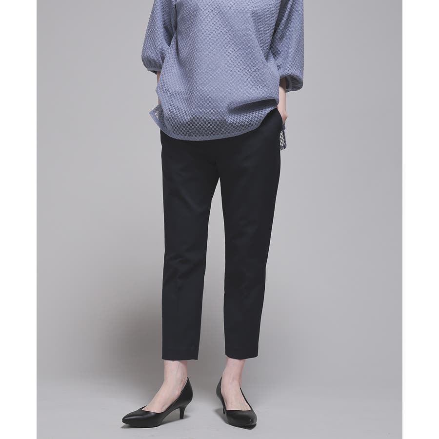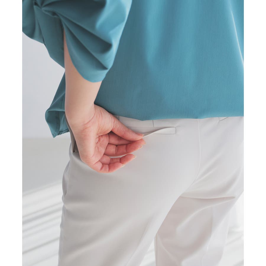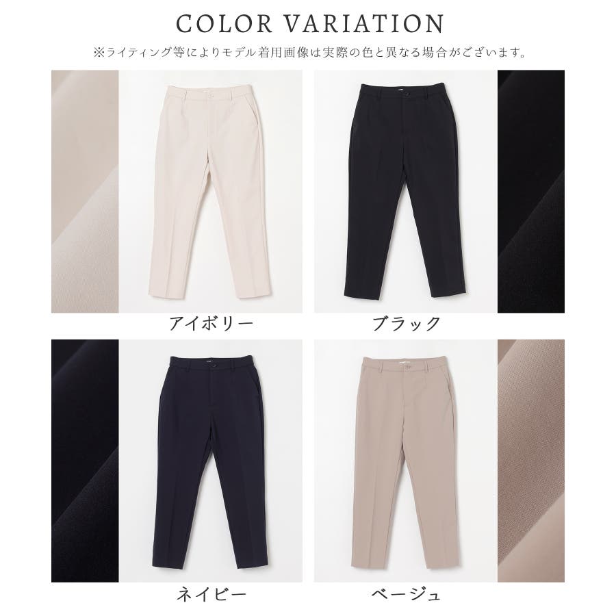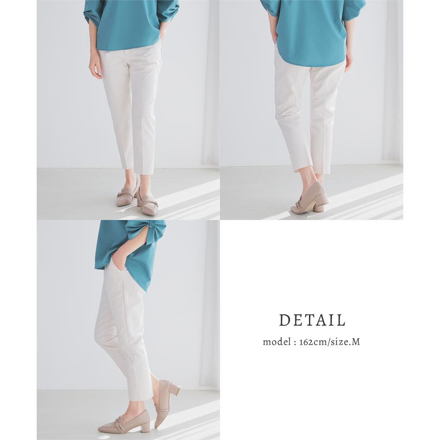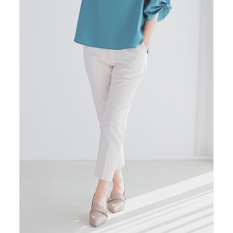センタープレス入りのきれいなシルエットで、きちんと感もスタイルアップも叶えるデザイン。