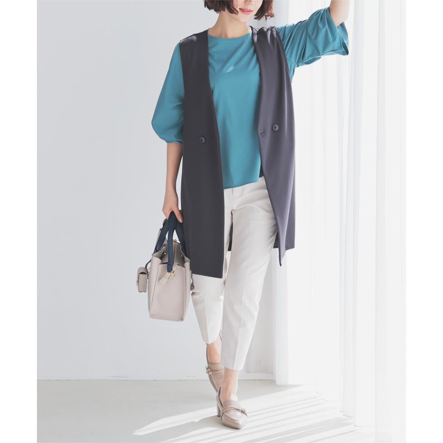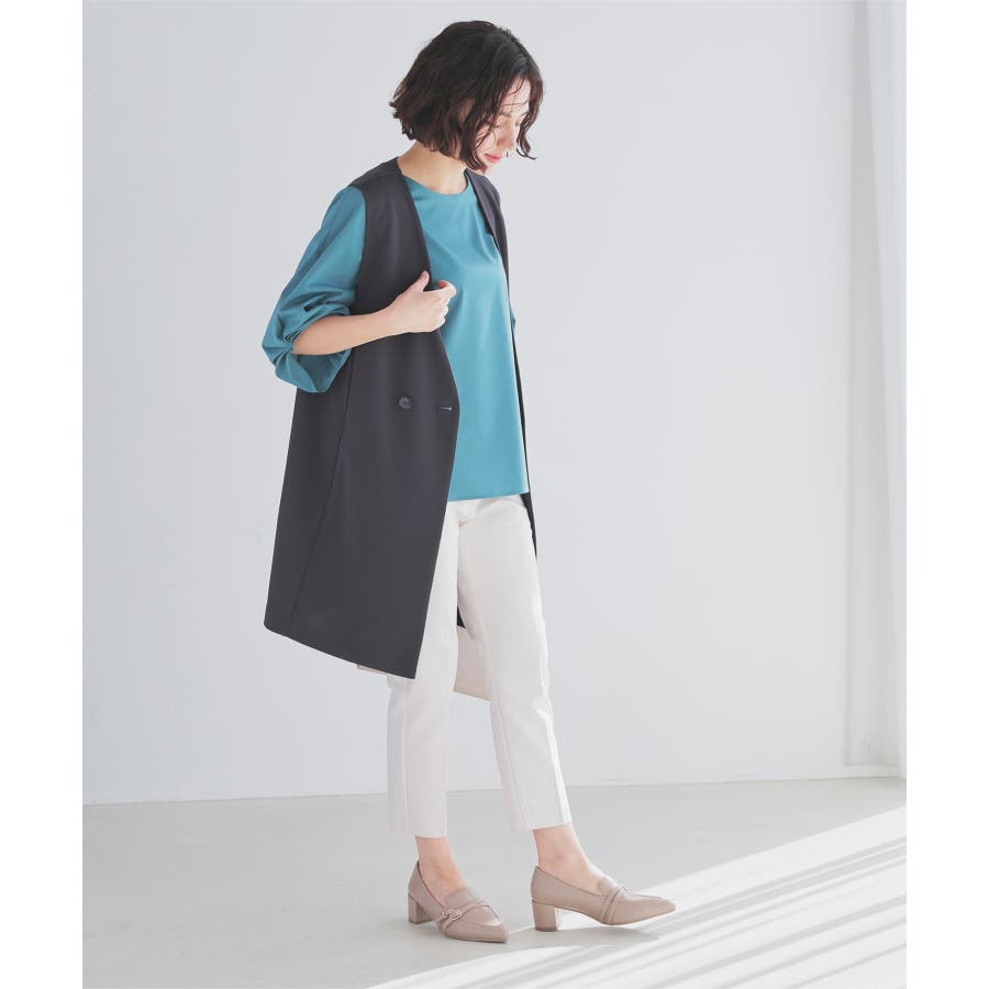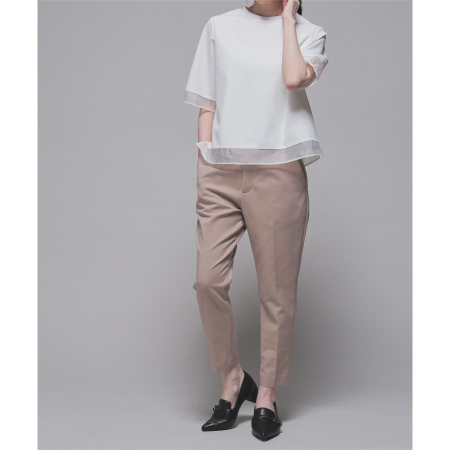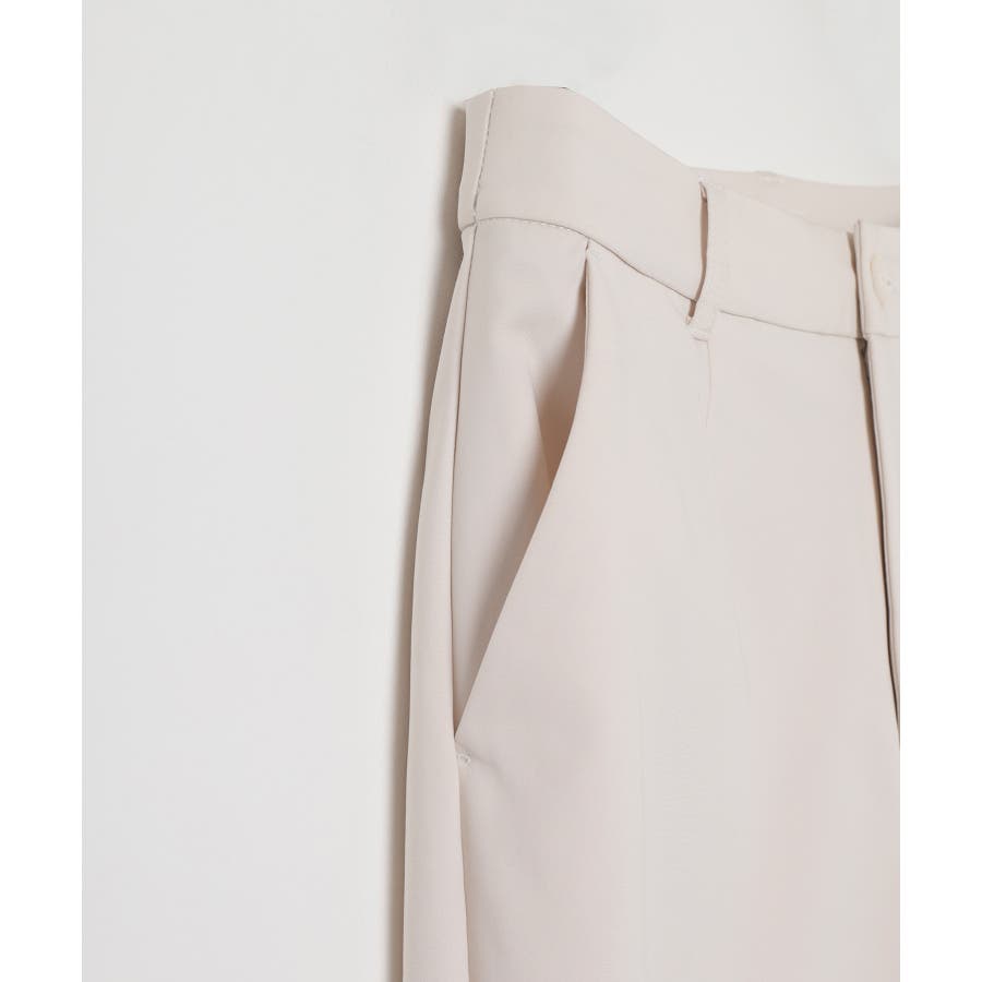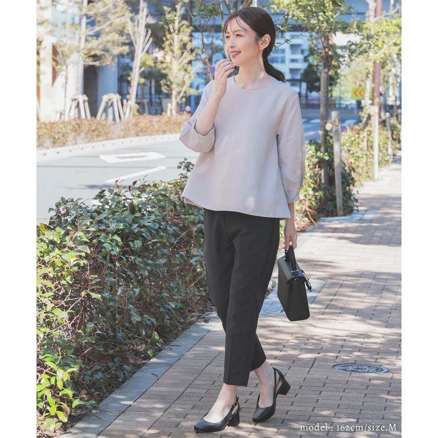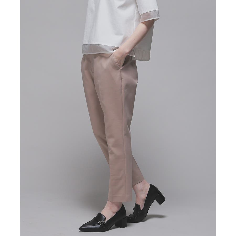 センタープレス入りのきれいなシルエットで、きちんと感もスタイルアップも叶えるデザイン。