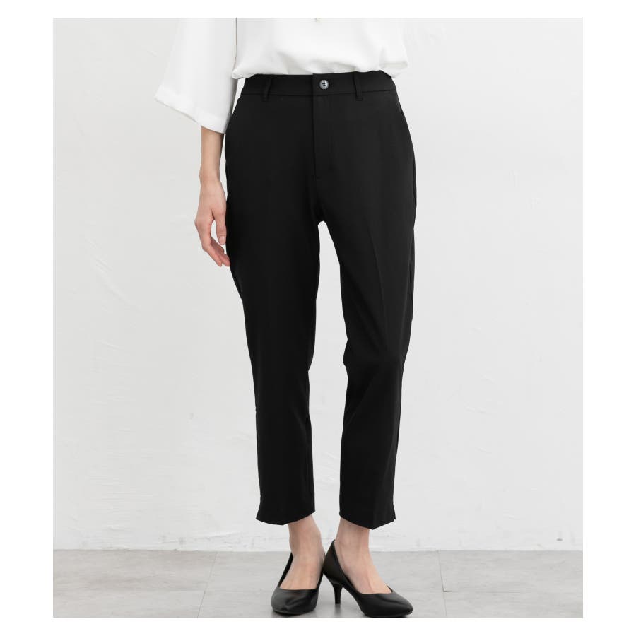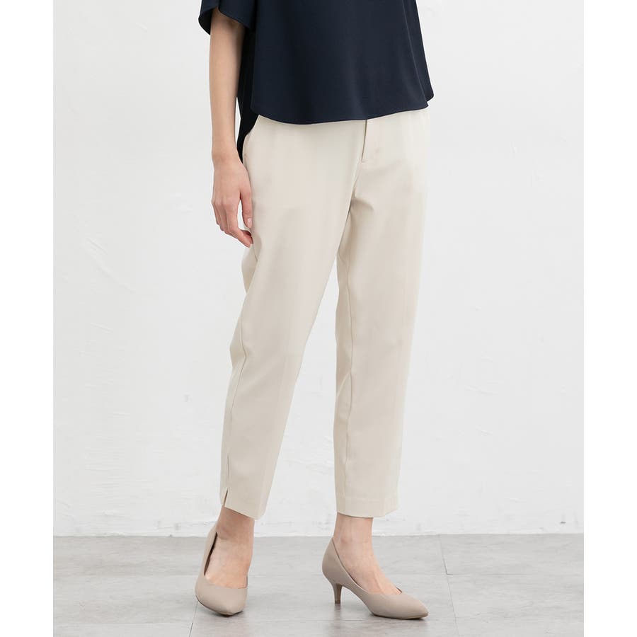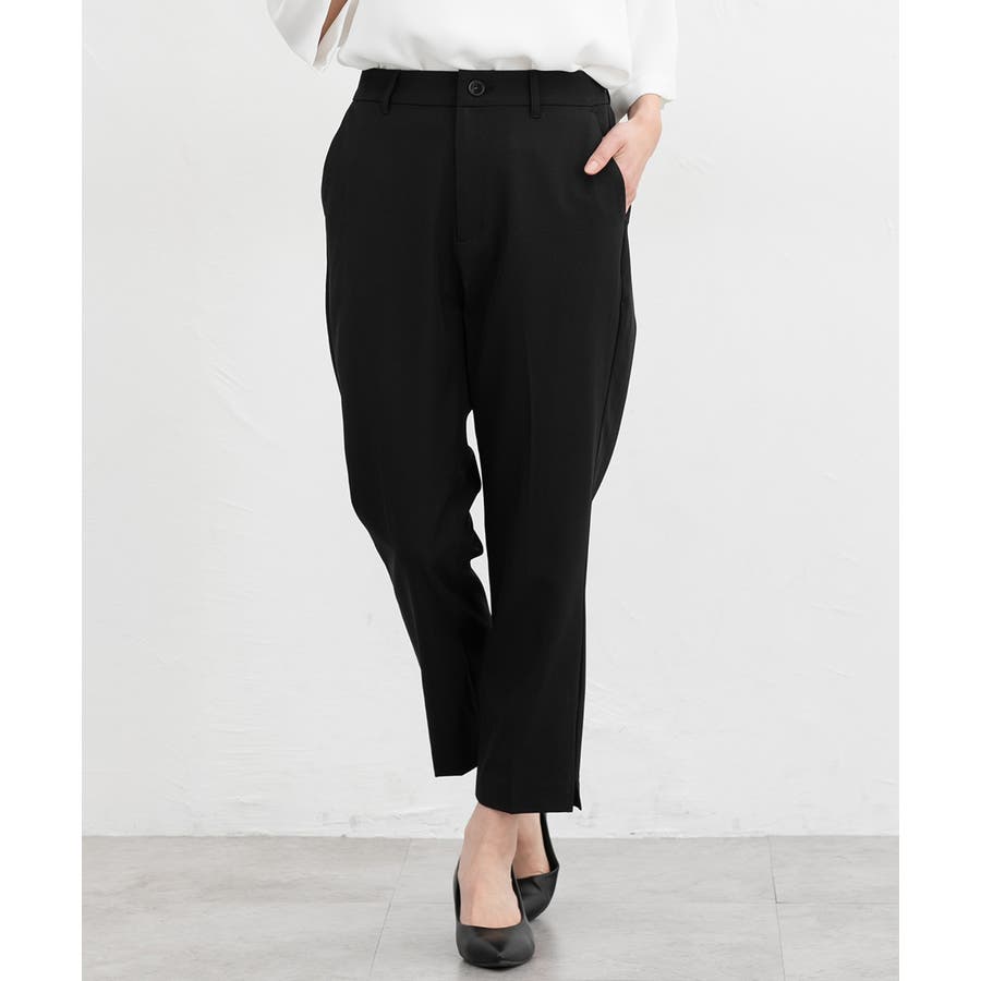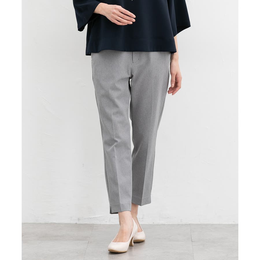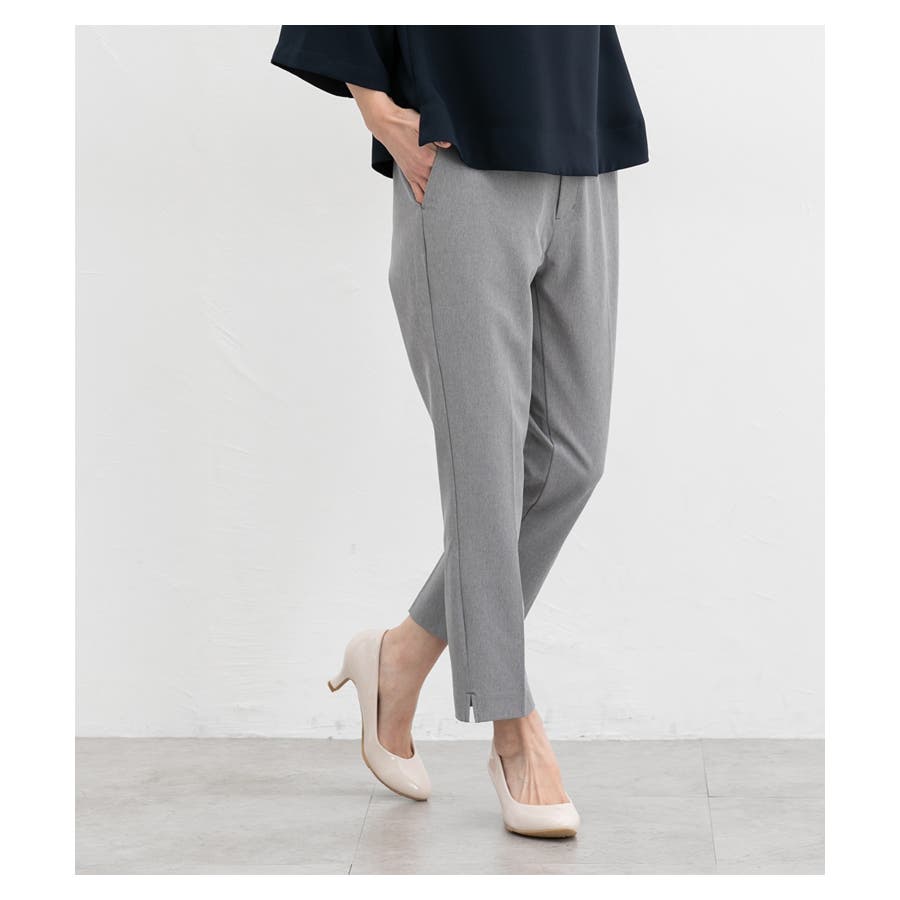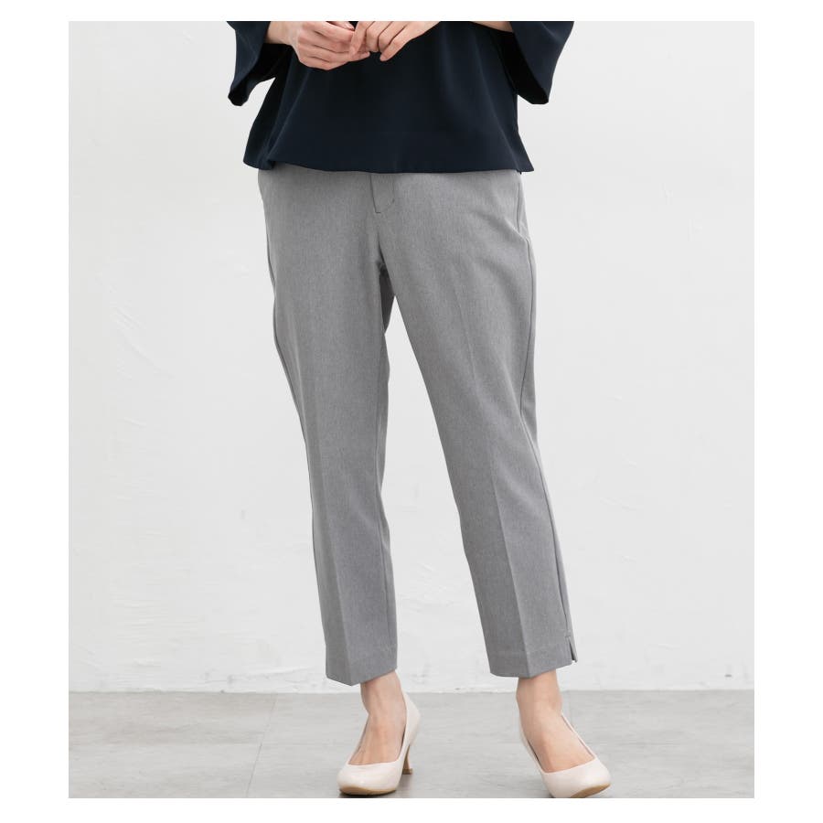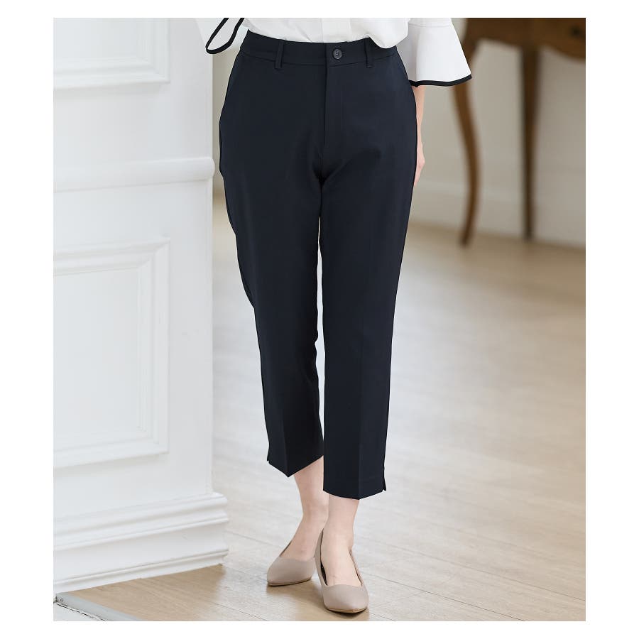 足首がすっきり見えるクロップド丈とサイドスリットで抜け感をプラス。