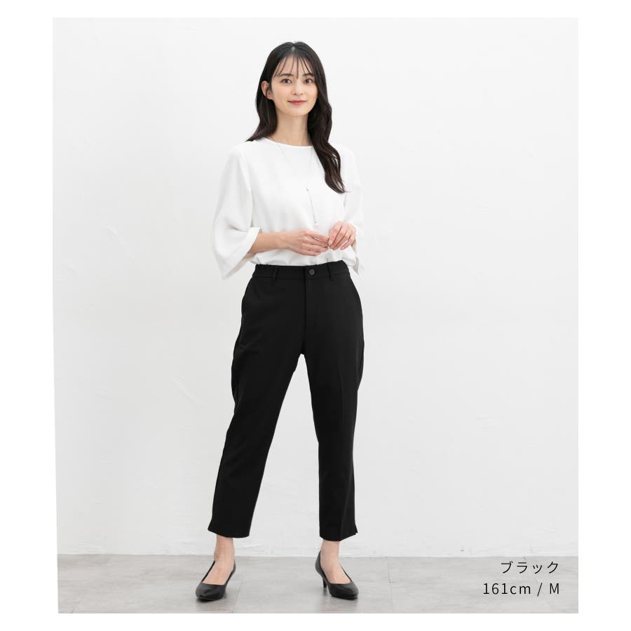 きちんと感のあるセンタープレス入りで、脚がすらっと見えるデザイン。