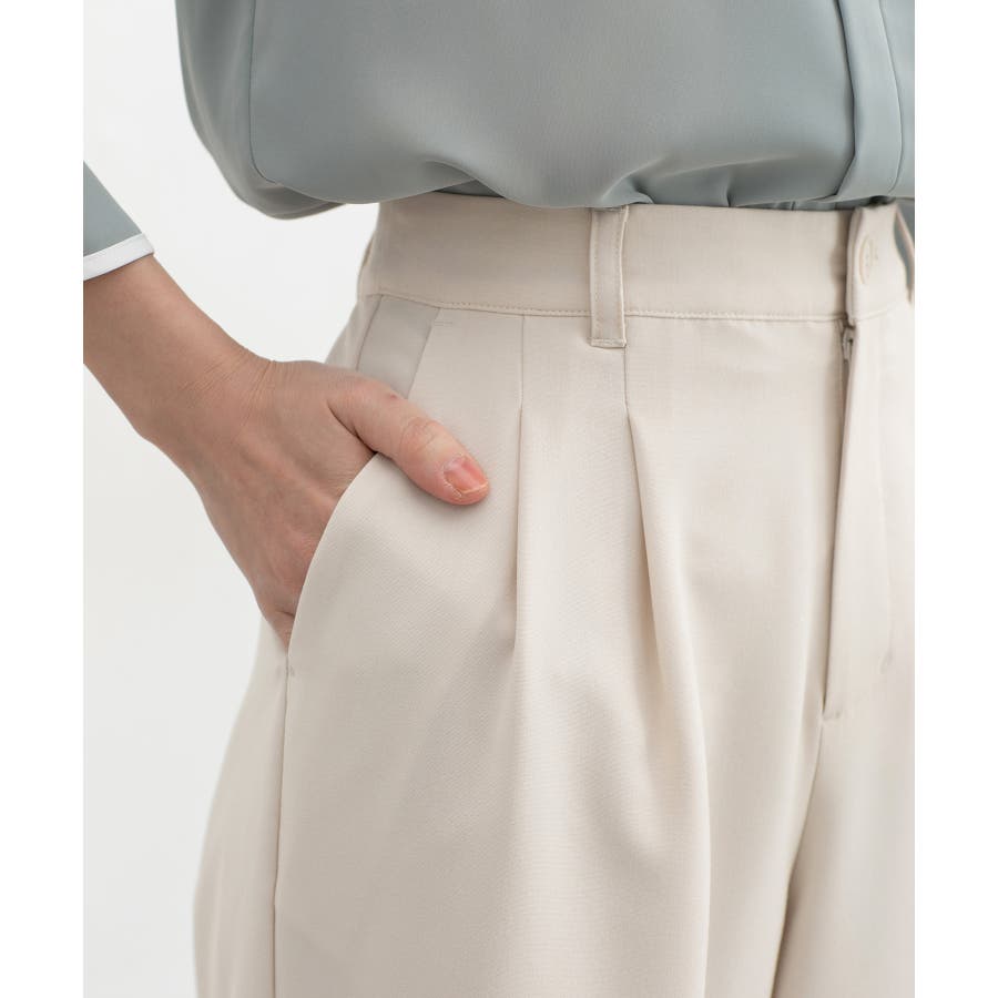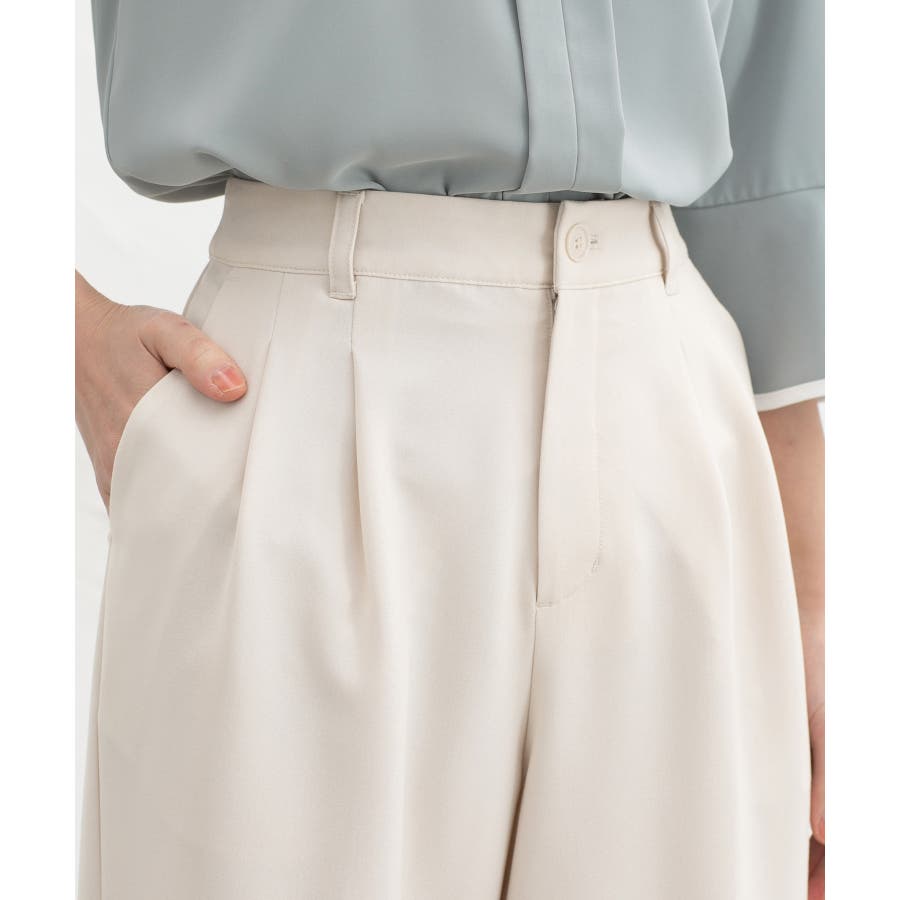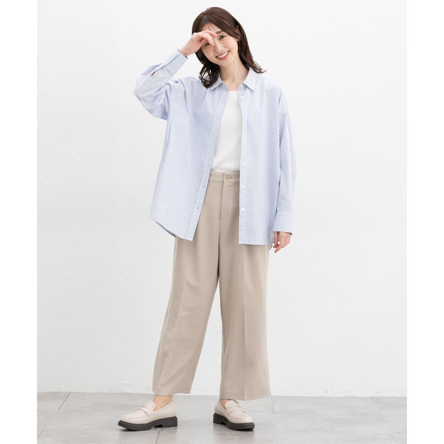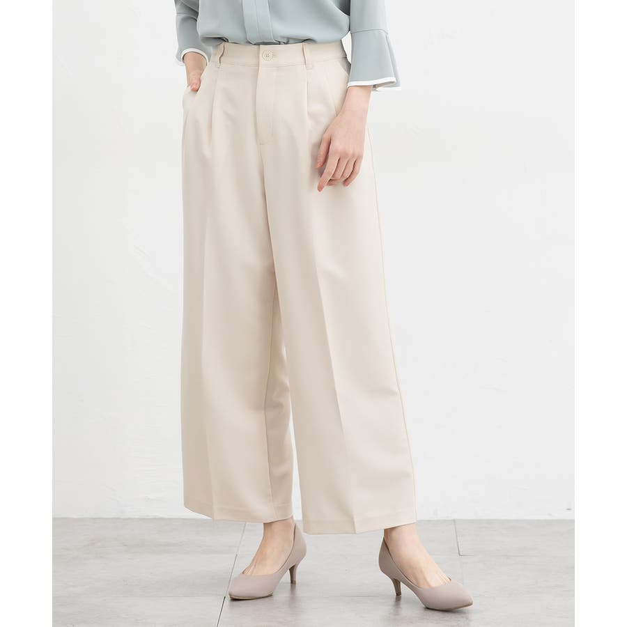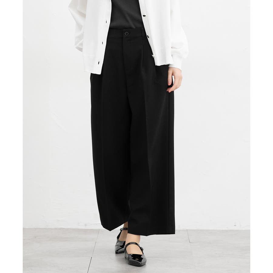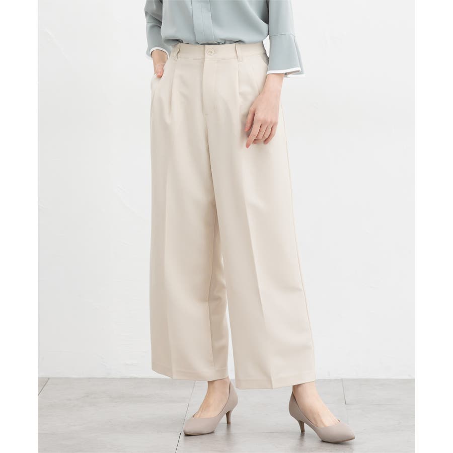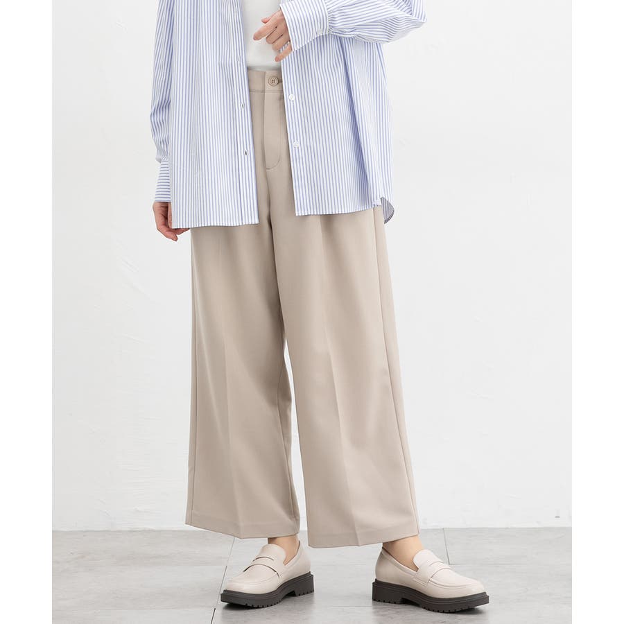 ストンと落ちる太すぎないワイドシルエットときちんと感のあるセンタープレスで、こなれた感も美脚効果も抜群のデザイン。