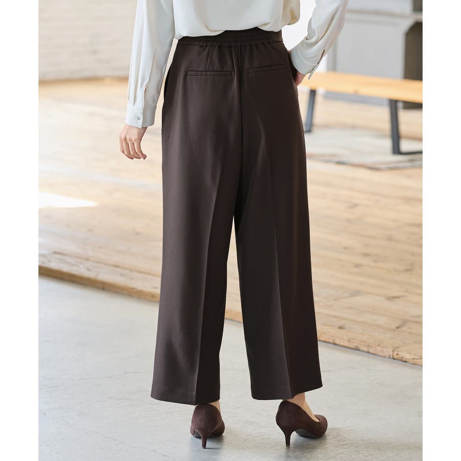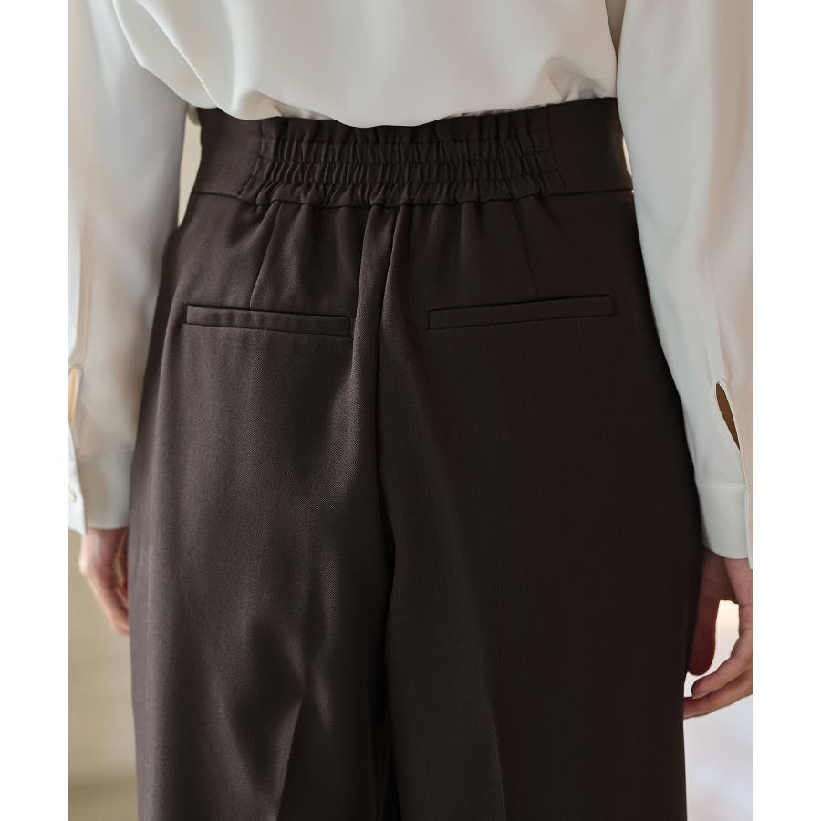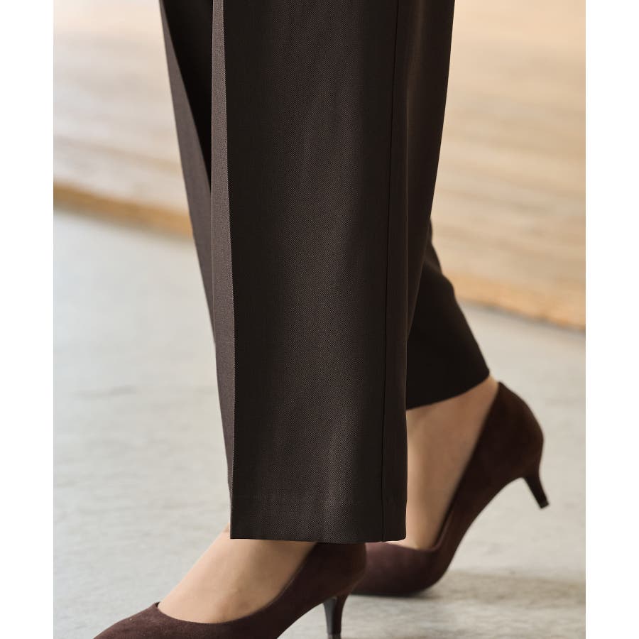 中心のみに設定した後ろゴムで、腰回りの広がりを抑えてきれい見えを叶え、センタープレスとハイウエストで美脚効果も抜群。