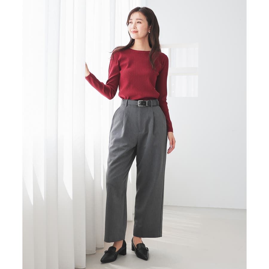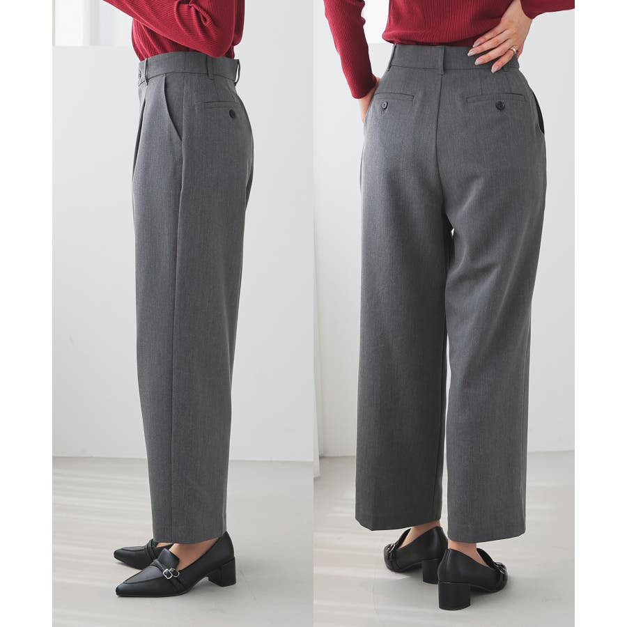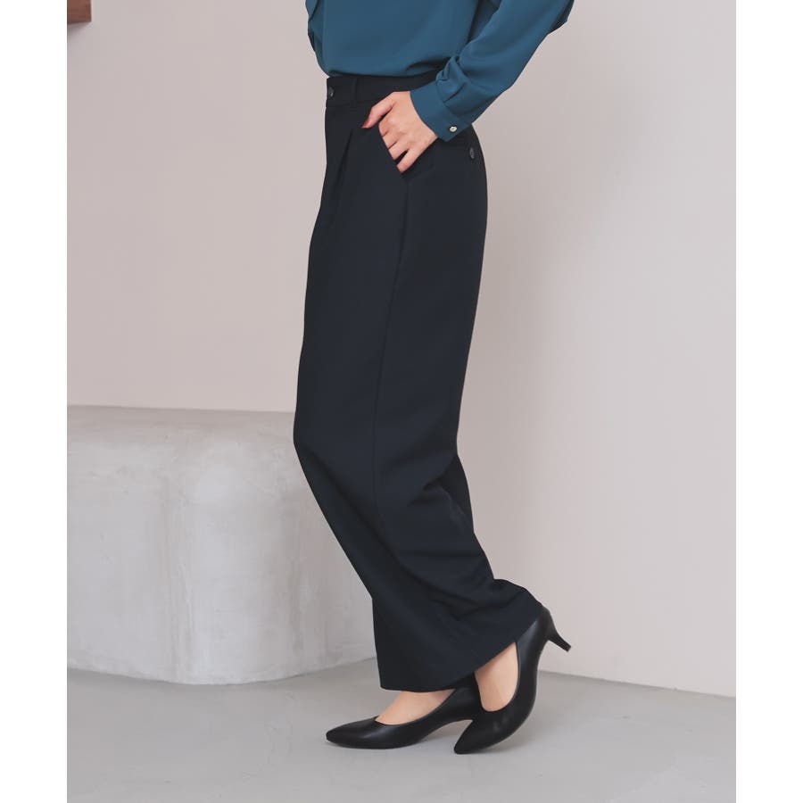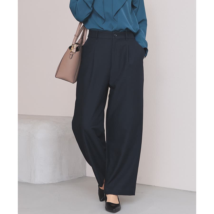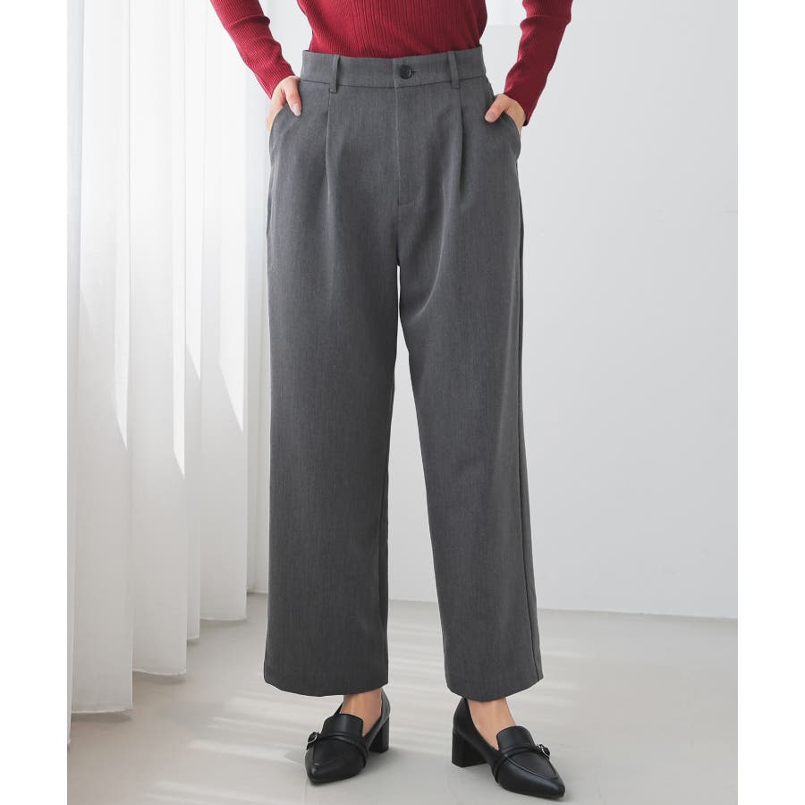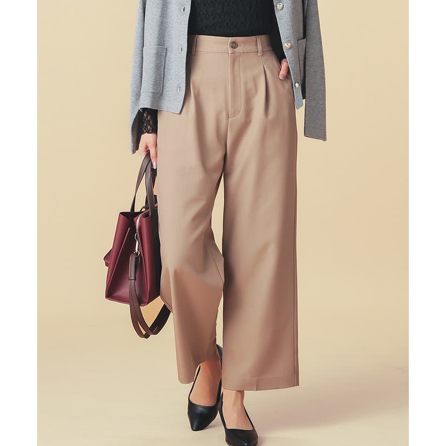 ストンと落ちる太すぎないシルエットとセンタープレスで脚をすらっと綺麗に見せる、こなれ度抜群のデザイン。