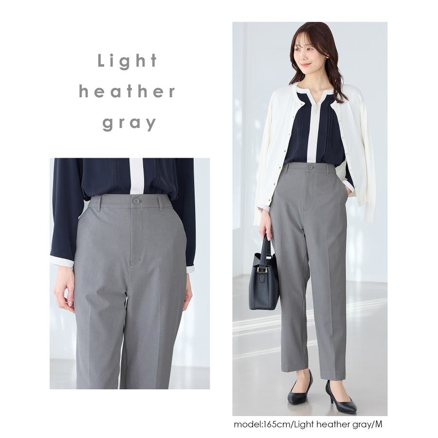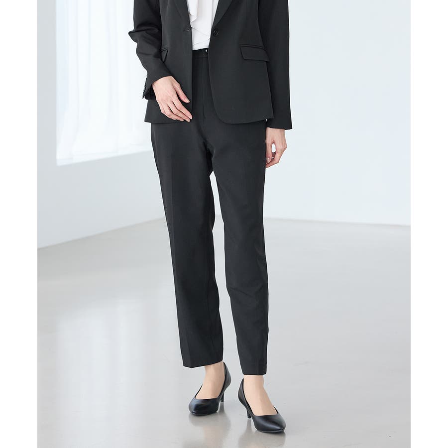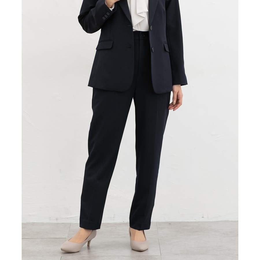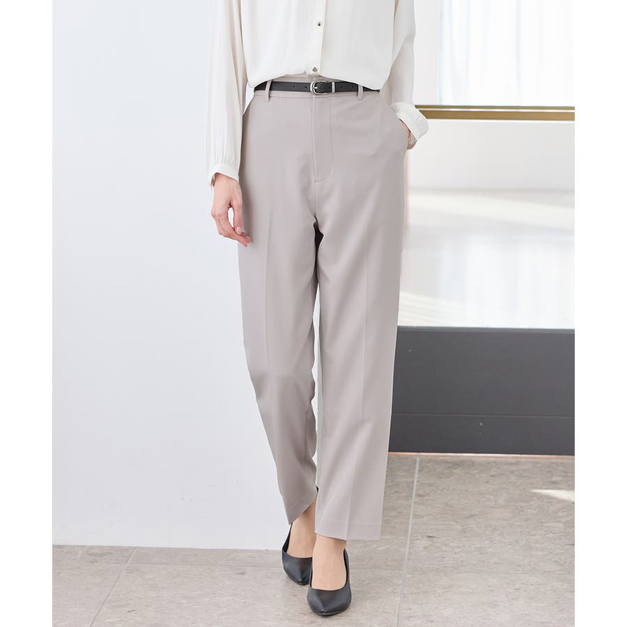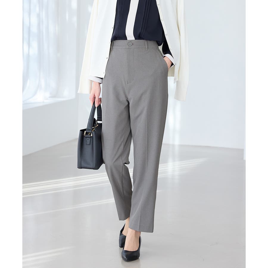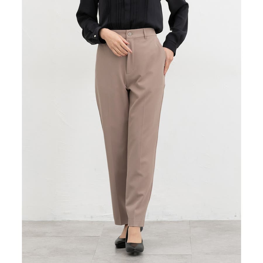 きちんと感のあるセンタープレス入りで、美脚効果も抜群のテーパードパンツ、股下66cmタイプ。