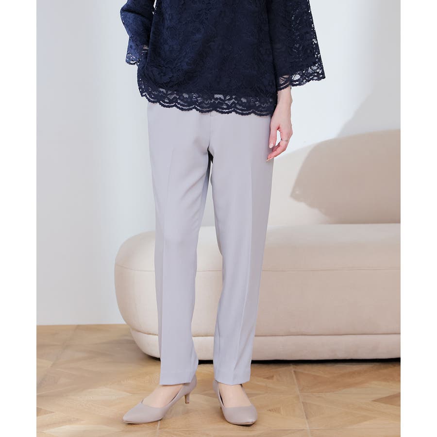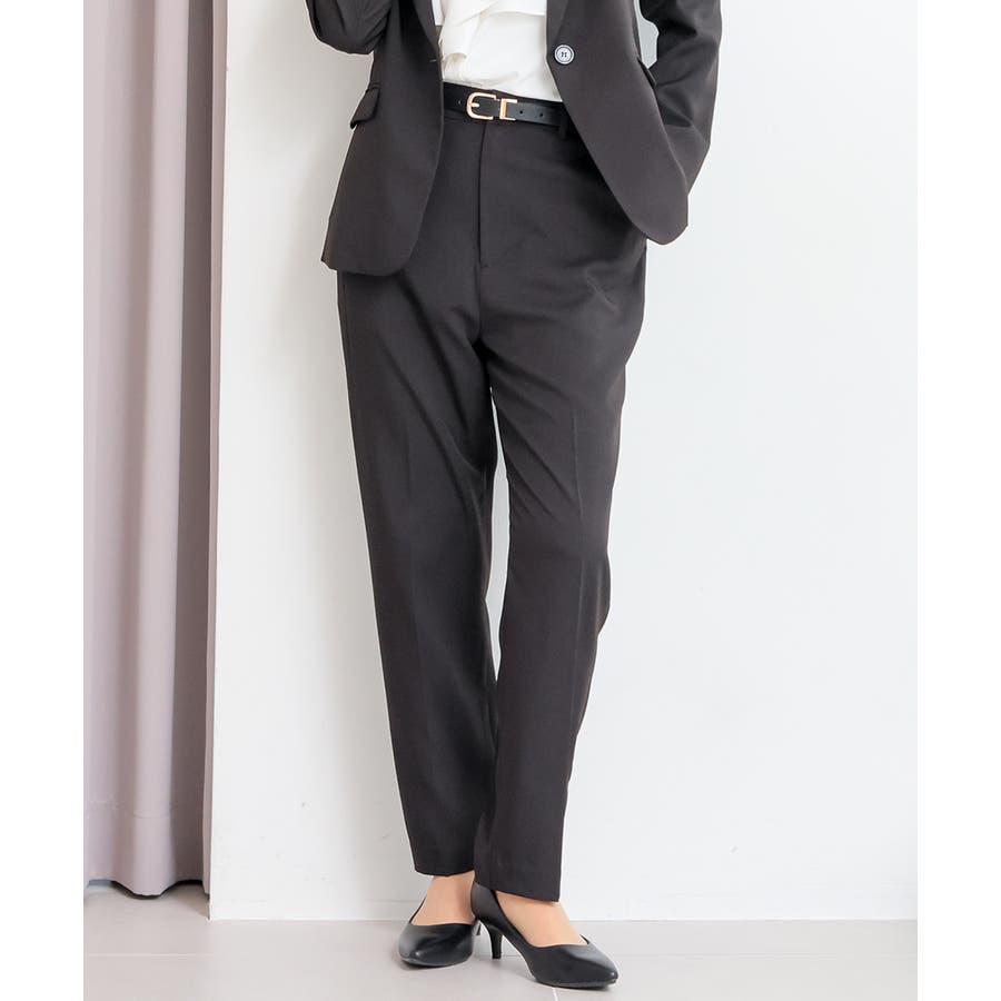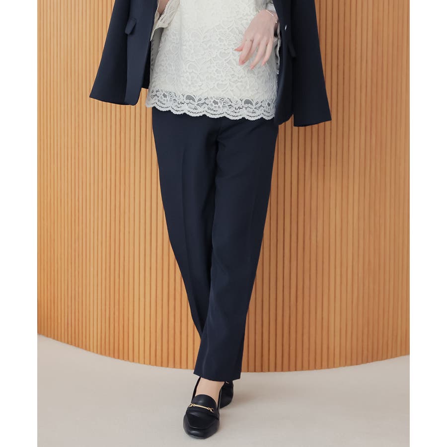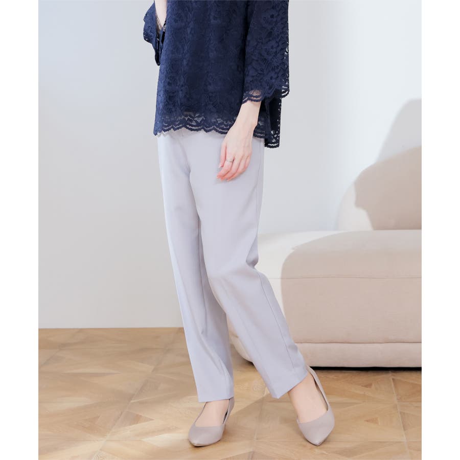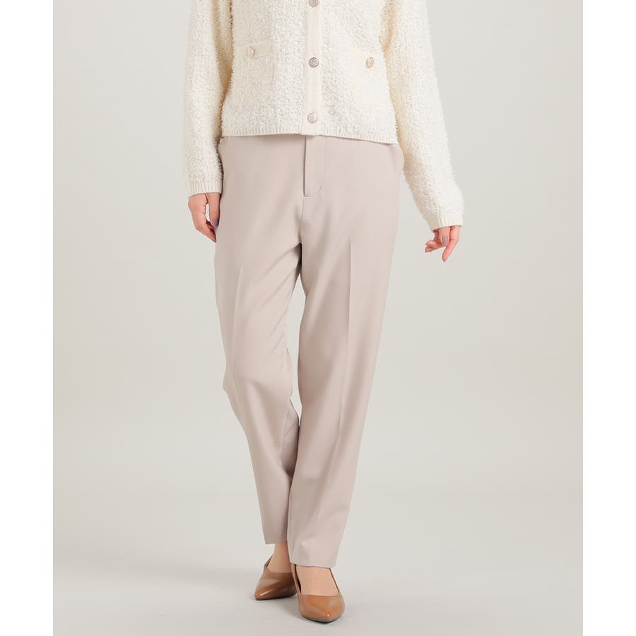 縦ラインを強調するセンタープレスと、腰回りのラインにこだわった、裾に向かって細くなるすっきりとしたシルエットで美脚効果抜群のデザイン。