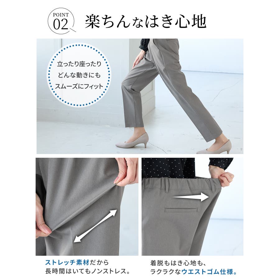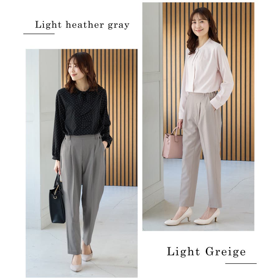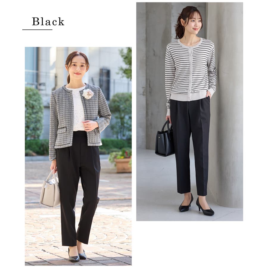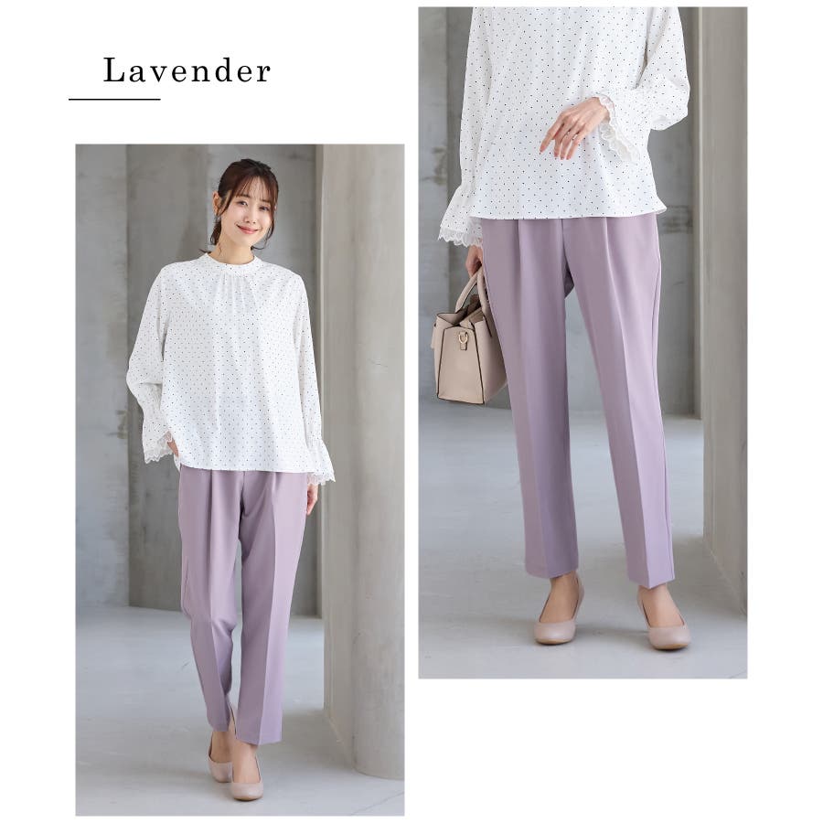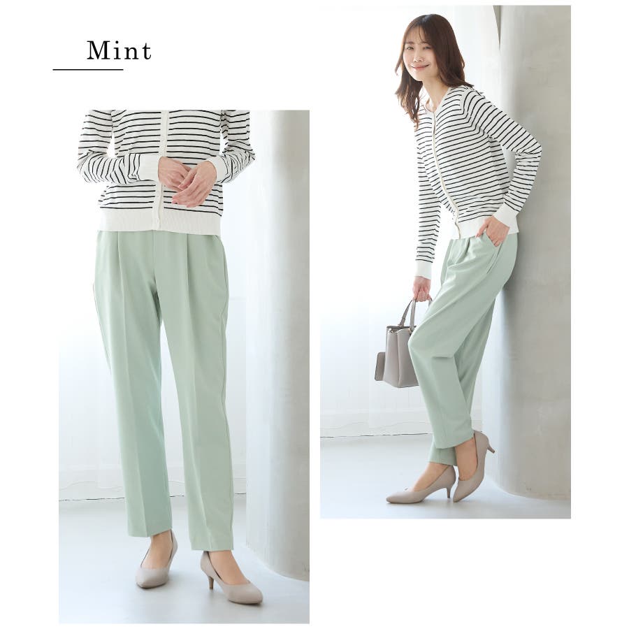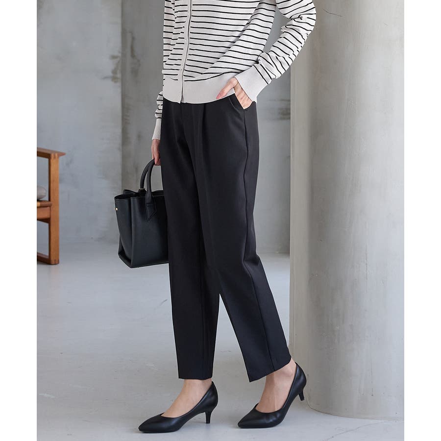きちんと感のあるセンタープレスと、腰回りのラインにこだわった、裾に向かって細くなる美しいシルエットで美脚効果も抜群。
