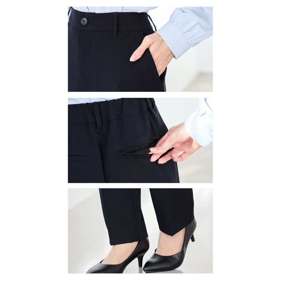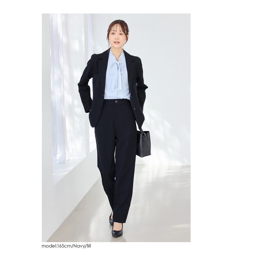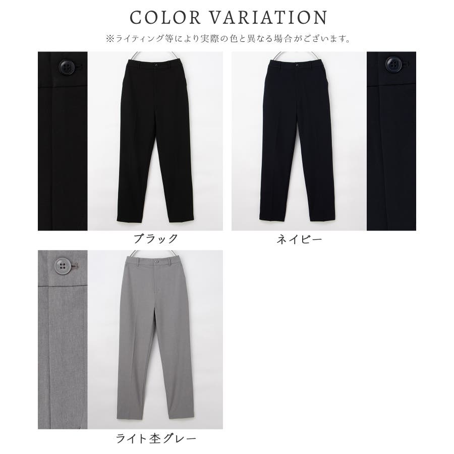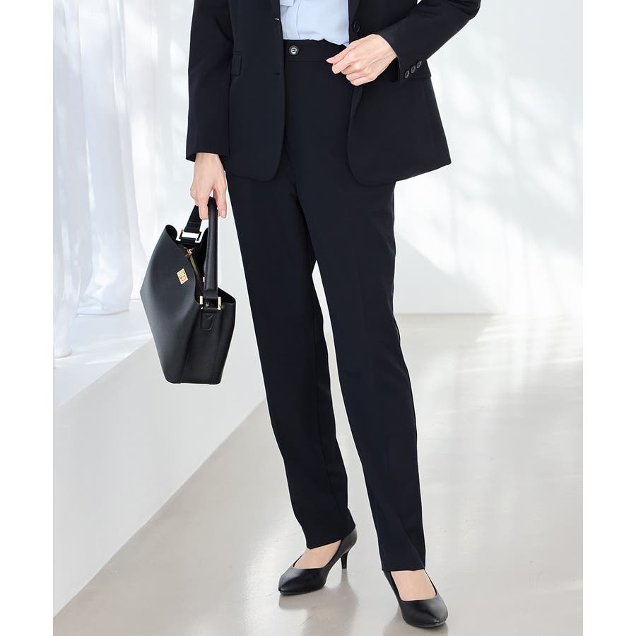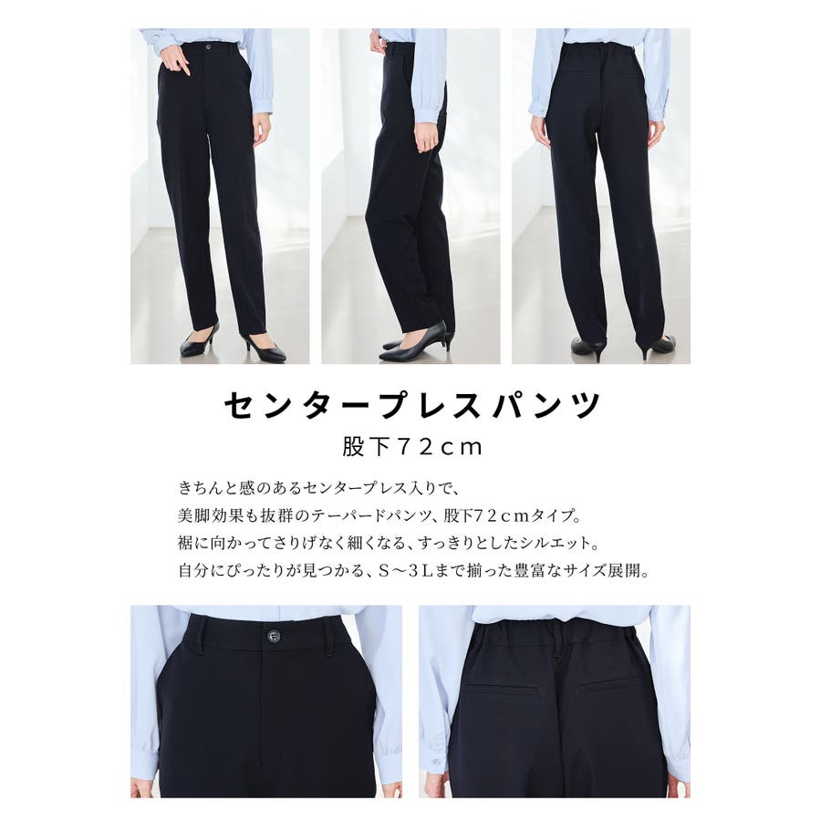 きちんと感のあるセンタープレス入りで、美脚効果も抜群のテーパードパンツ、股下72cmタイプ。