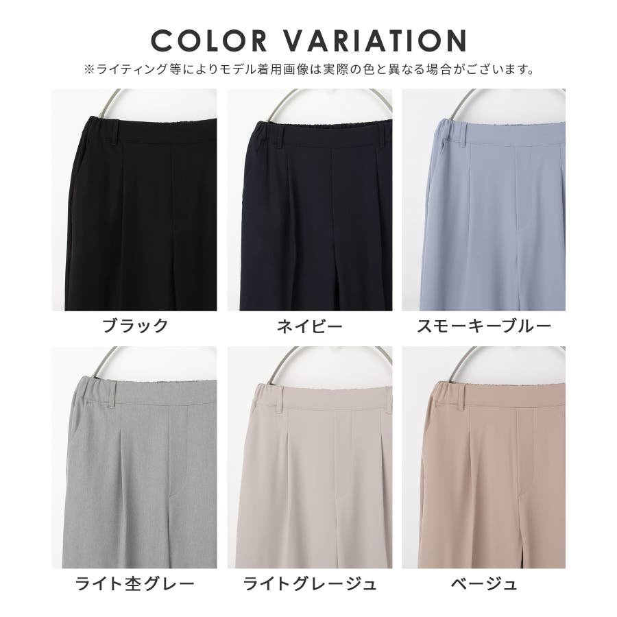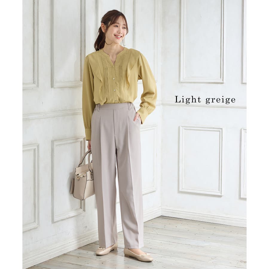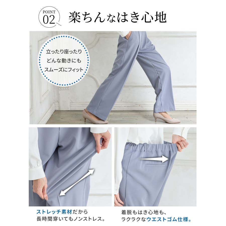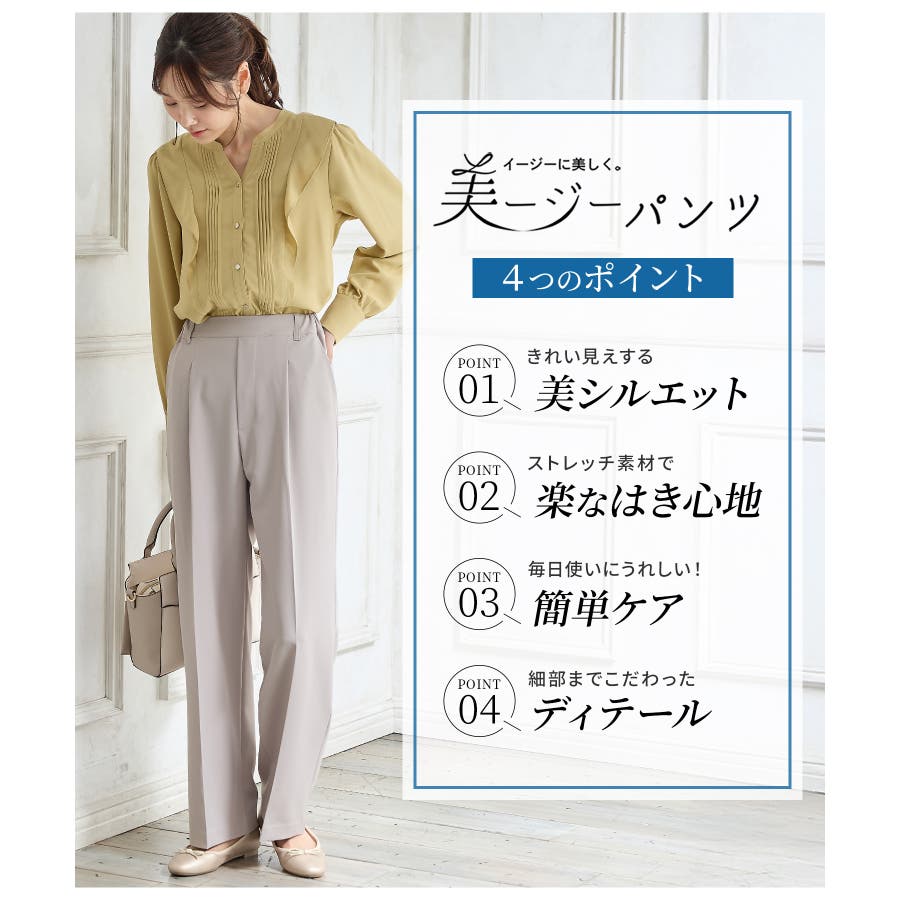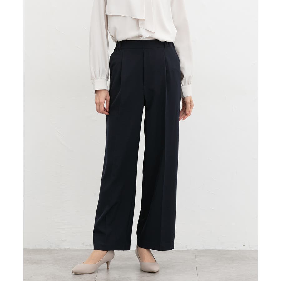 きちんと感のあるセンタープレスと腰回りのラインにこだわった美しいストレートシルエットで美脚効果も抜群。