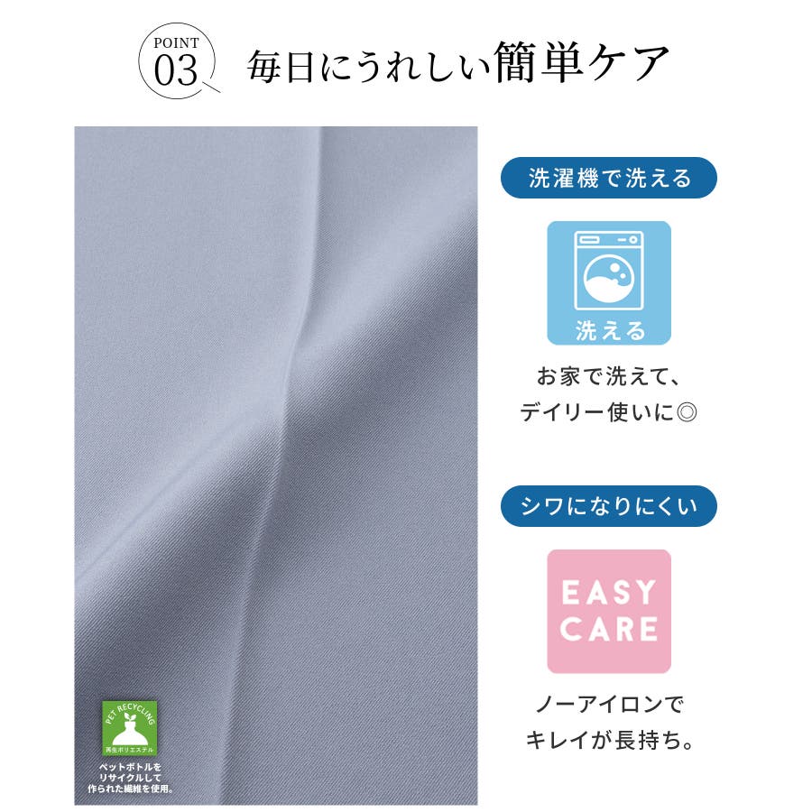 洗濯機で洗える『マシンウォッシャブル』と、シワになりにくい『イージーケア』の機能付き。