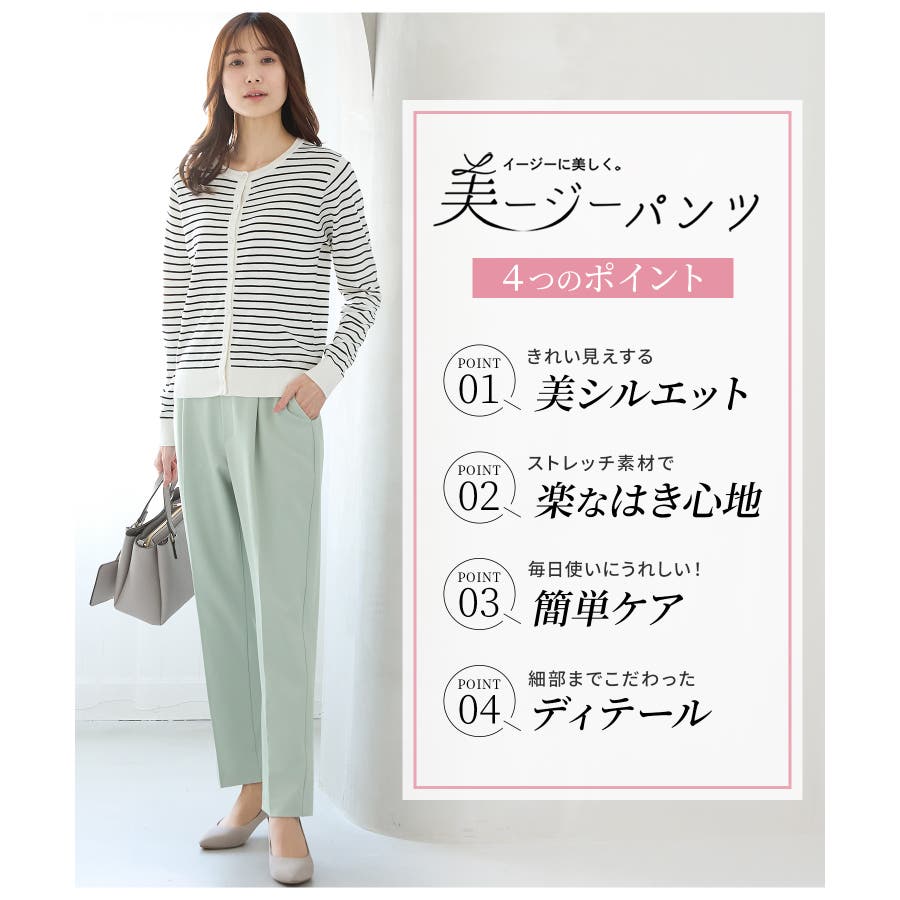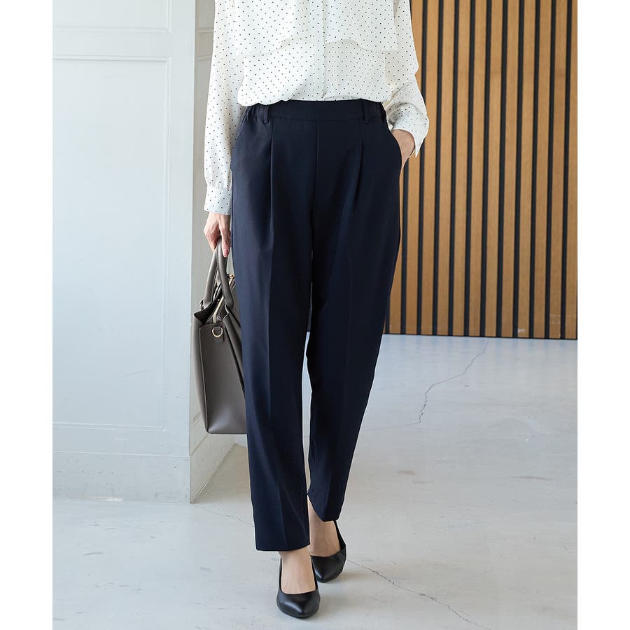 きちんと感のあるセンタープレスと、腰回りのラインにこだわった、裾に向かって細くなる美しいシルエットで美脚効果も抜群。