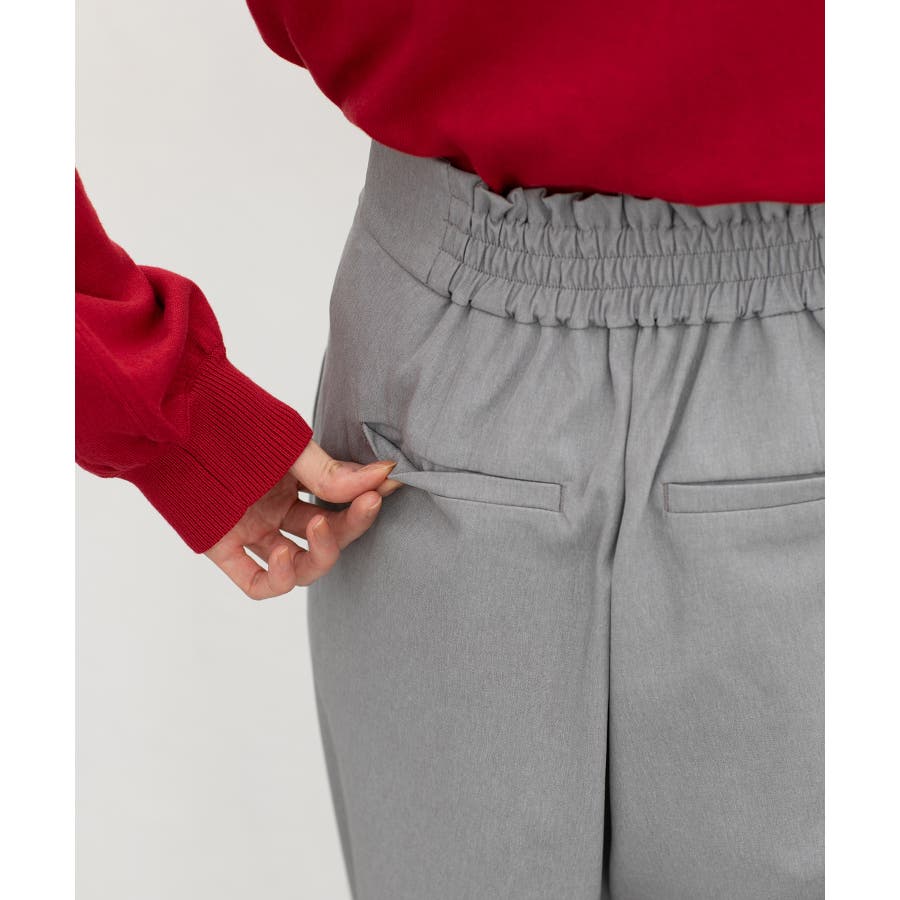中心のみに設定した後ろゴムで腰回りの広がりを抑えてきれい見えを叶え、センタープレスとハイウエストで美脚効果も抜群。