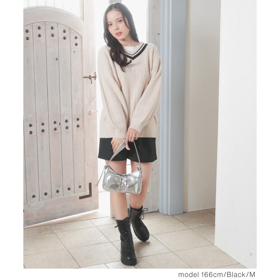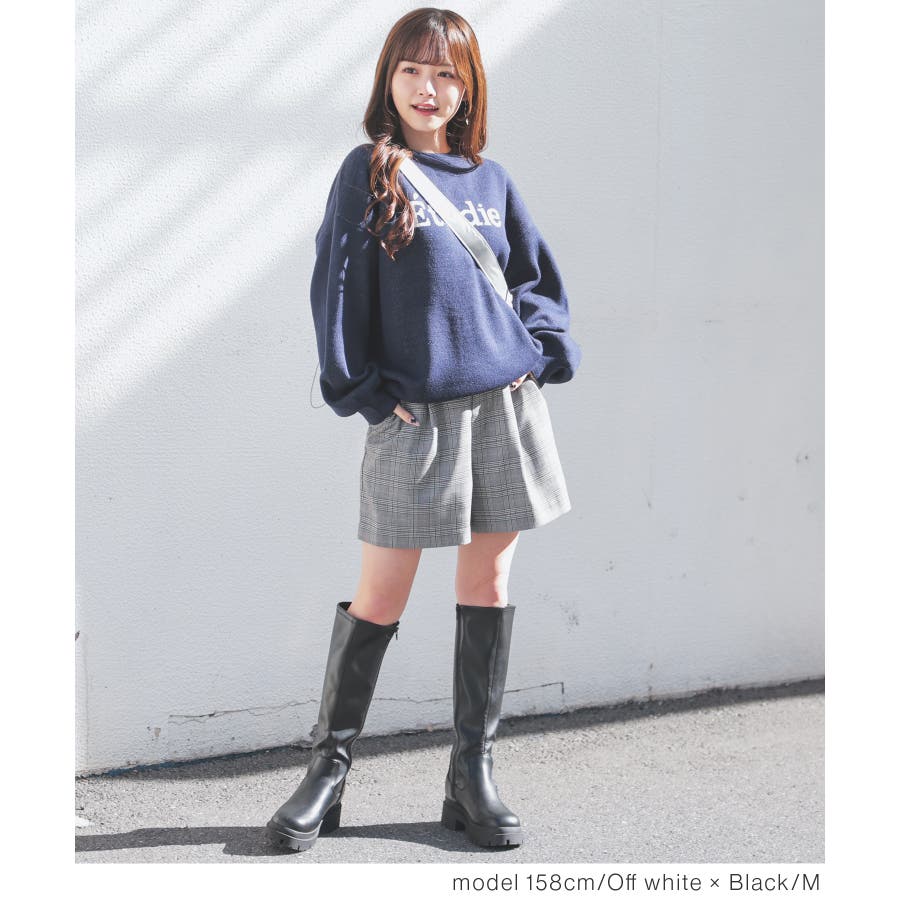 オーバーサイズのトレーナーの下から少し見えるショートパンツはかわいいです。