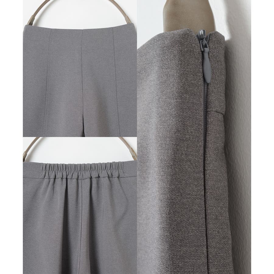 高め位置のすっきりとしたウエスト回りと縦ラインが際立つシルエットで脚長も細見えも叶うデザイン。