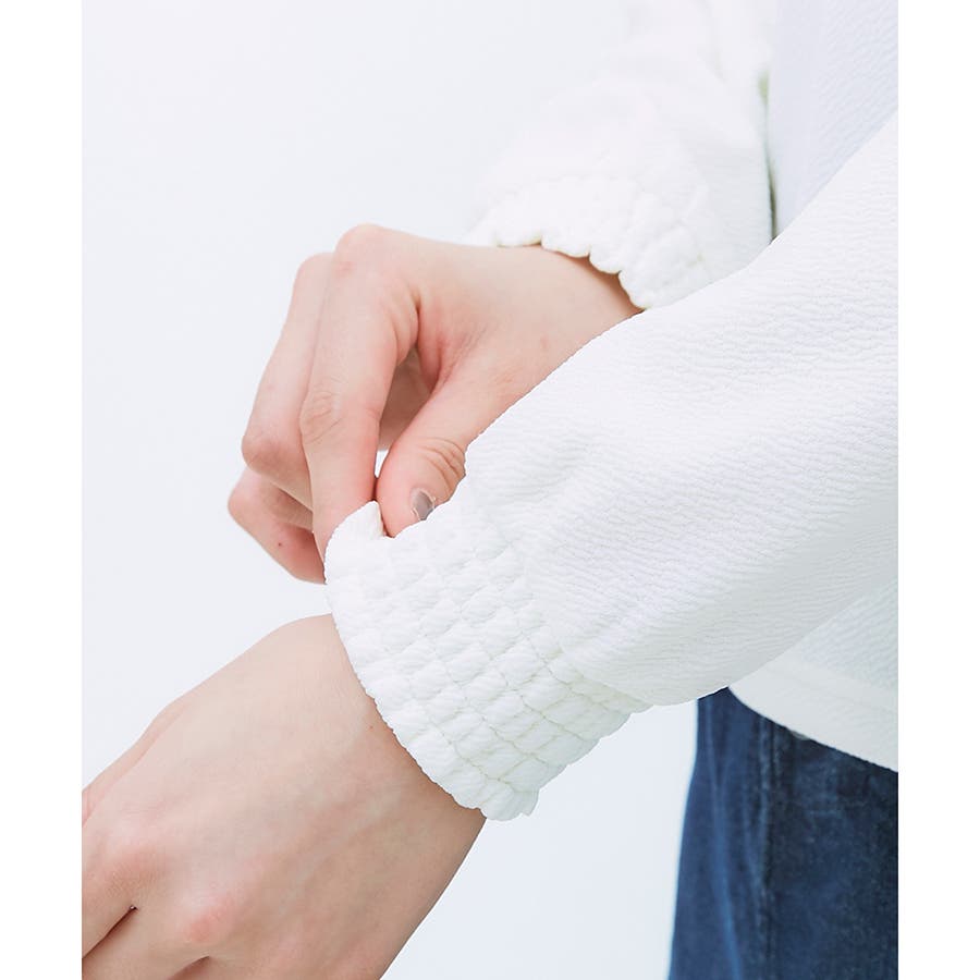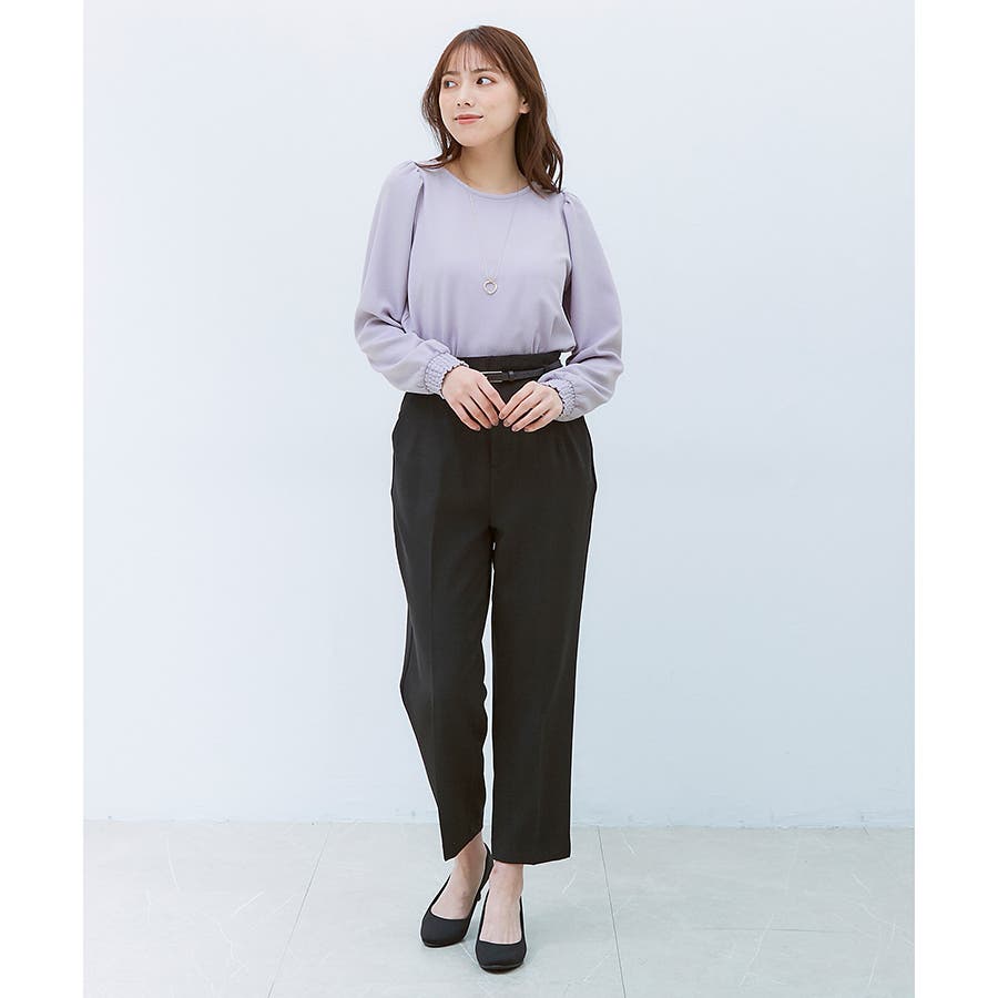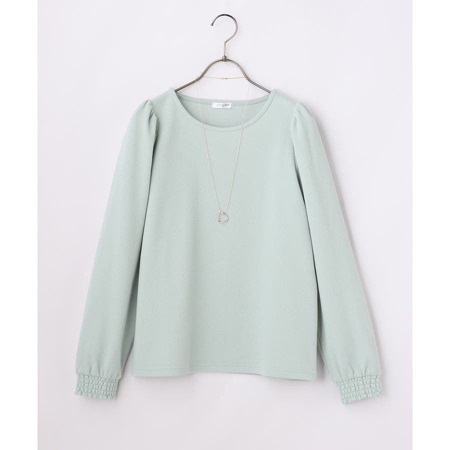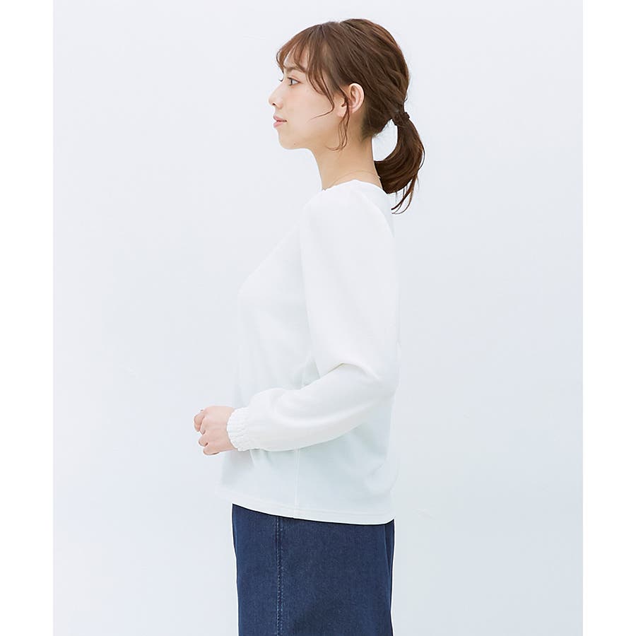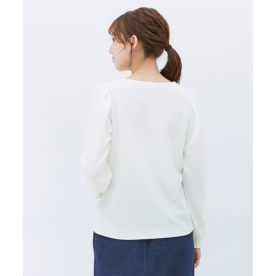 ふんわりとしたボリューム袖にゴムシャーリングをプラスした、女性らしいシルエットのトップス。