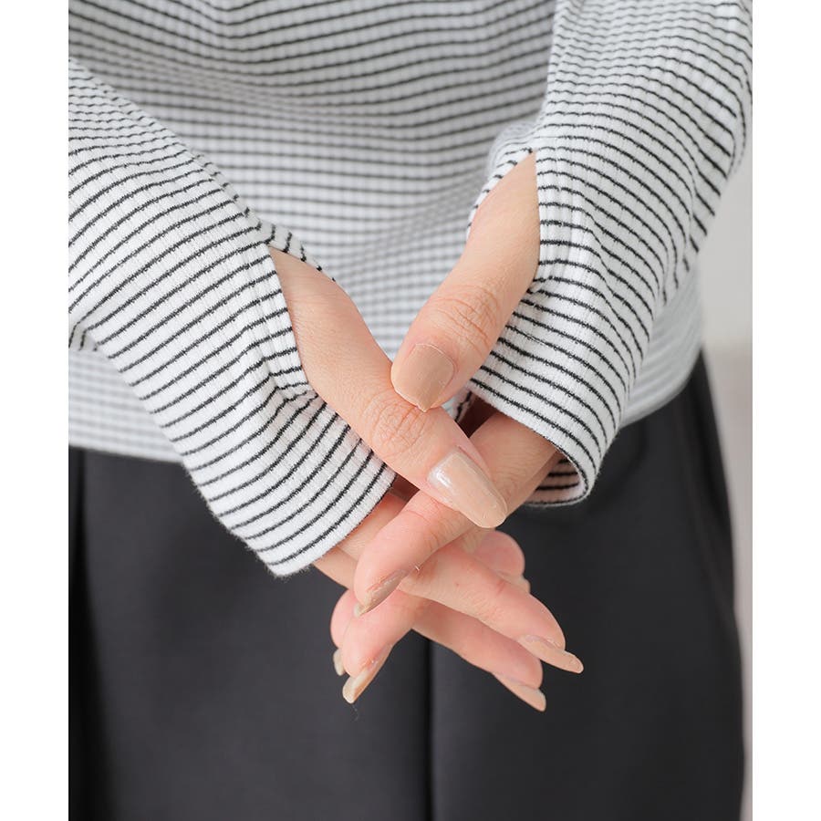 親指を通せるサムホール付きの、長め袖が今年らしい印象に。