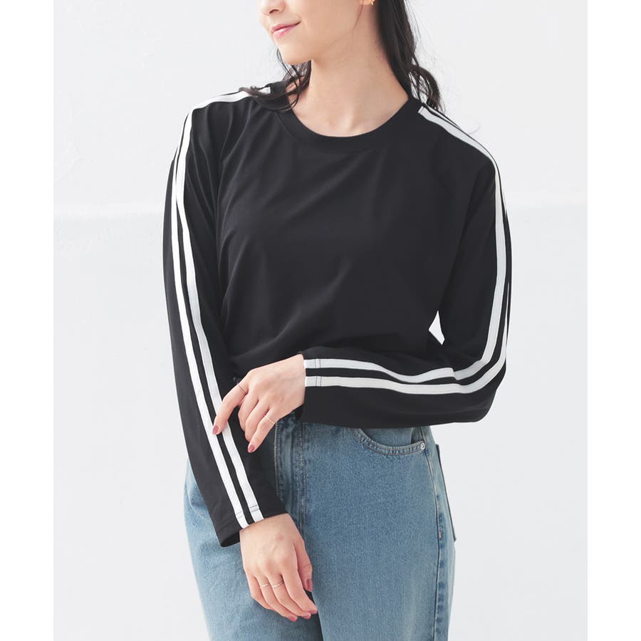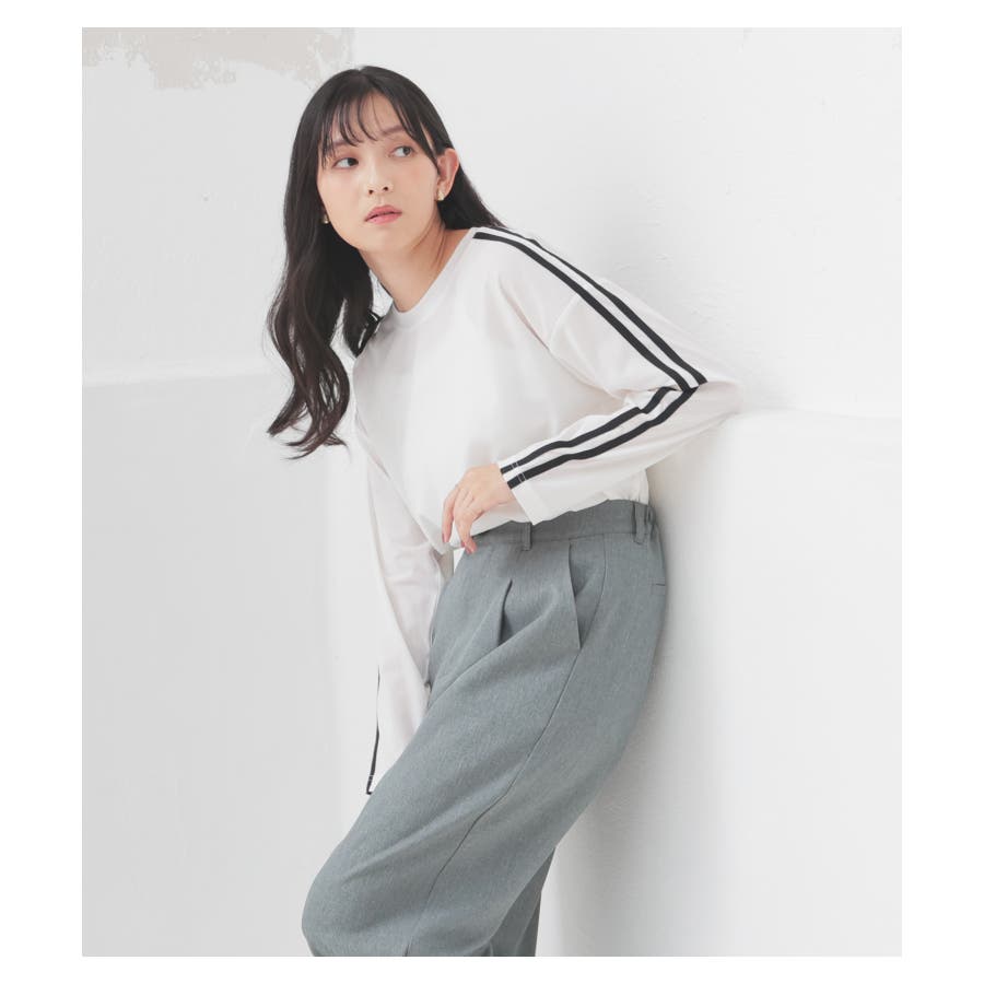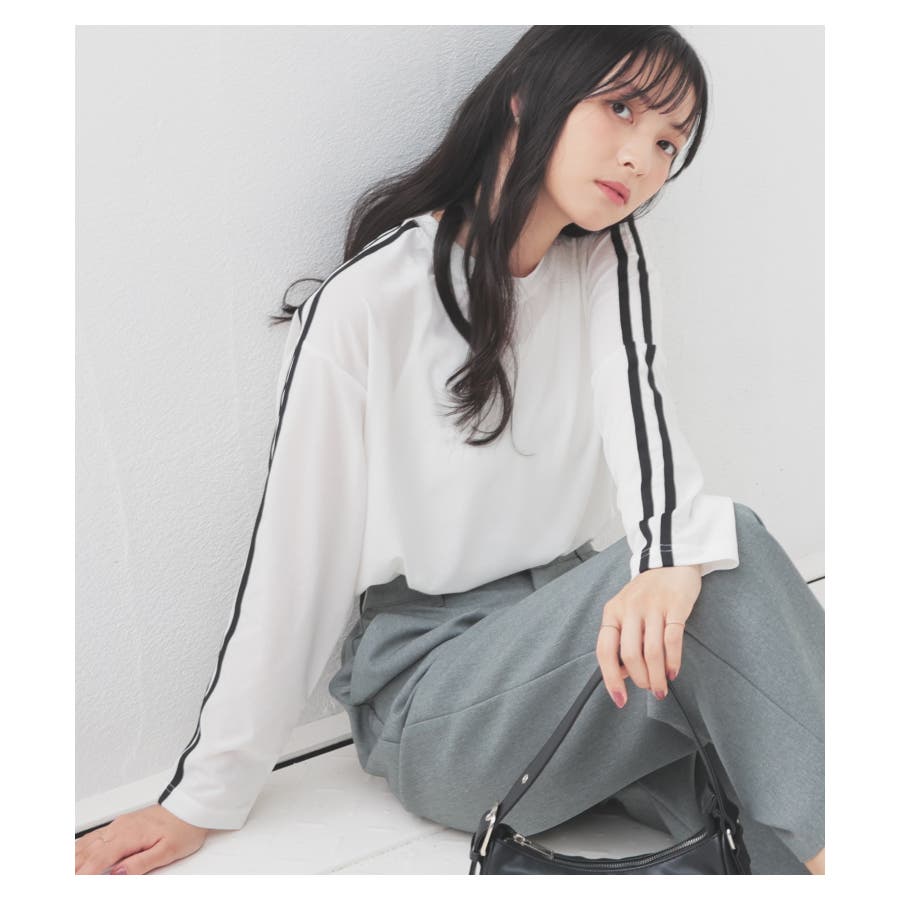 肩・袖のライン使いでシンプルなコーディネートにこなれ感をプラス。