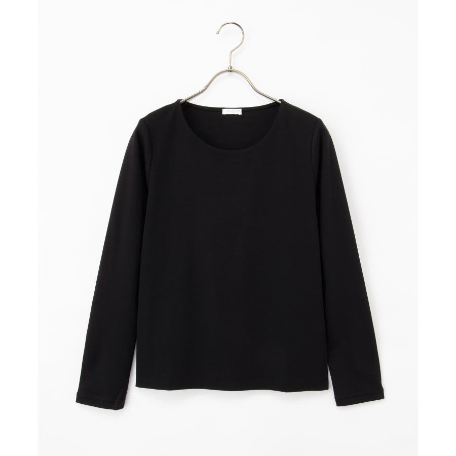 ステッチをなくした広すぎないクルーネックで、高見えが叶う上品デザイン。