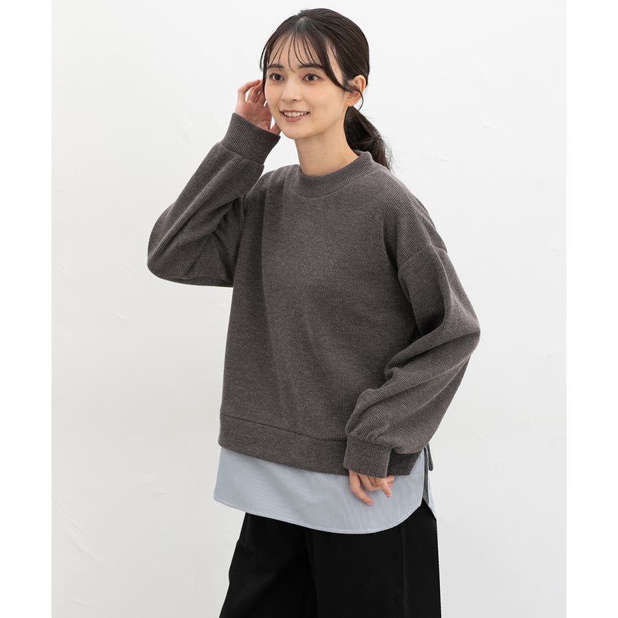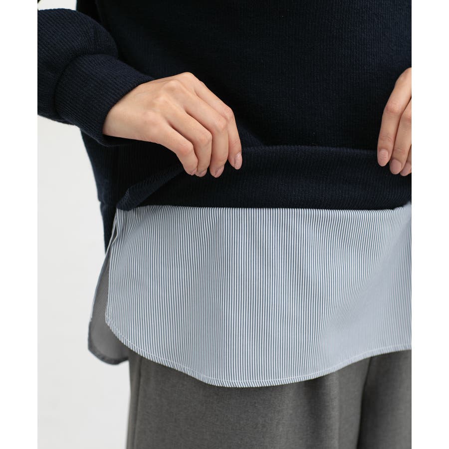 1枚でおしゃれに決まる、裾からシャツをのぞかせたようなレイヤード風デザイン。