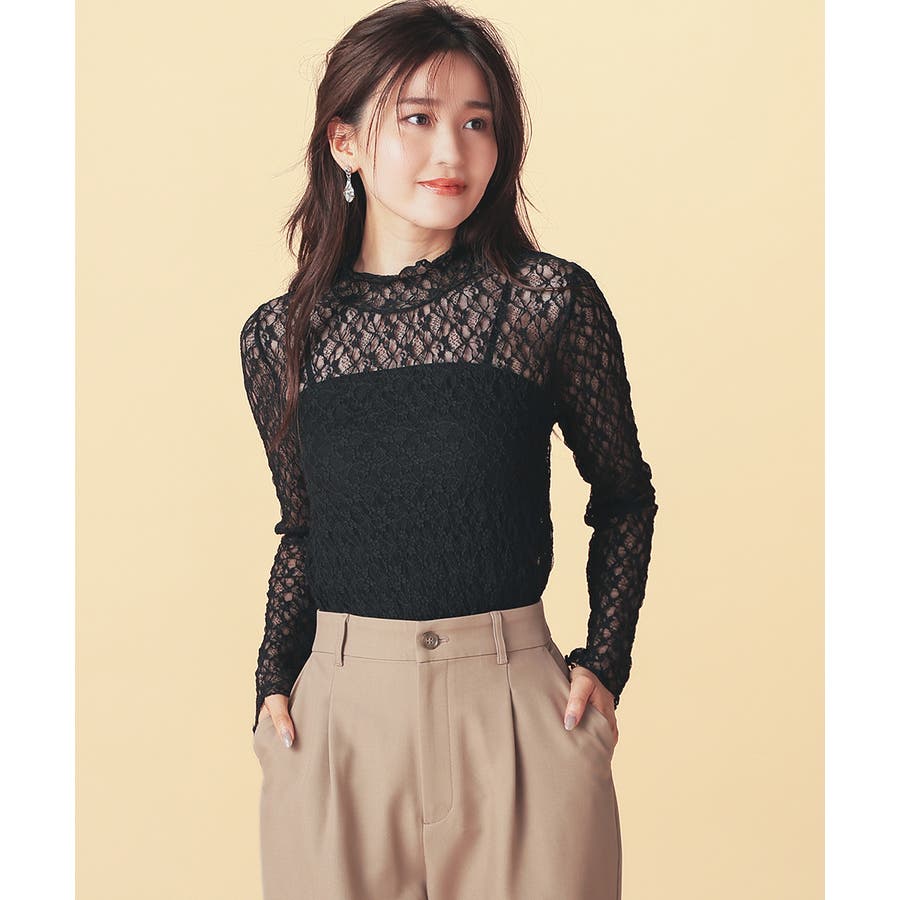 程よい透け感の花柄レースがフェミニンなデザイン。