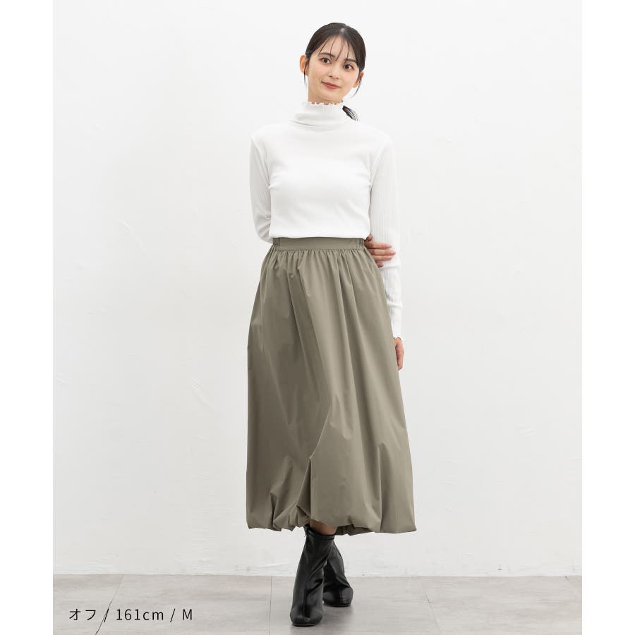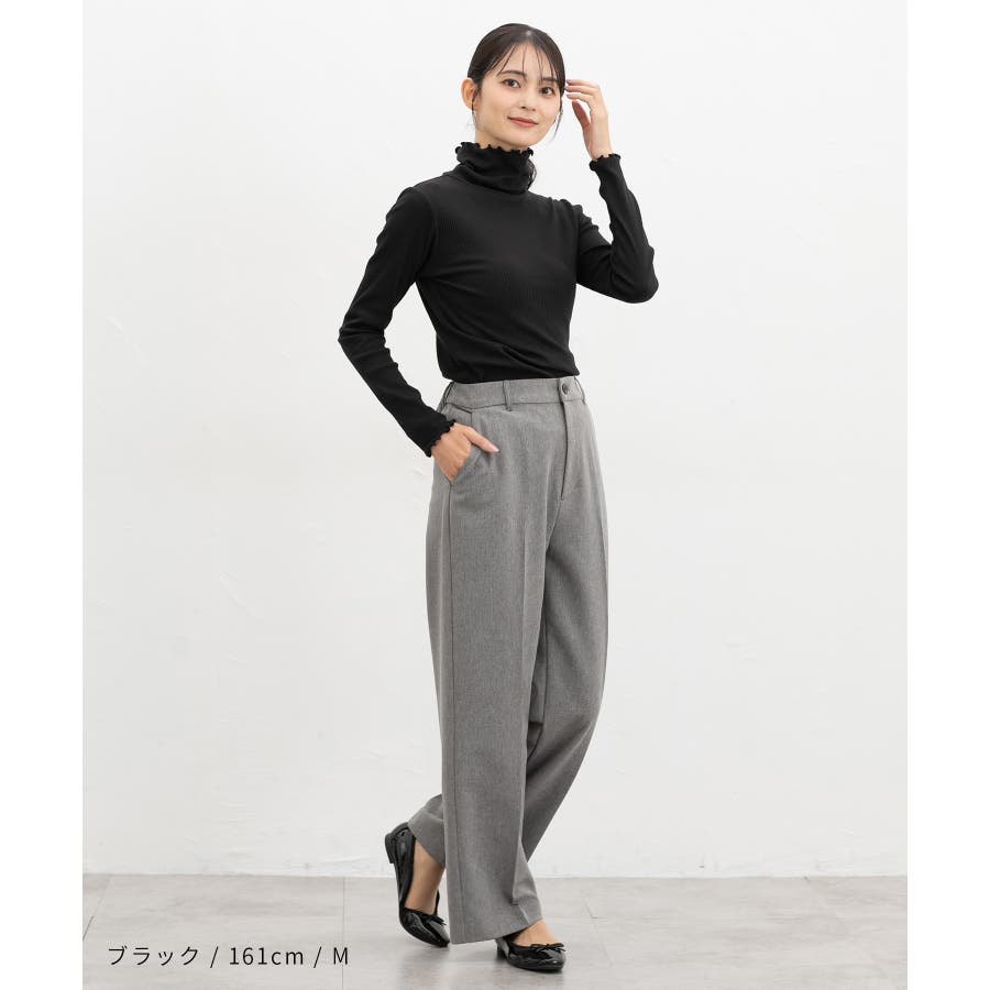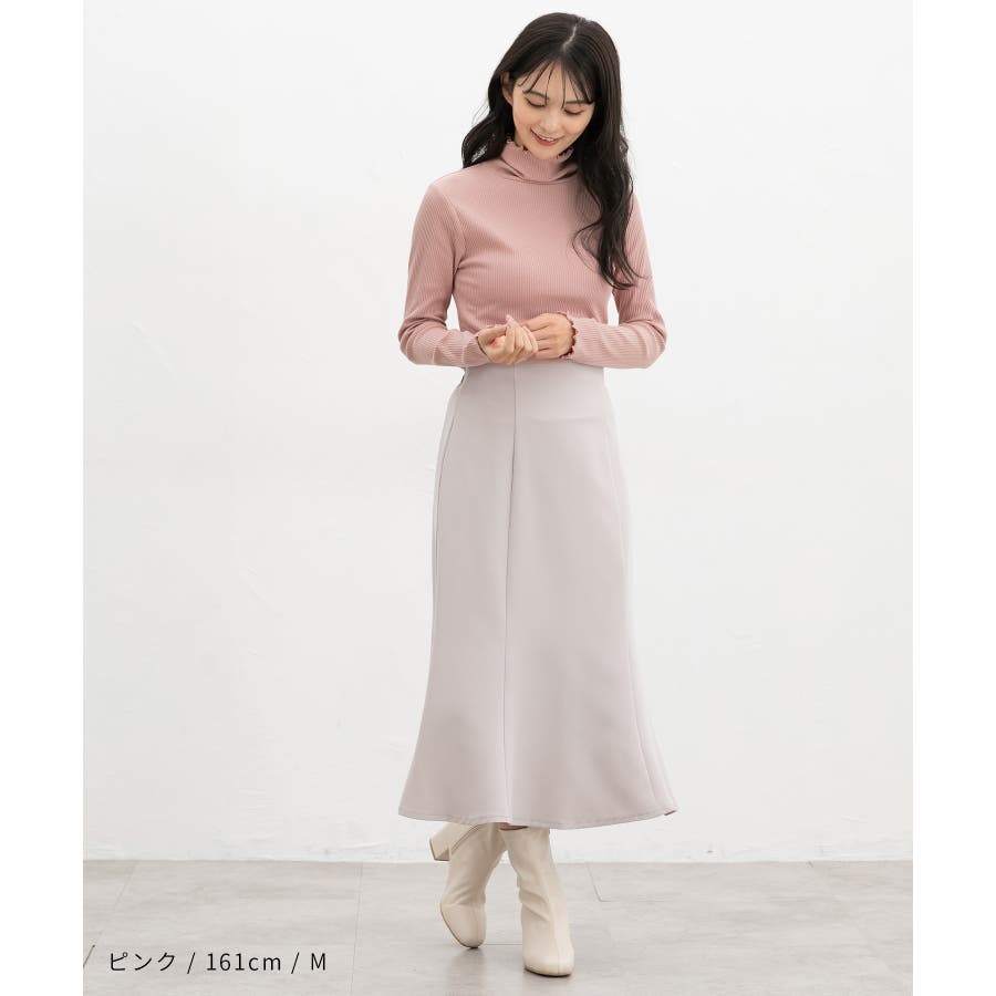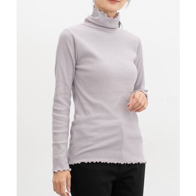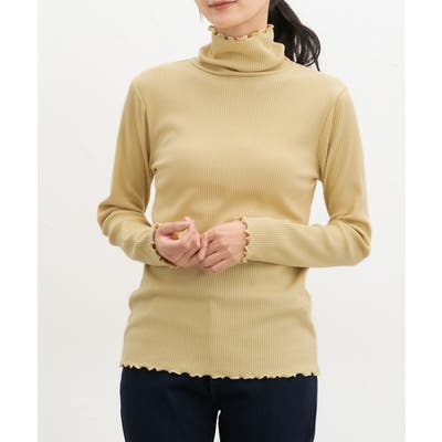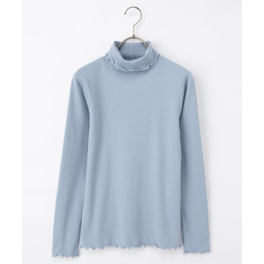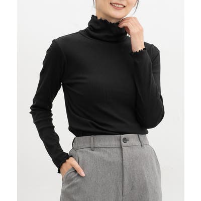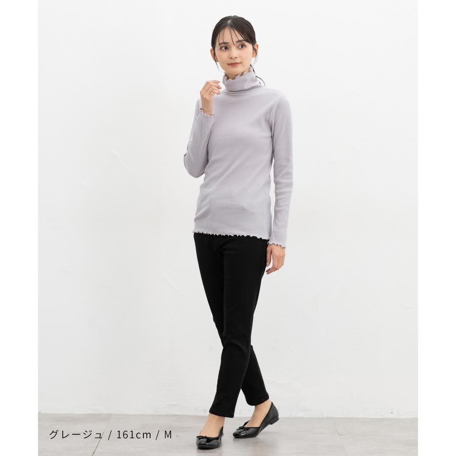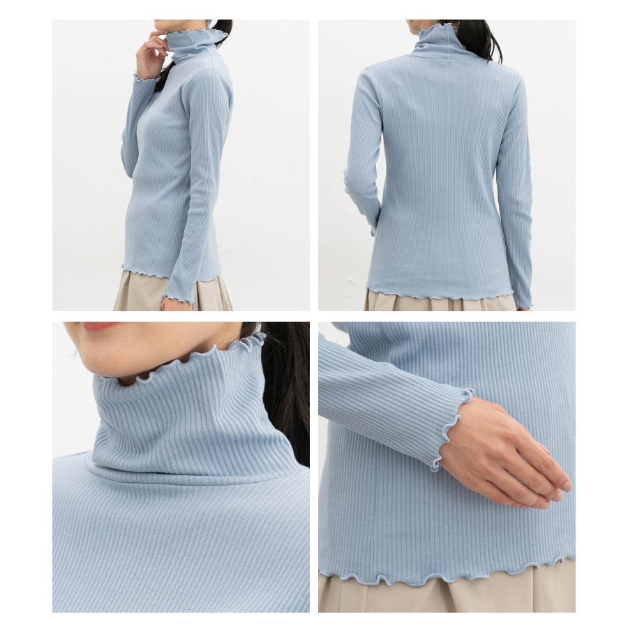 首まであったかなタートルネックのシンプルデザインに、衿・袖口・裾のメローロックがさりげなくフェミニンなアクセント。