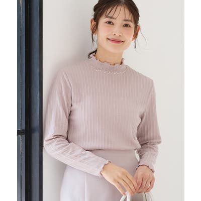 衿ぐり・袖口のメローと衿元のビジューがフェミニンなデザイン。