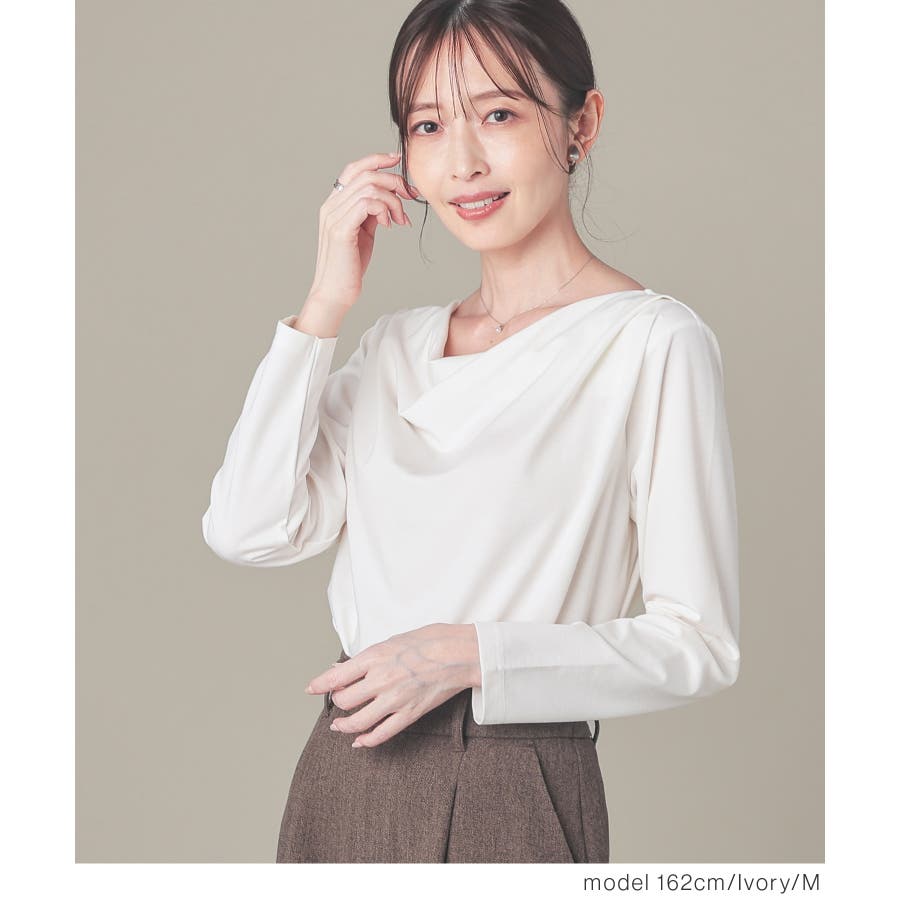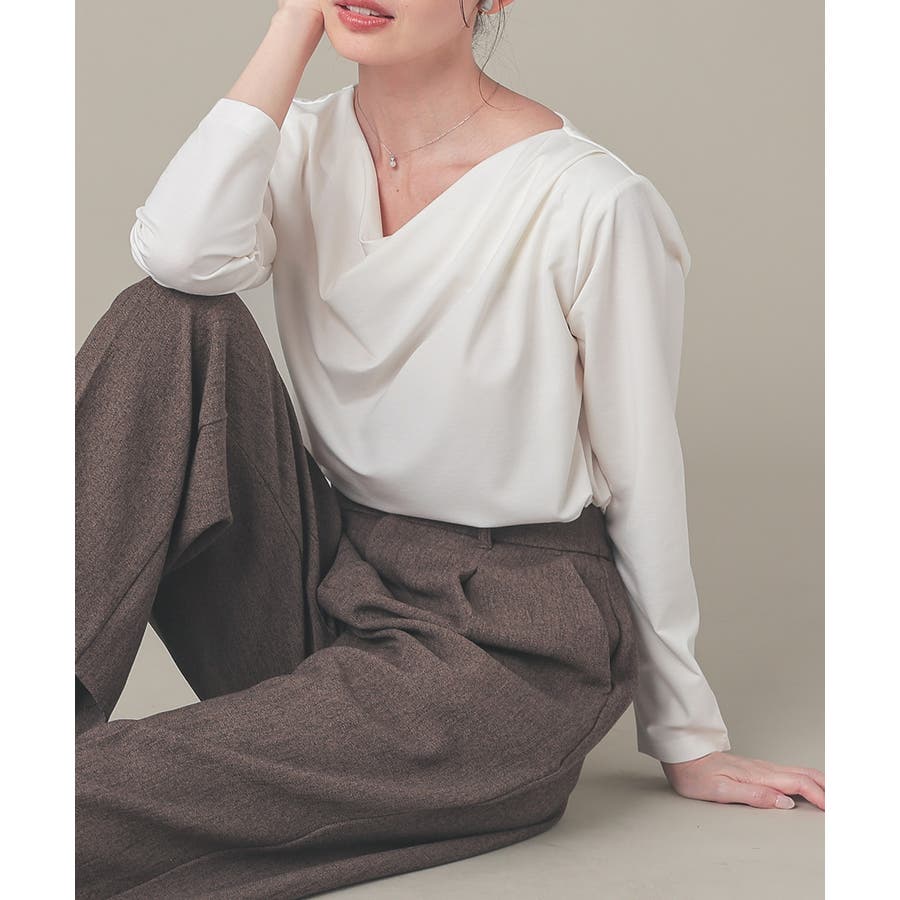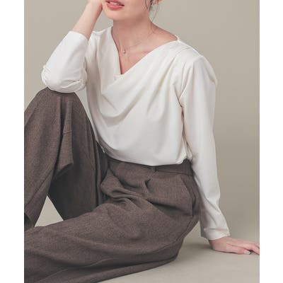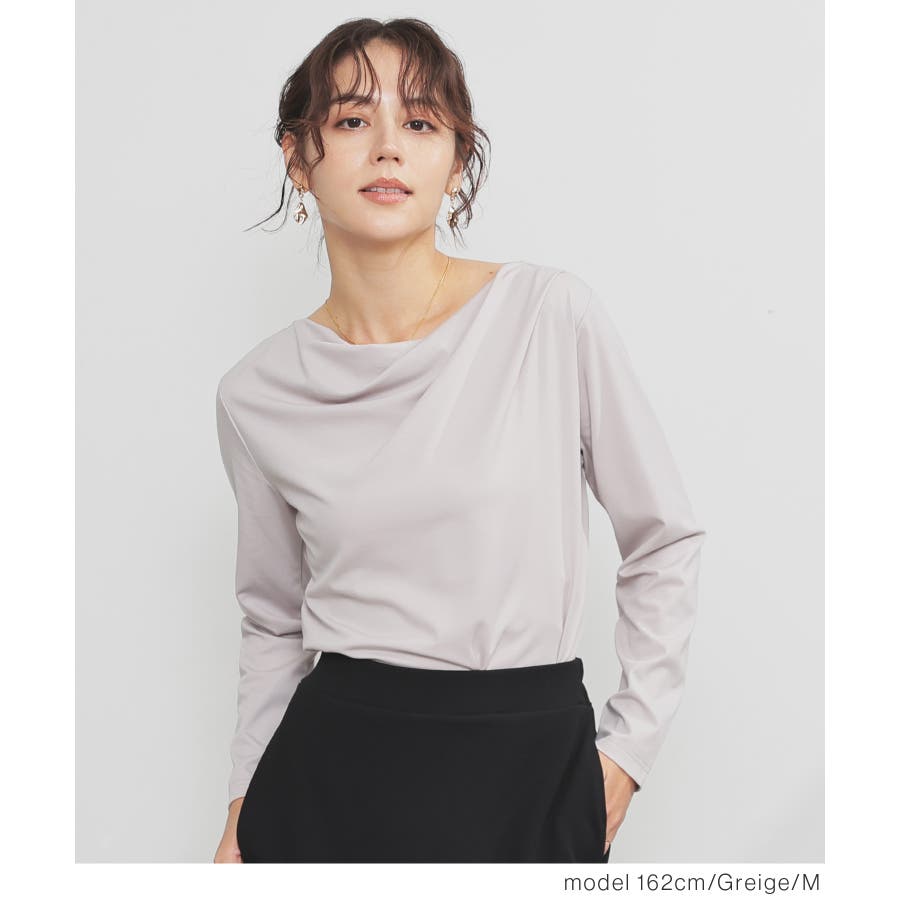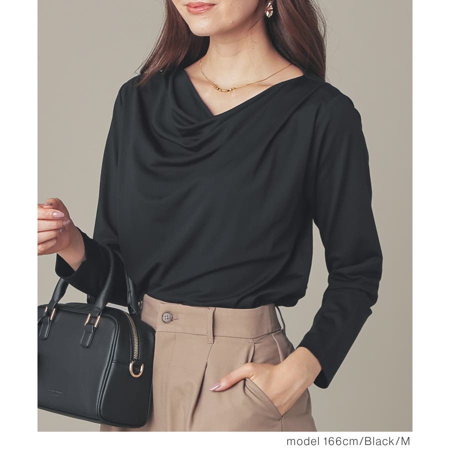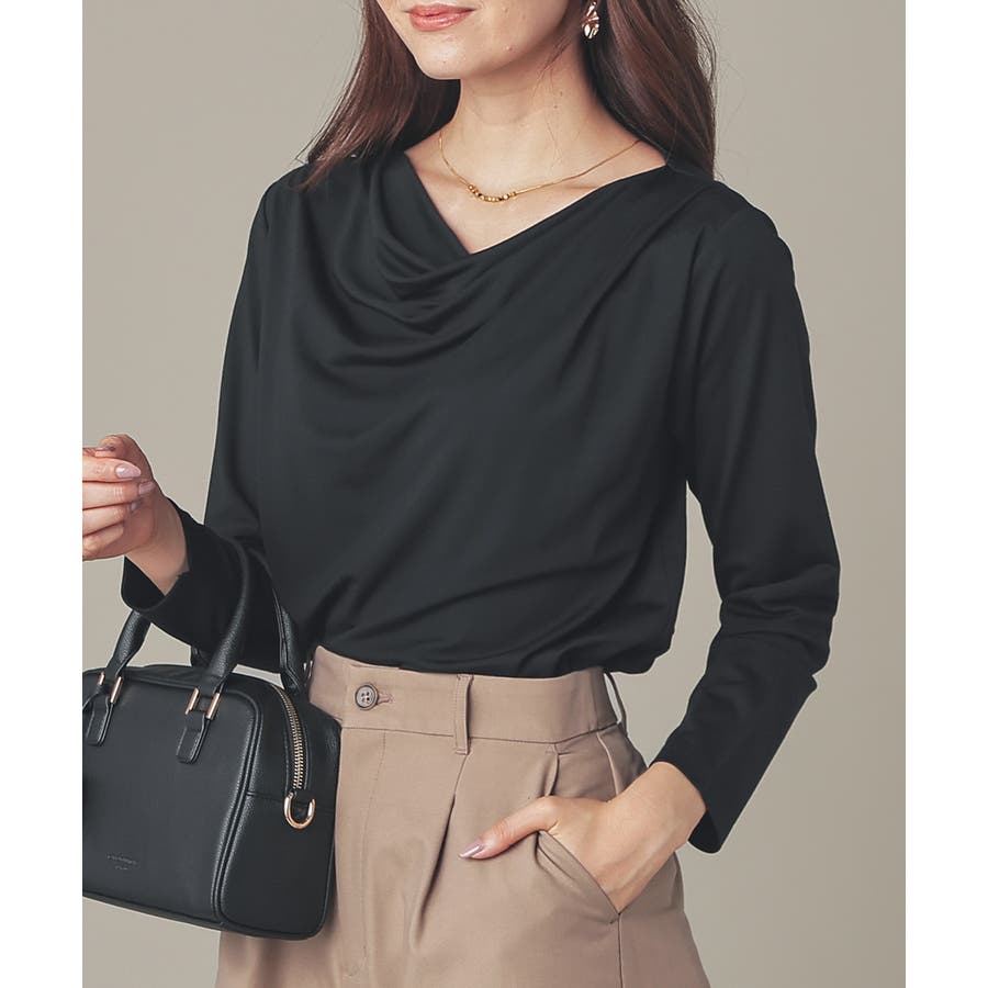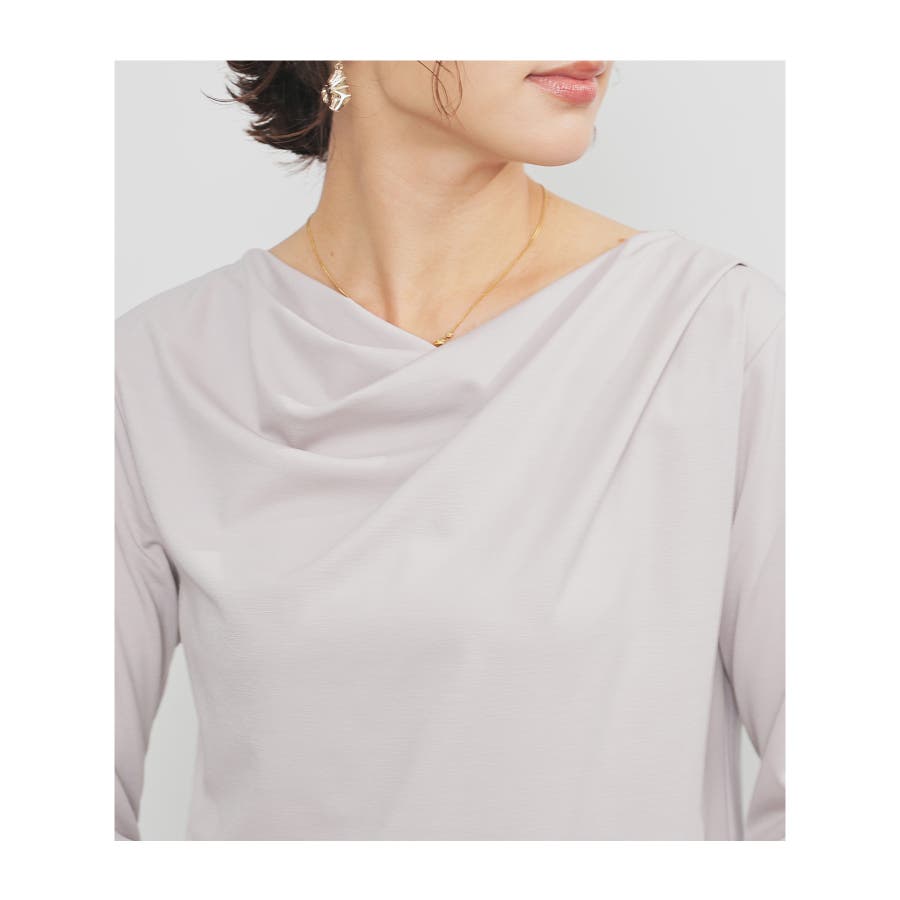 胸元のドレープが大人上品な、シンプルでどんなボトムスとも合わせやすいデザイン。