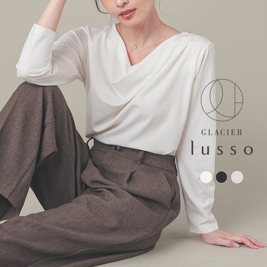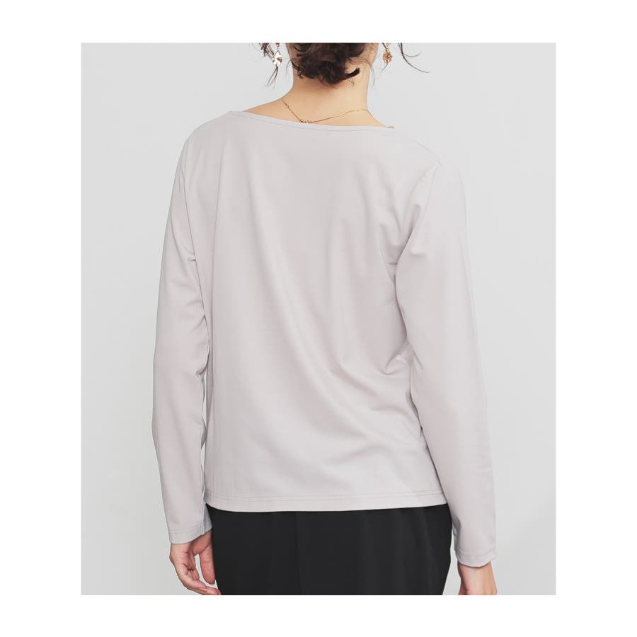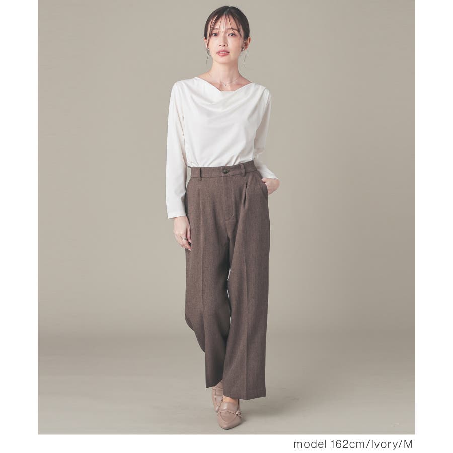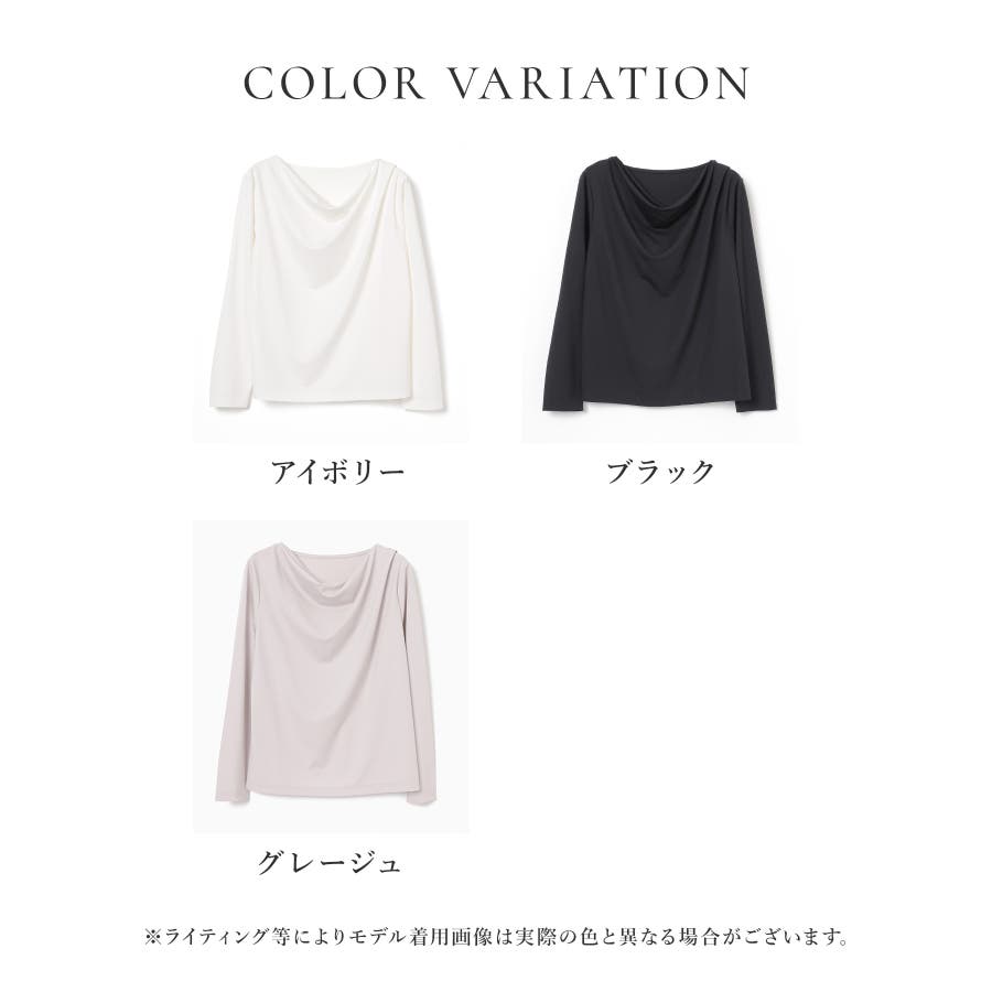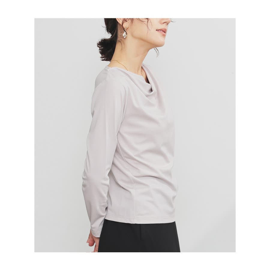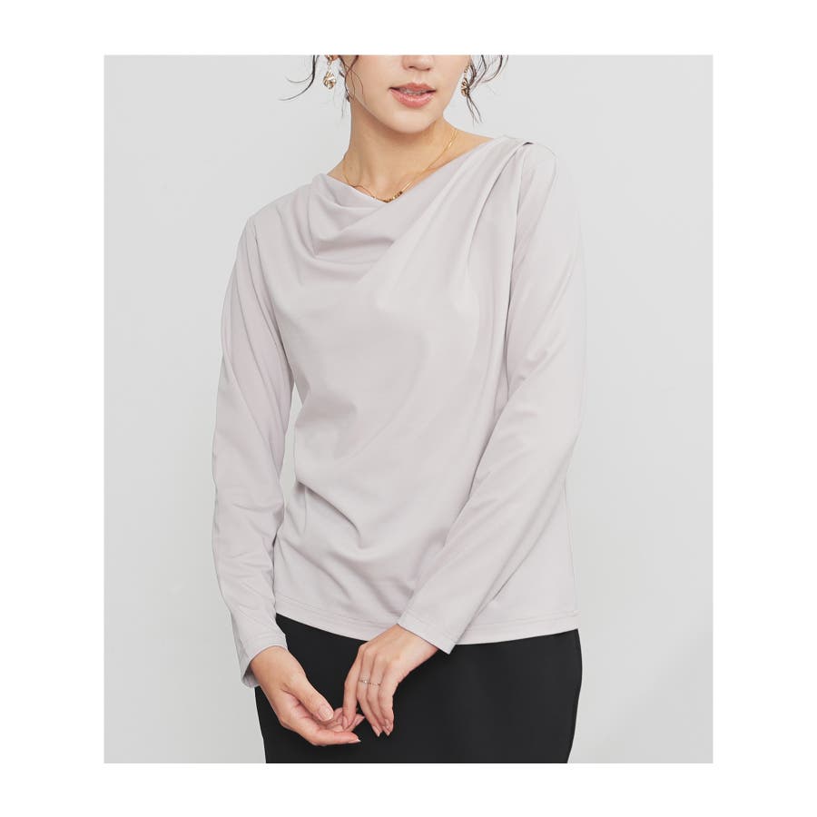 胸元のドレープが大人上品な、シンプルでどんなボトムスとも合わせやすいデザイン。