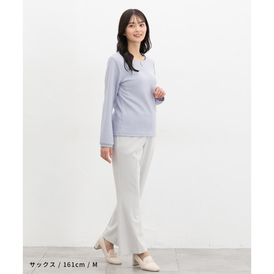 ジャケットにも合うサイズ感で、フレアスカートやテーパードパンツなどと合わせたきれいめお仕事スタイルから、デニムと合わせたカジュアルスタイルまで、幅広い着回しに活躍。